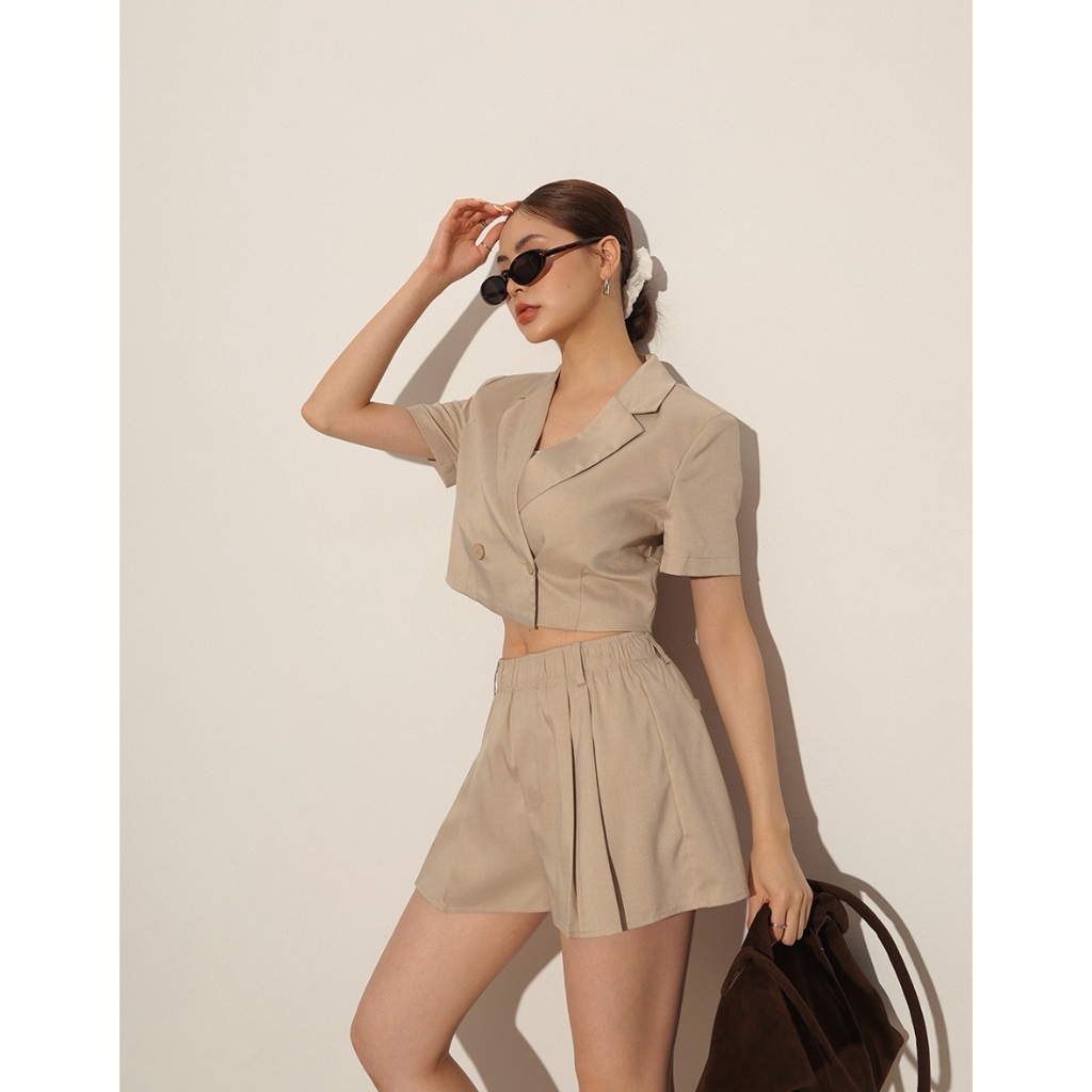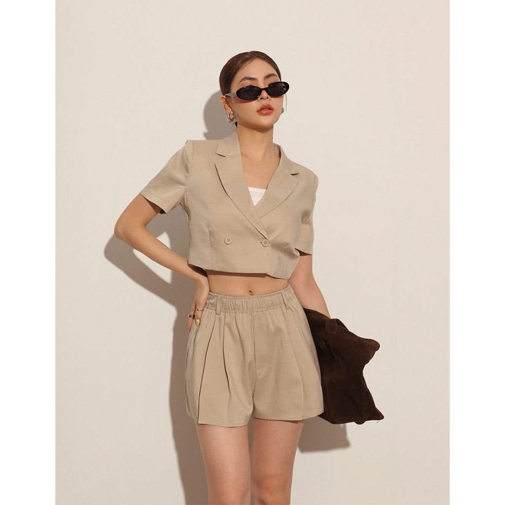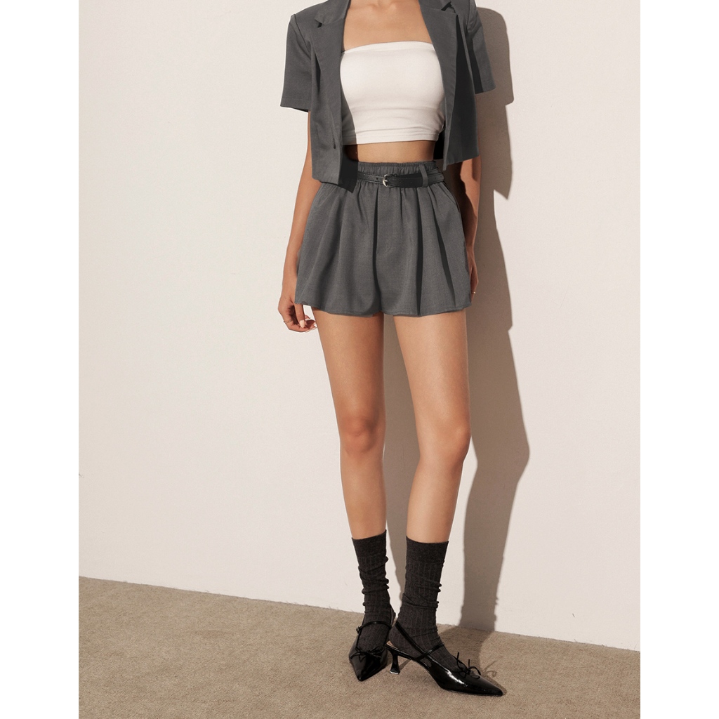 AIR SPACE PLUS 雙打褶鬆緊西裝短褲(杏/深灰) 女裝 現貨 大尺碼 中大尺碼杏,XL|杏,2XL|杏,3XL|深灰,XL|深灰,2XL|深灰,3XLShortsAIR SPACE