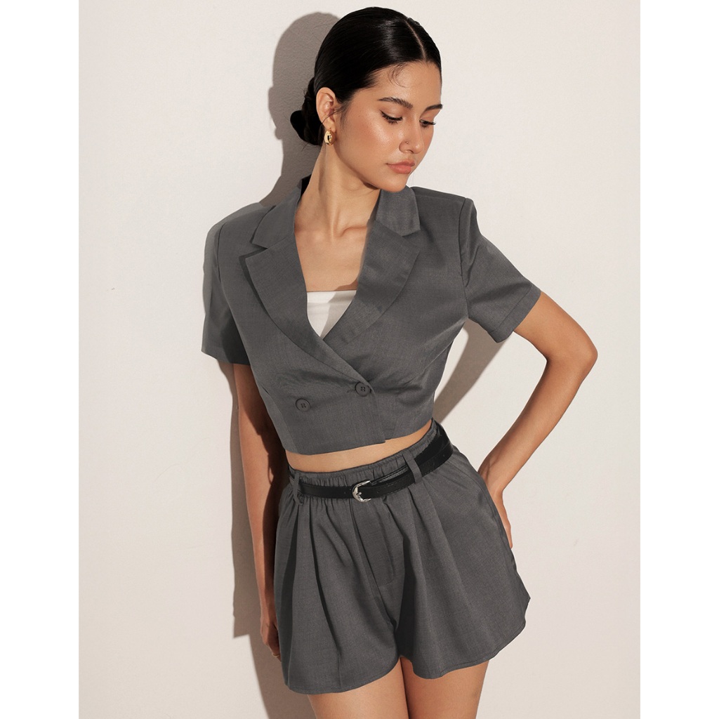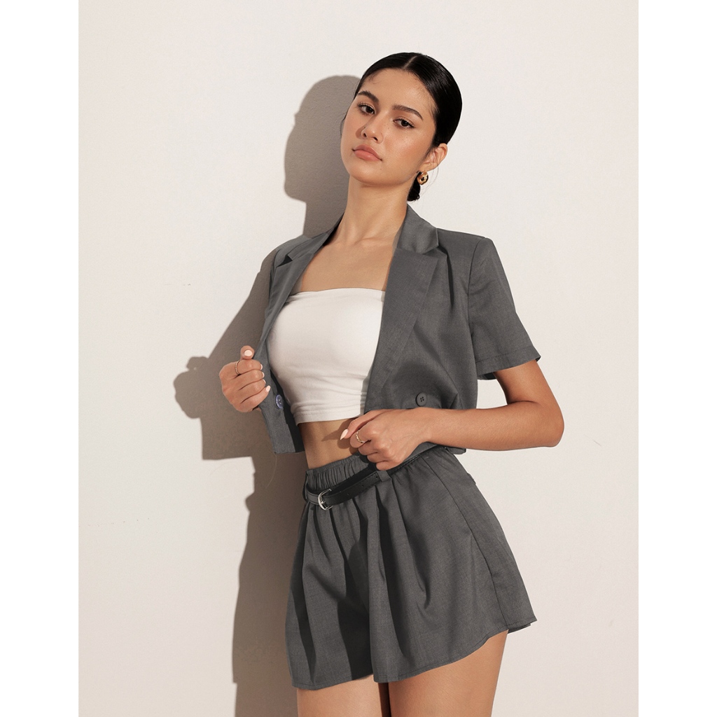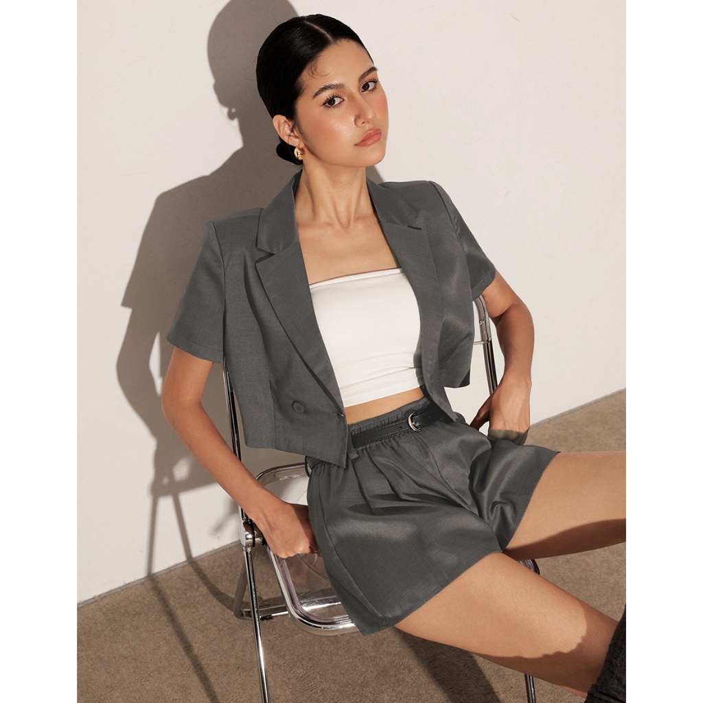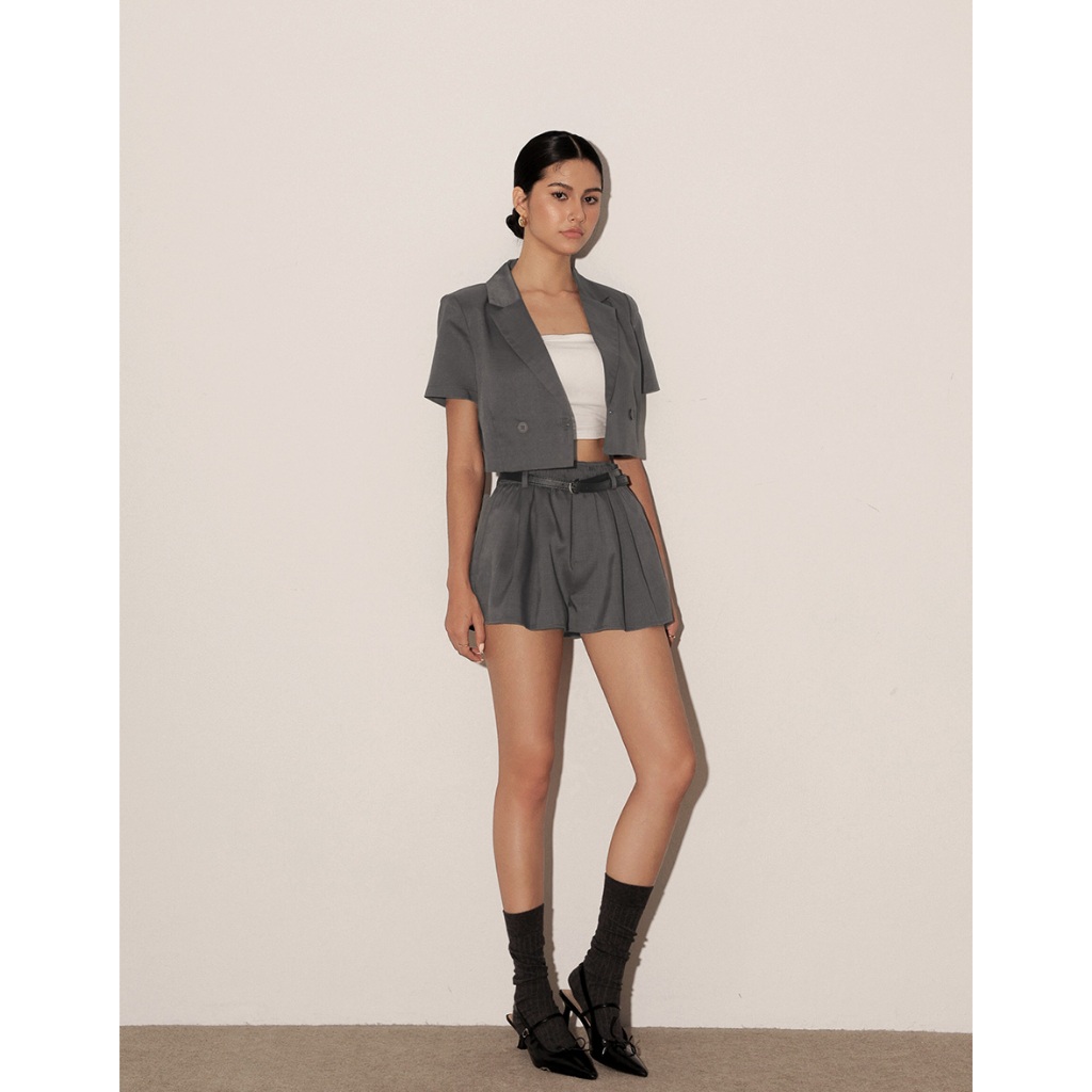 AIR SPACE PLUS 雙打褶鬆緊西裝短褲(杏/深灰) 女裝 現貨 大尺碼 中大尺碼杏,XL|杏,2XL|杏,3XL|深灰,XL|深灰,2XL|深灰,3XLShortsAIR SPACE
