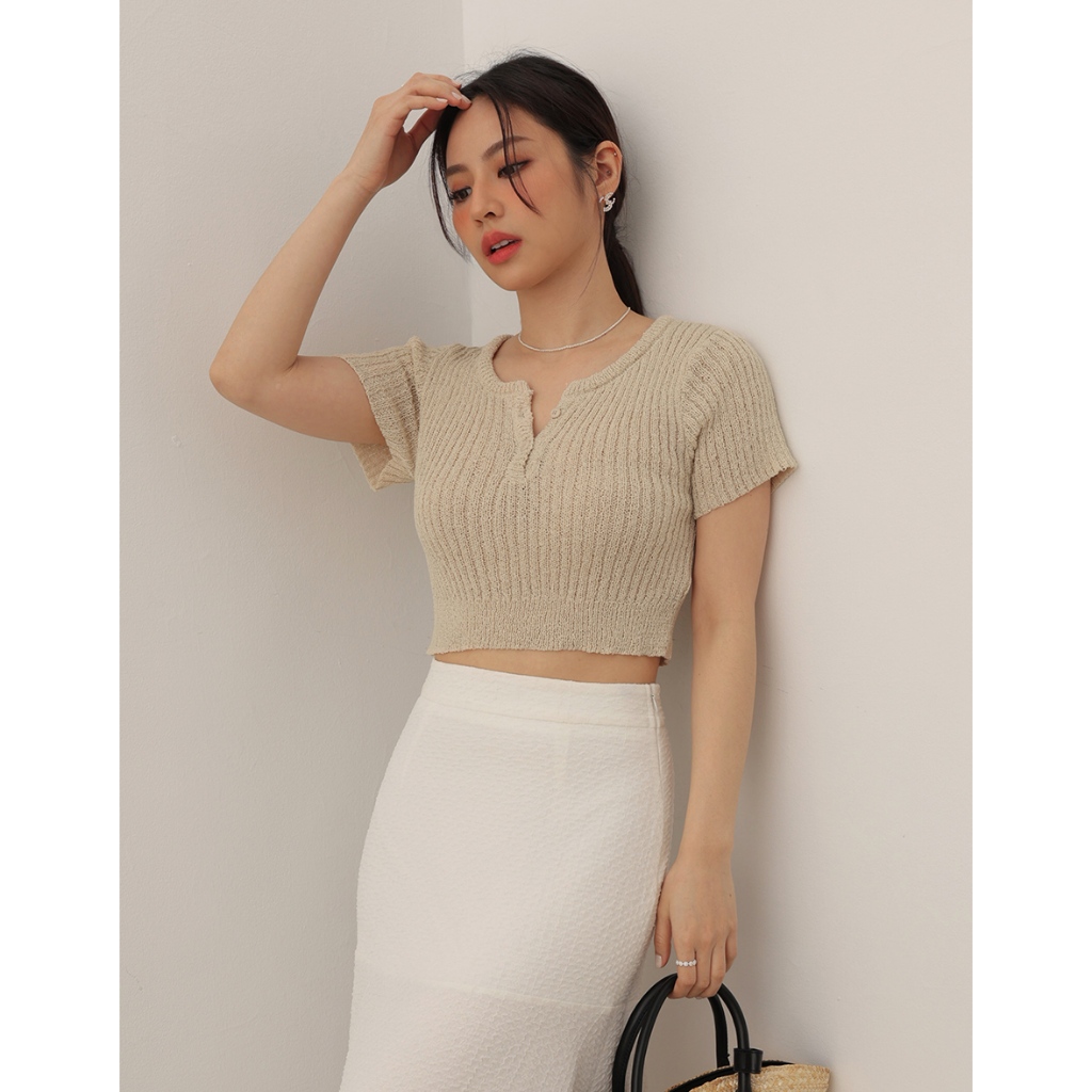AIR SPACE LADY 微辣坑條針織短版上衣(杏/卡其) 女裝 現貨杏,S|杏,M|卡其,S|卡其,MAIR SPACE