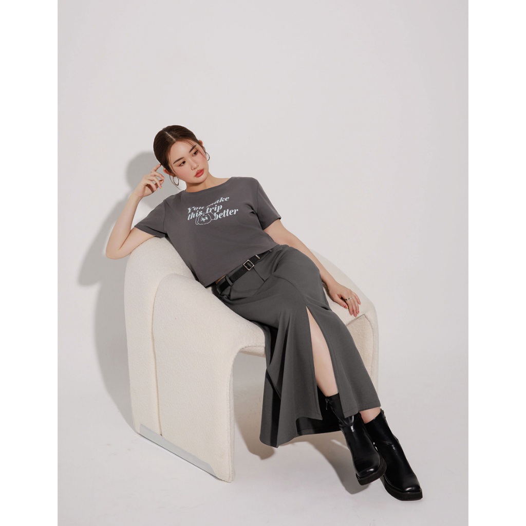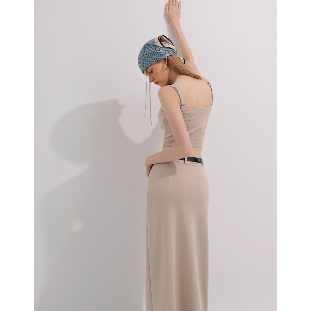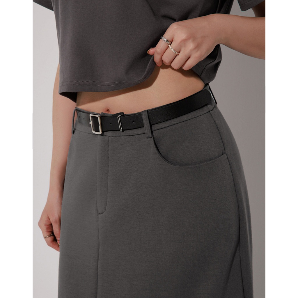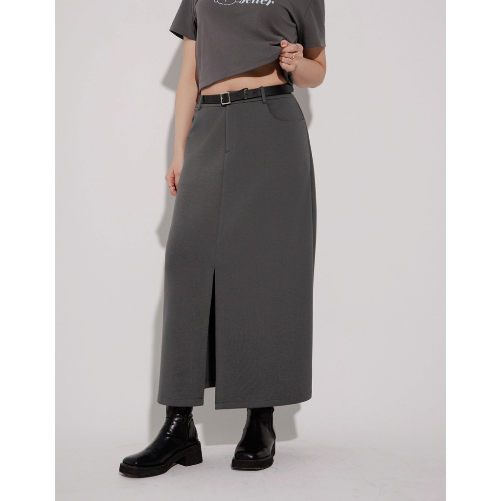 AIR SPACE PLUS 高腰附皮帶開衩修身長裙(卡其/深灰) 女裝 現貨 大尺碼 中大尺碼