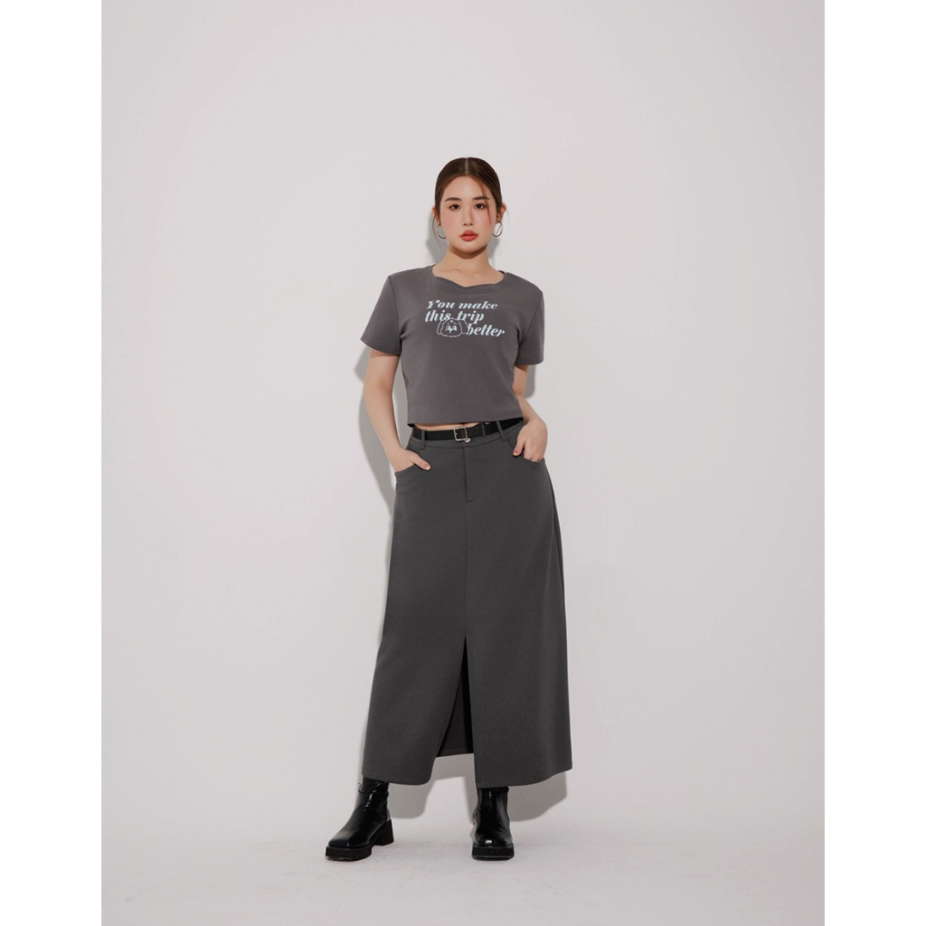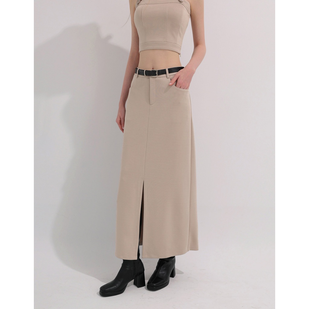 AIR SPACE PLUS 高腰附皮帶開衩修身長裙(卡其/深灰) 女裝 現貨 大尺碼 中大尺碼卡其,XL|卡其,2XL|卡其,3XL|深灰,XL|深灰,2XL|深灰,3XLAIR SPACE