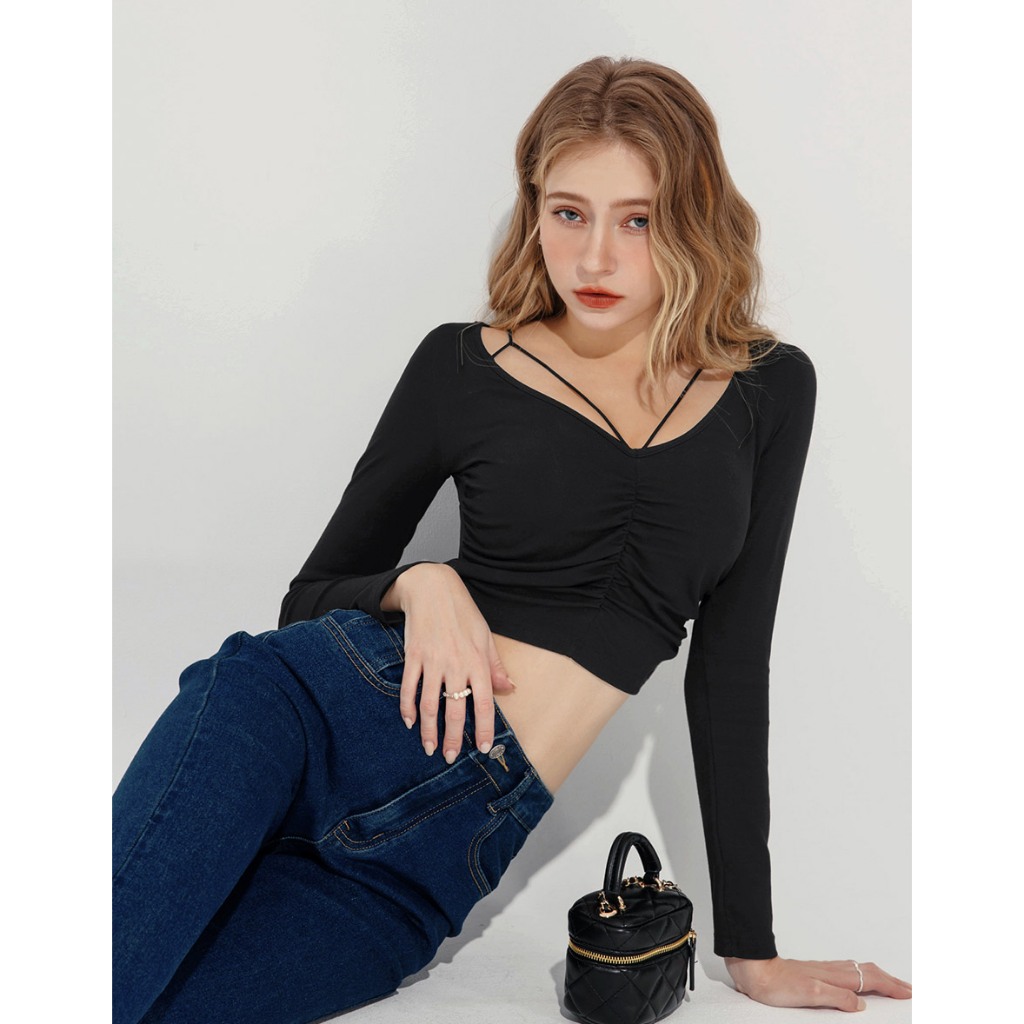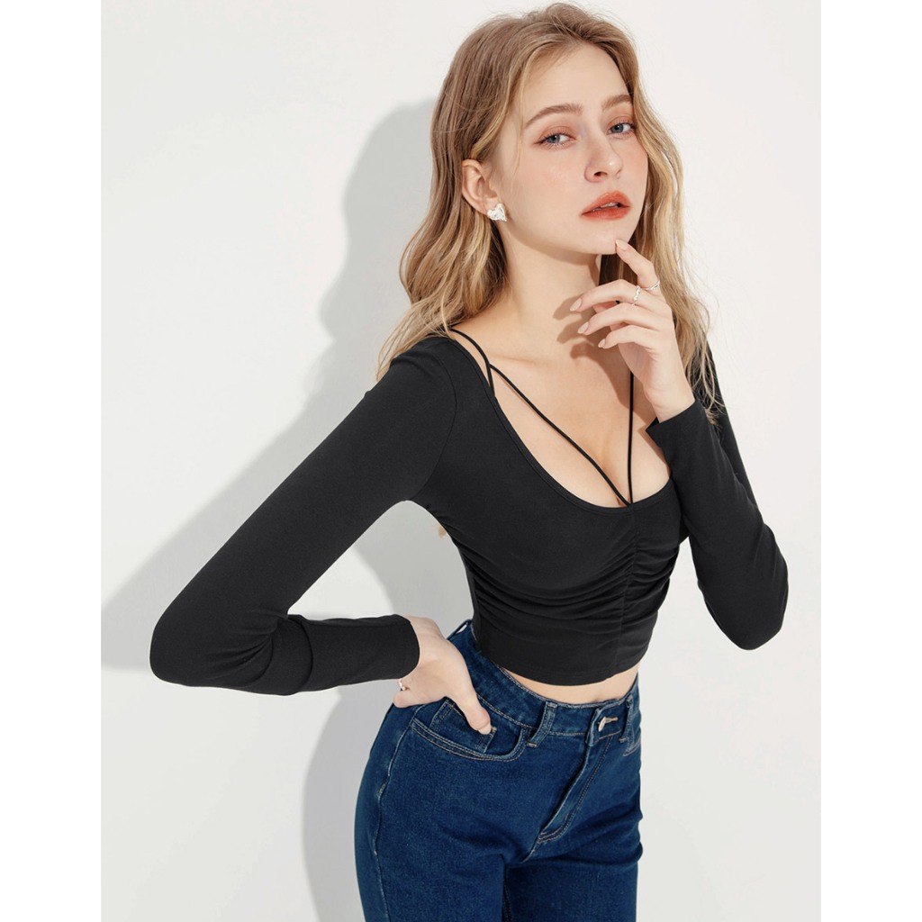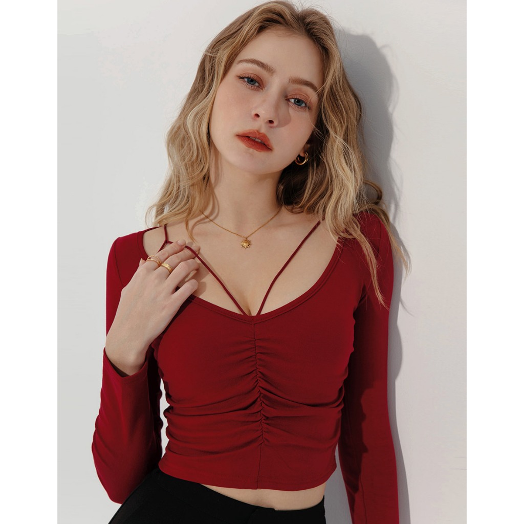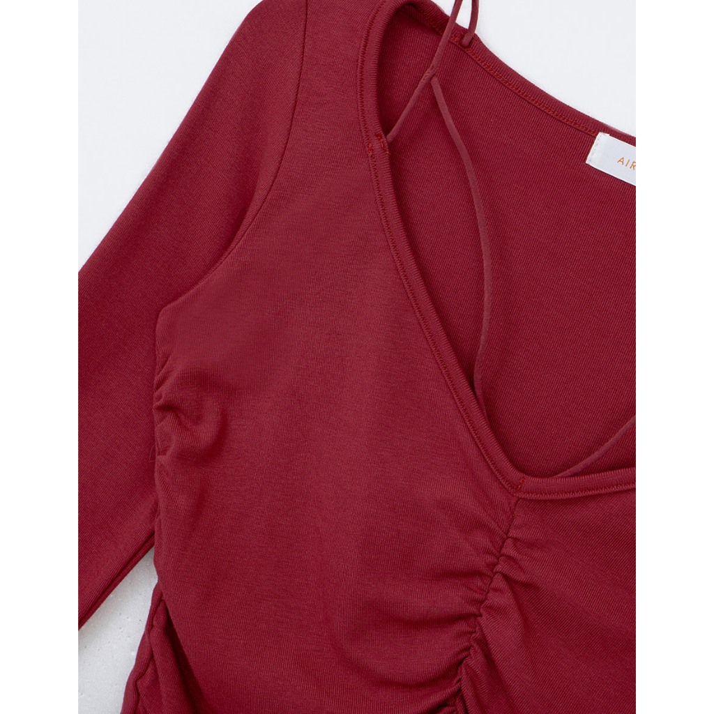 AIR SPACE 設計感鏤空抓皺上衣(黑/酒紅) 女裝 現貨黑,S|黑,M|黑,L|酒紅,S|酒紅,M|酒紅,LOthersAIR SPACE