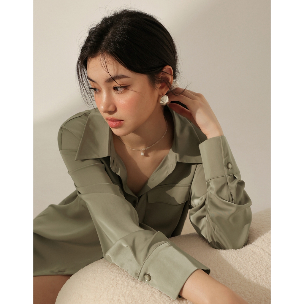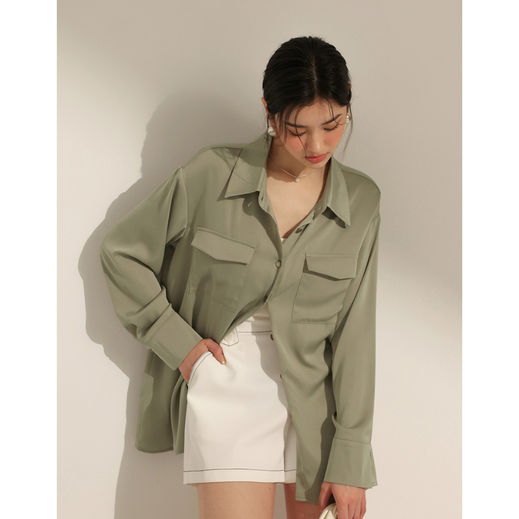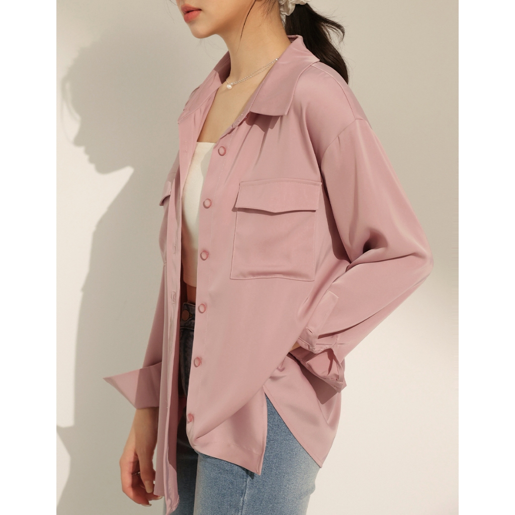 CHIC A SPACE 絲滑緞面長版襯衫(白/綠/粉紅) 女裝 現貨白,F|綠,F|粉紅,FShirts & BlousesAIR SPACE