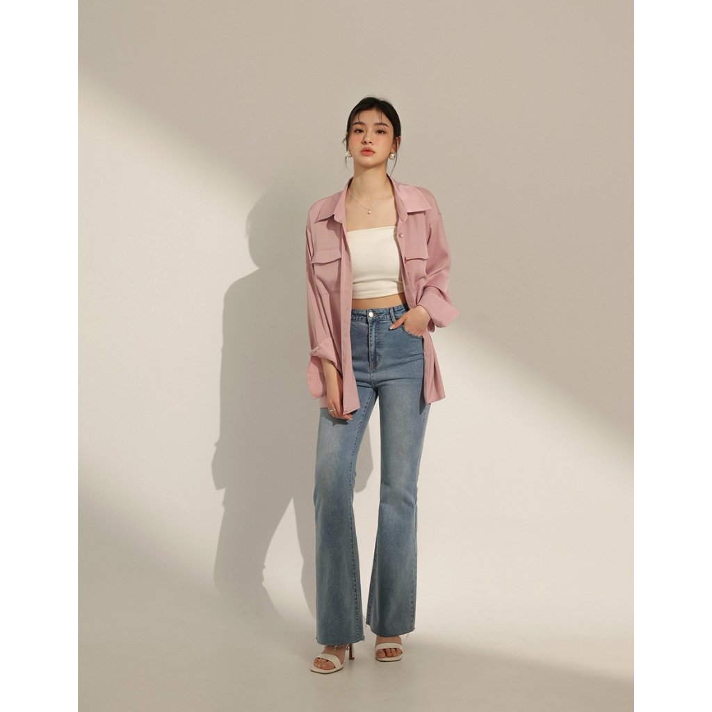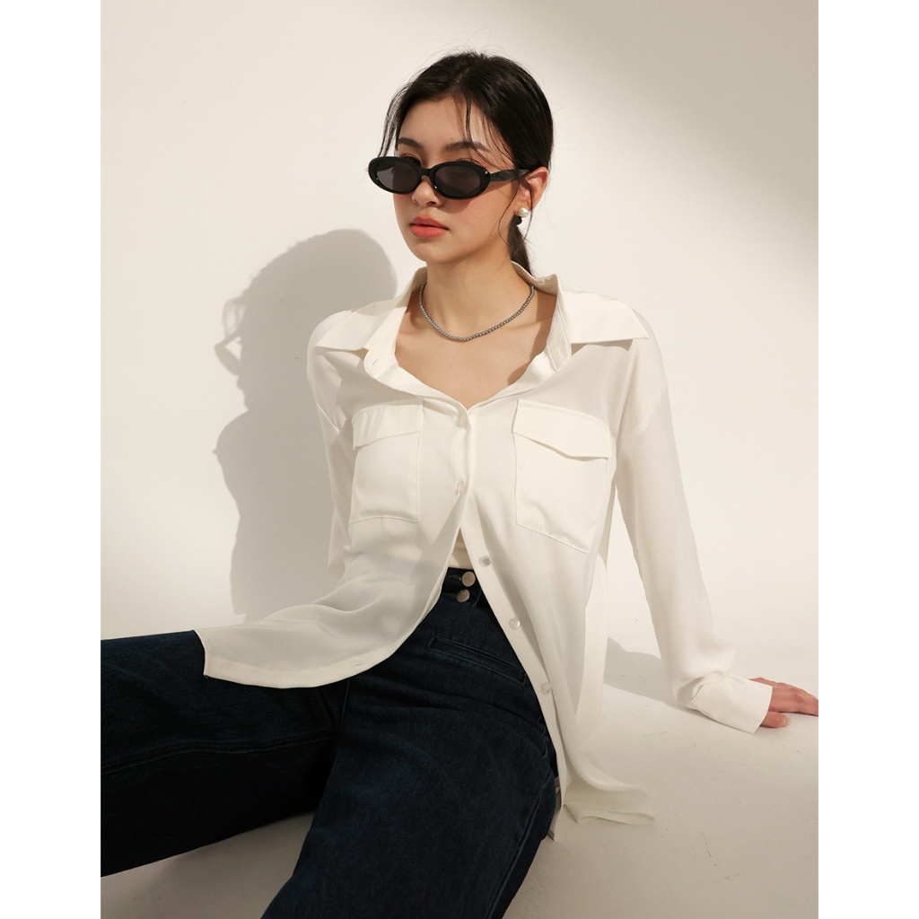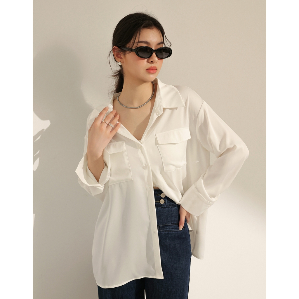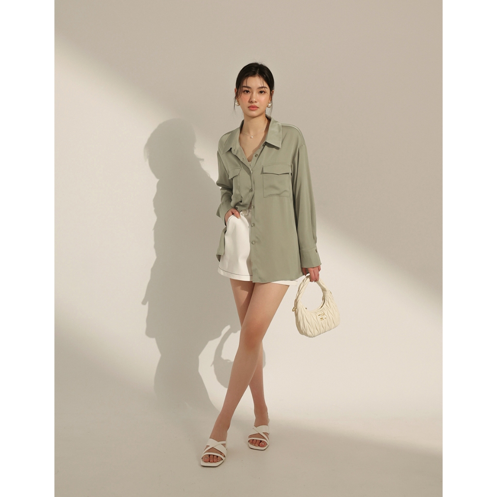 CHIC A SPACE 絲滑緞面長版襯衫(白/綠/粉紅) 女裝 現貨白,F|綠,F|粉紅,FShirts & BlousesAIR SPACE