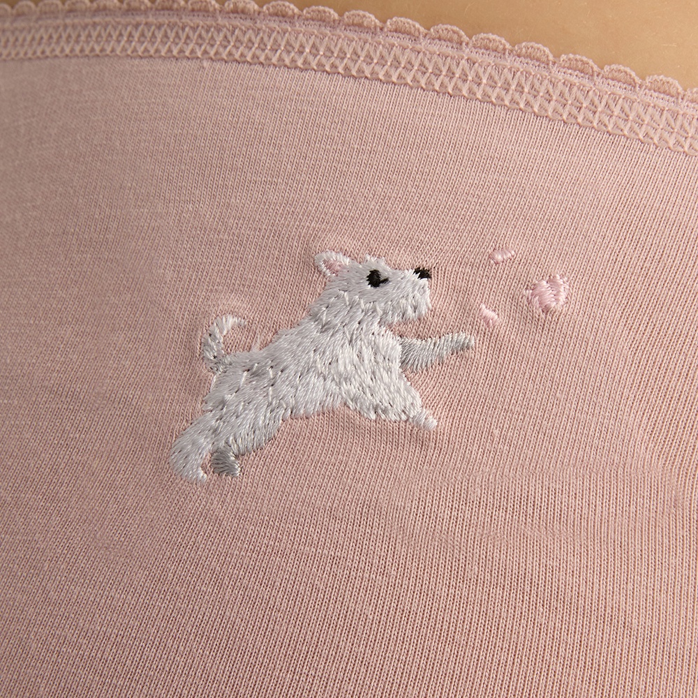 【Anden Hud】夢境花園.花邊高腰三角內褲(罌粟粉-刺繡追花小狗) 純棉台灣製M|L|XLPantiesAnden Hud 台灣製內著 官方旗艦店