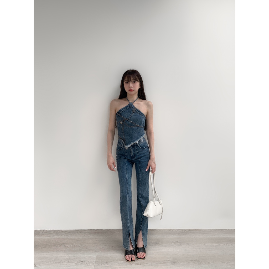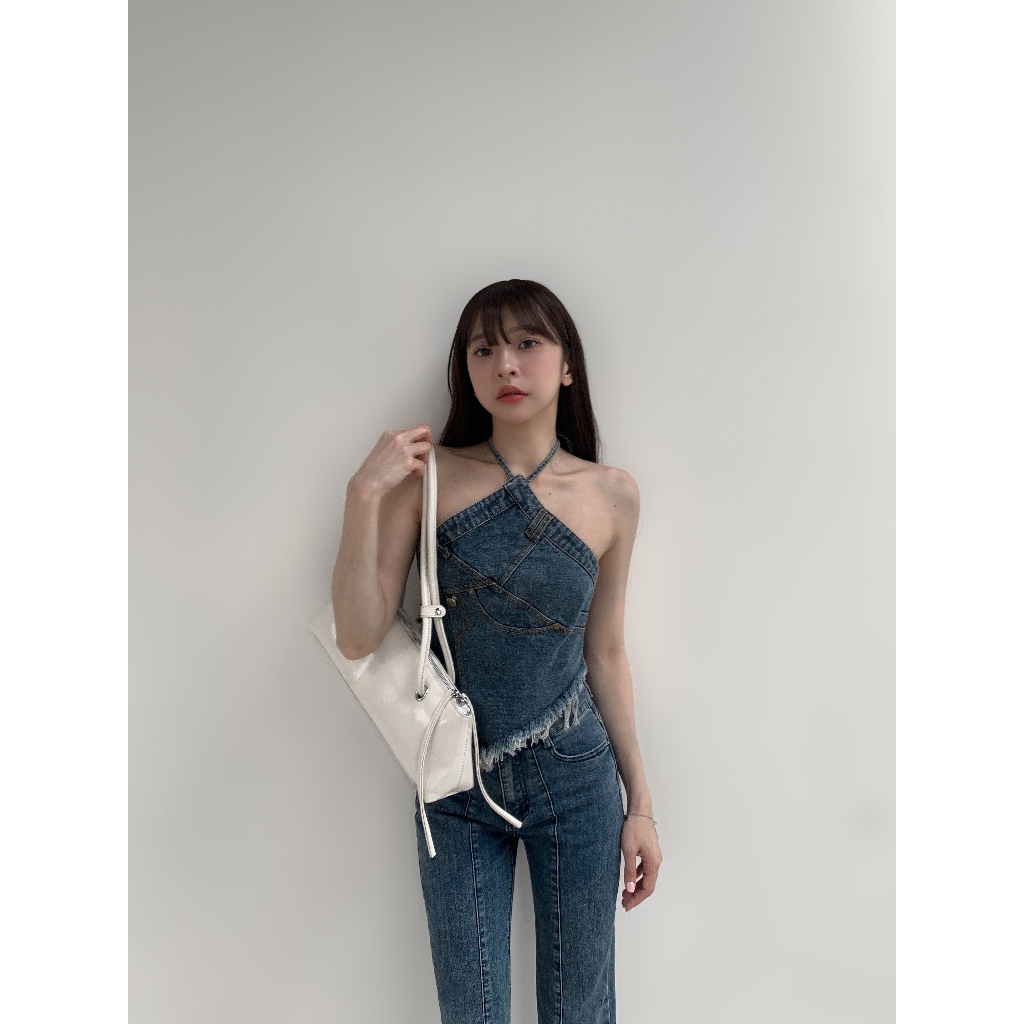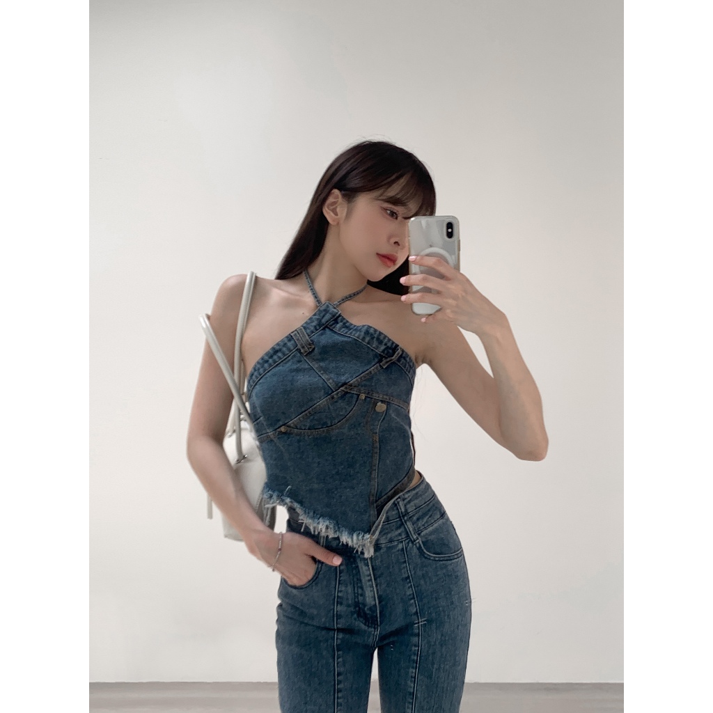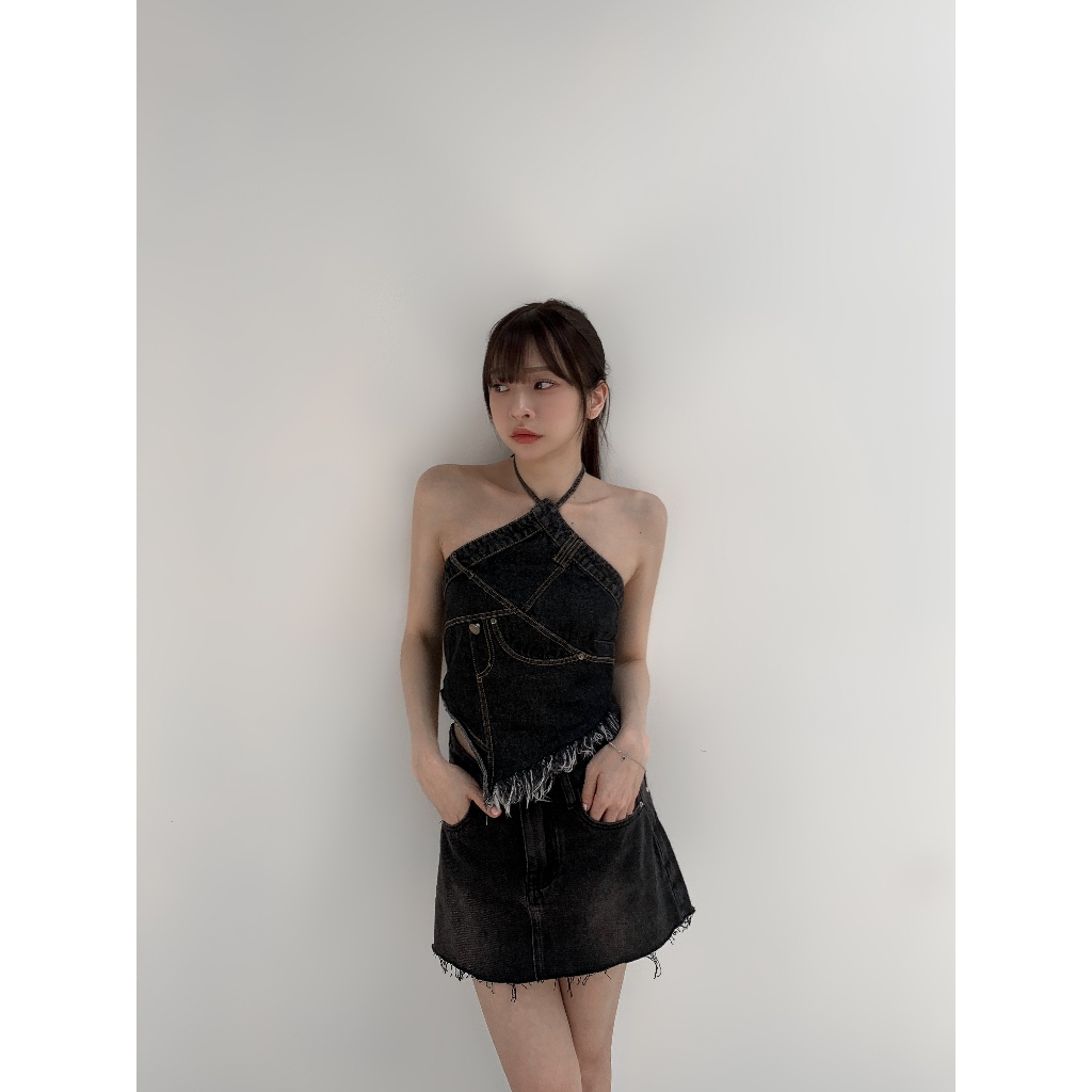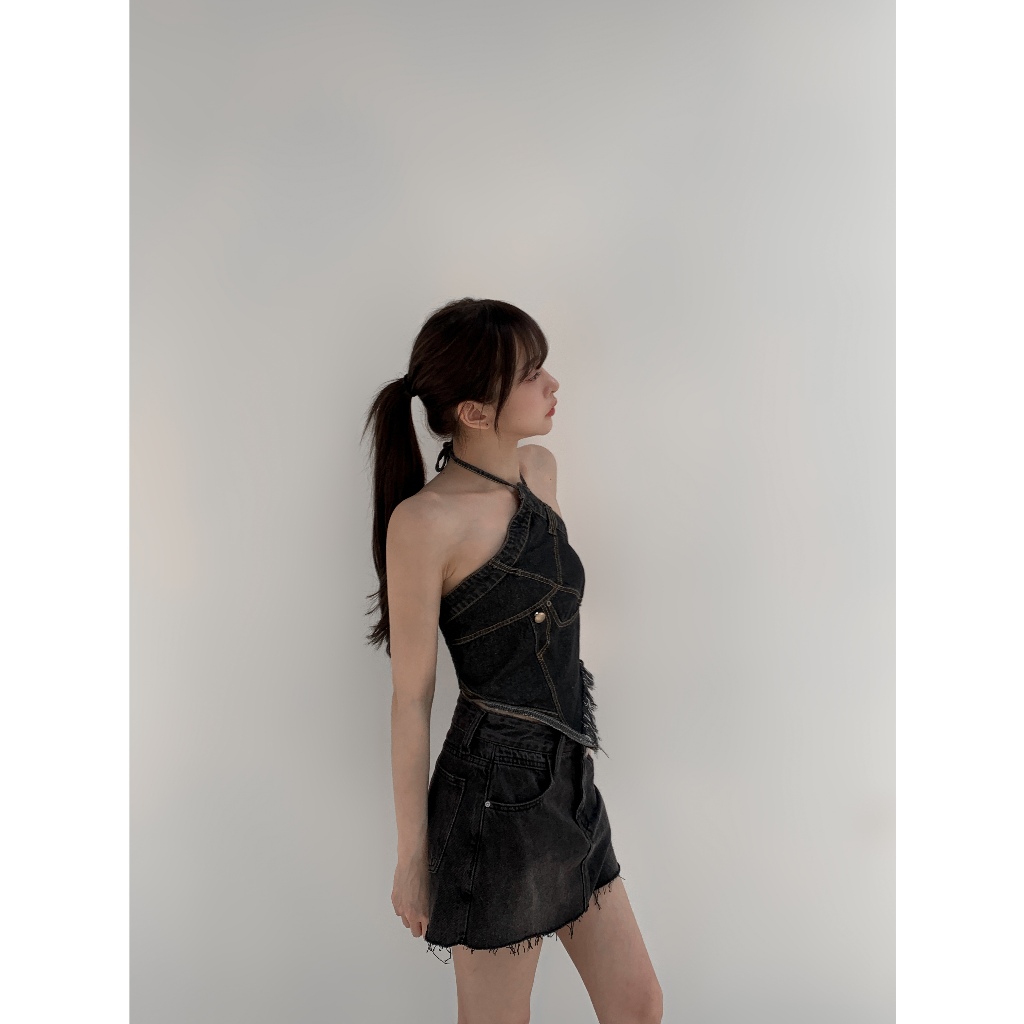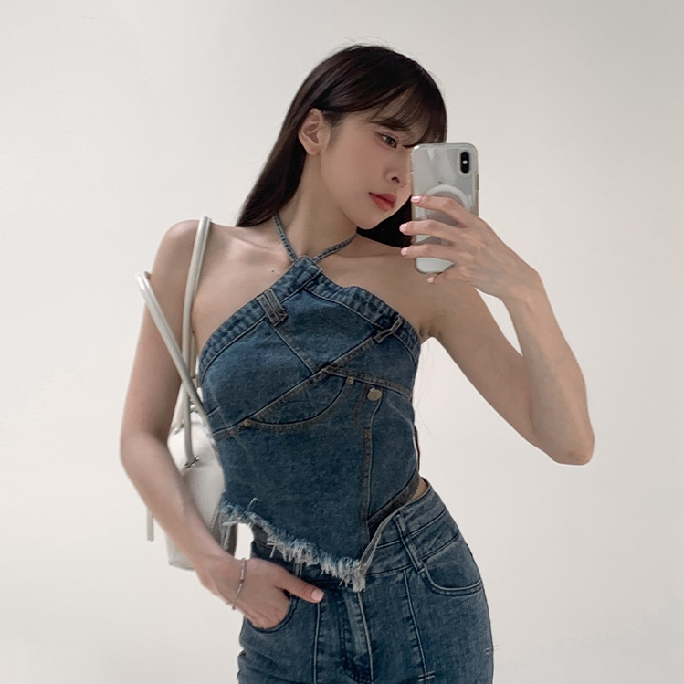 【Aa.chic熱賣商品】時髦牛仔領巾式繞脖背心(兩色).女裝/背心/牛仔/繞脖/領巾/實拍【C220062】黑(現貨)|藍(現貨)Tanks & CamisolesAa Chic