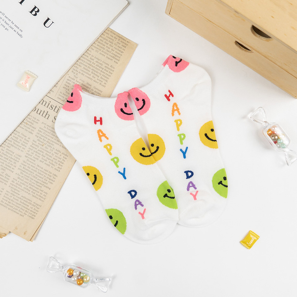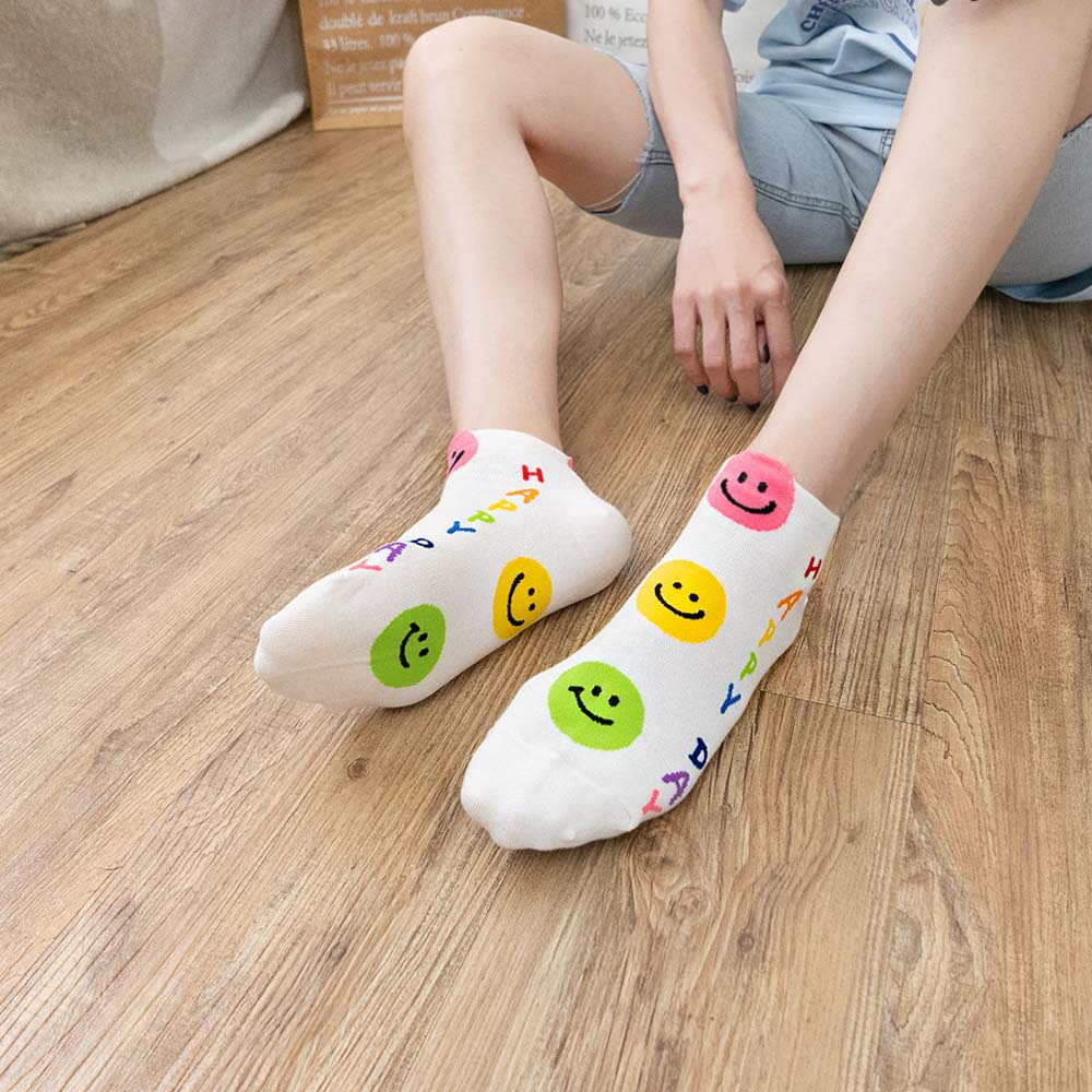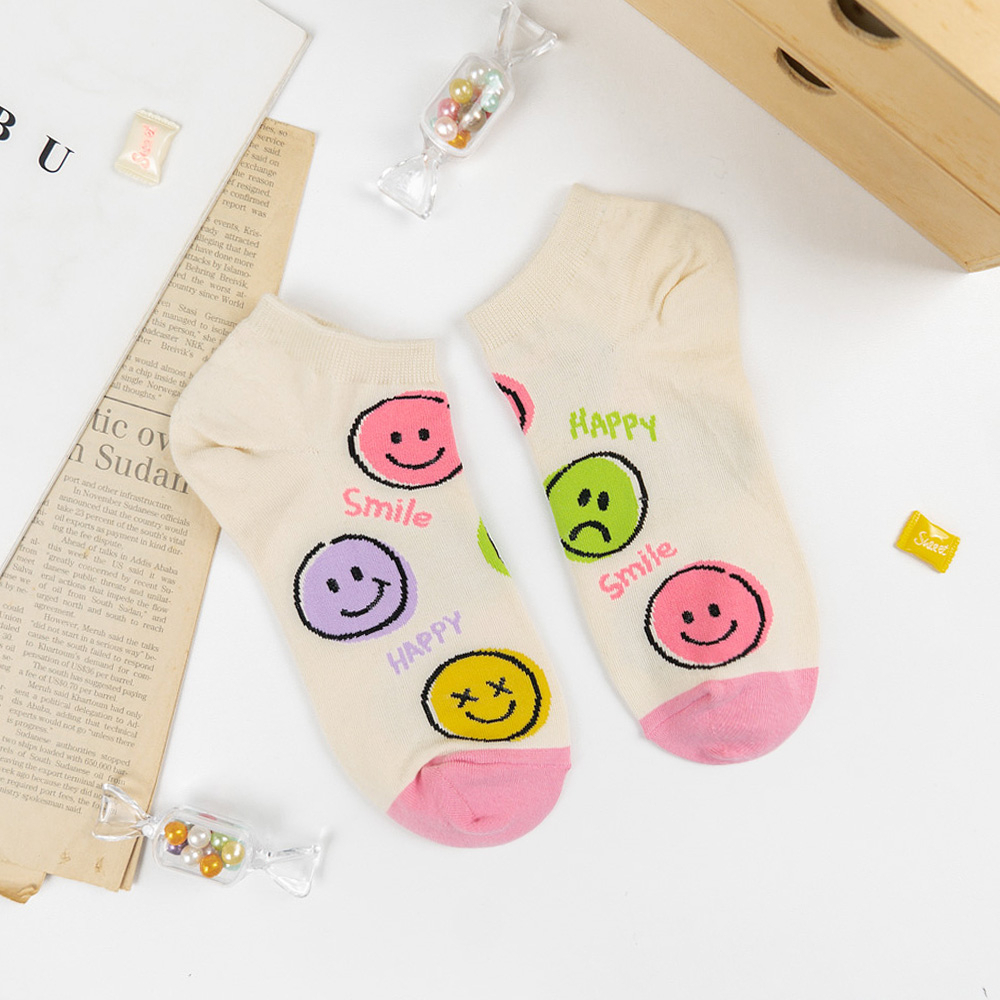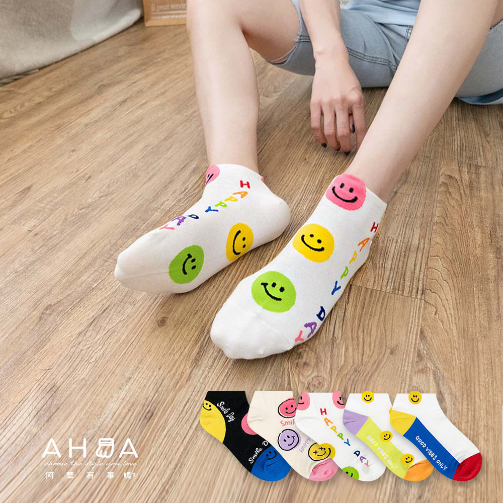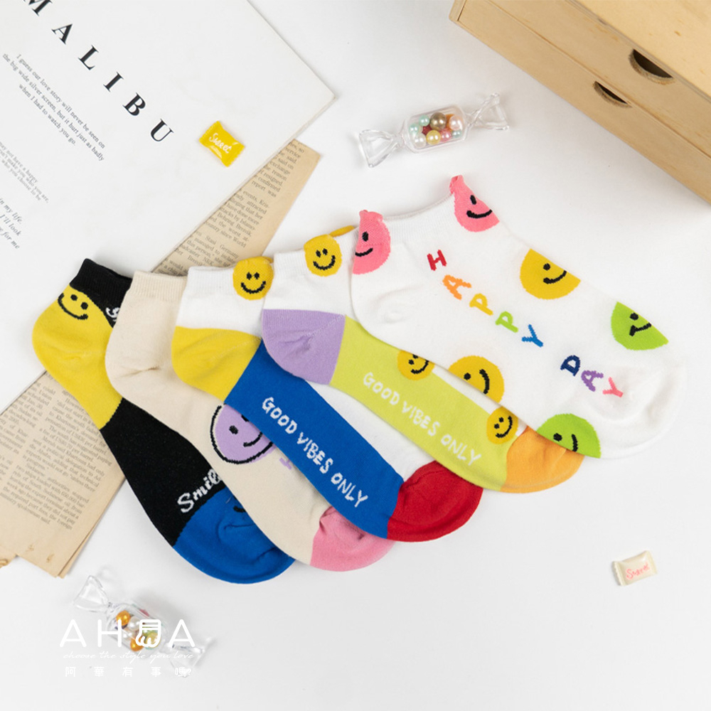AHUA阿華有事嗎 韓國襪子 塗鴉笑臉短襪 K1721 襪子推薦 流行襪首選 長襪 可愛 日系 短襪 童趣白底紅前跟|米底粉前跟|白底白前跟|黑底藍前跟|白底橘前跟SocksAHUA 韓國襪子品牌旗艦店