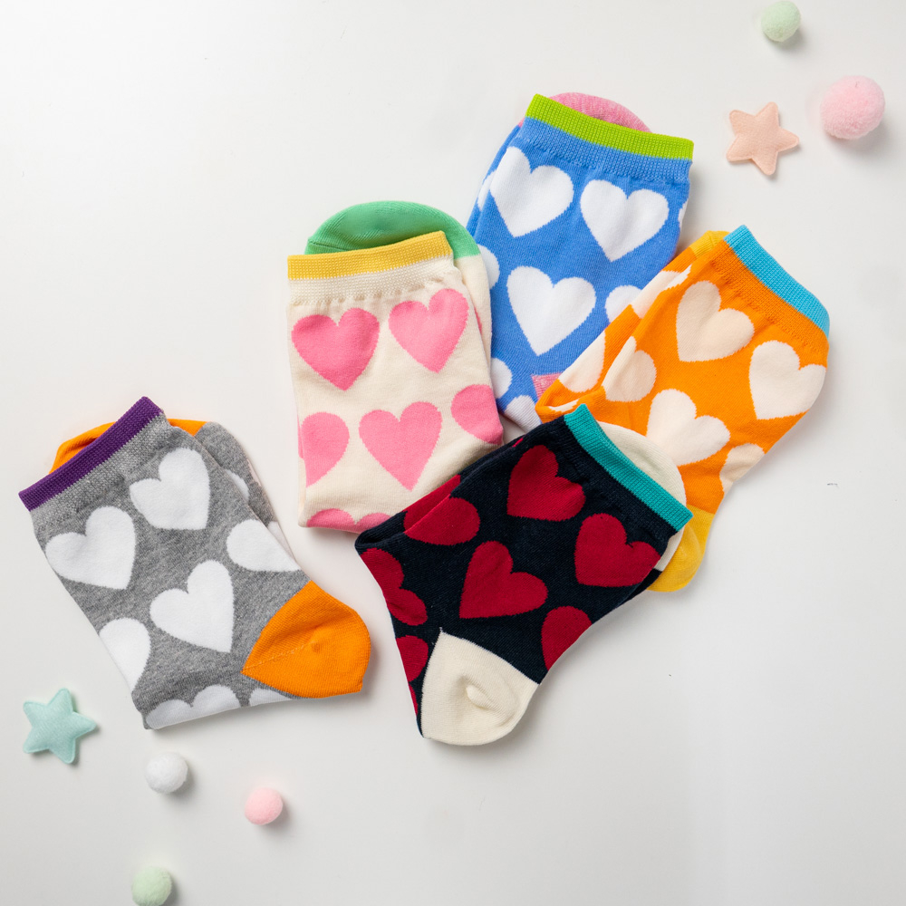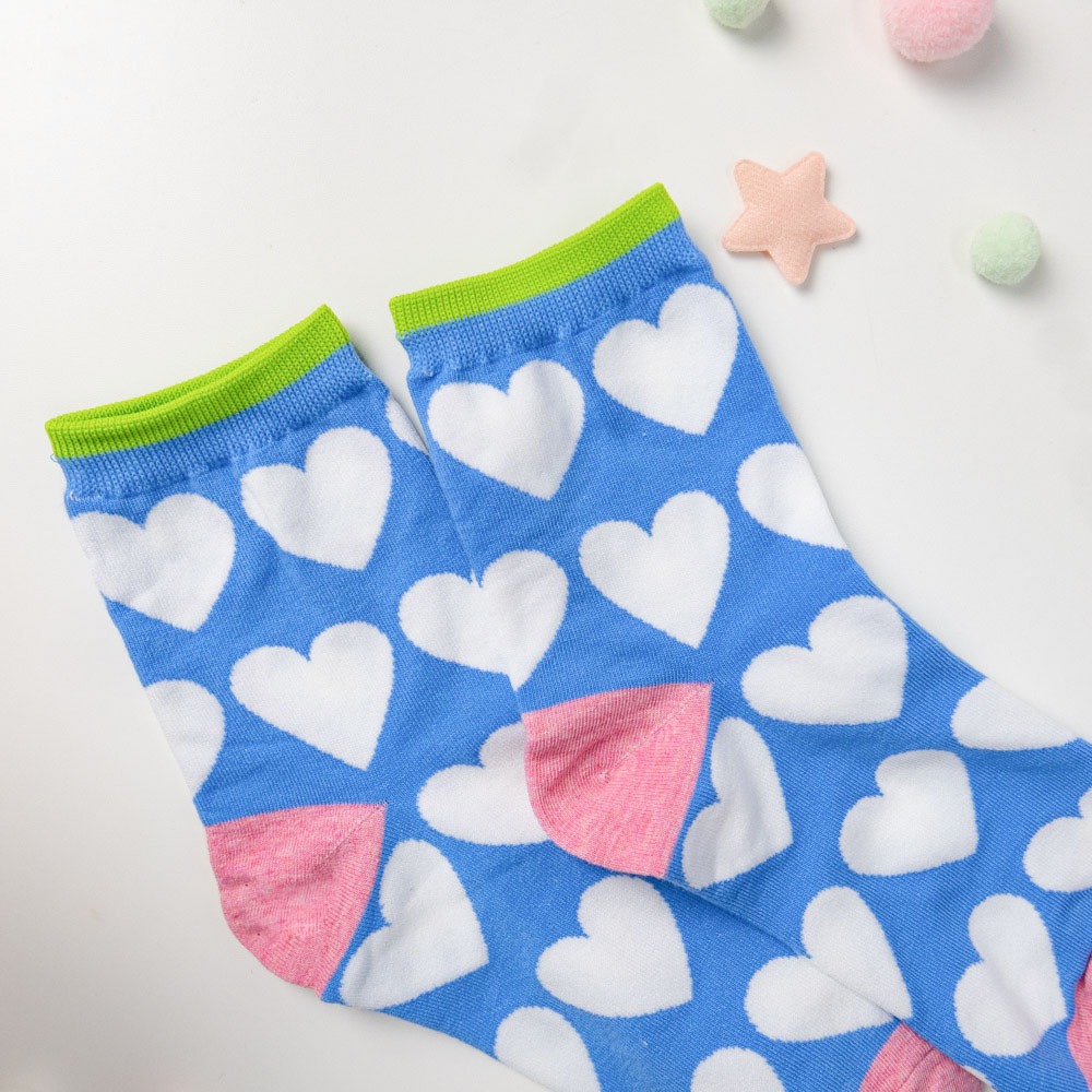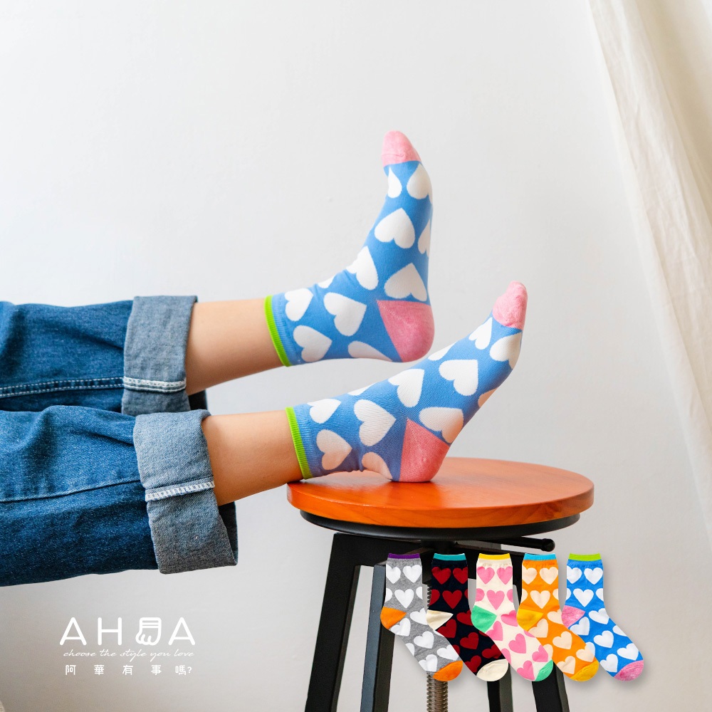 AHUA阿華有事嗎 韓國襪子 滿版多巴胺愛心拼色中筒襪 K1818 韓妞必備 百搭純棉襪 韓系 日系 可愛灰底白愛心|藍底白愛心|橘底米愛心|米白底粉愛心|黑底紅愛心SocksAHUA 韓國襪子品牌旗艦店