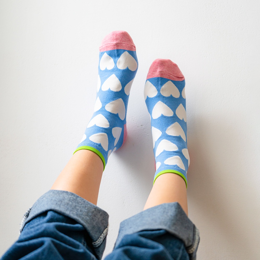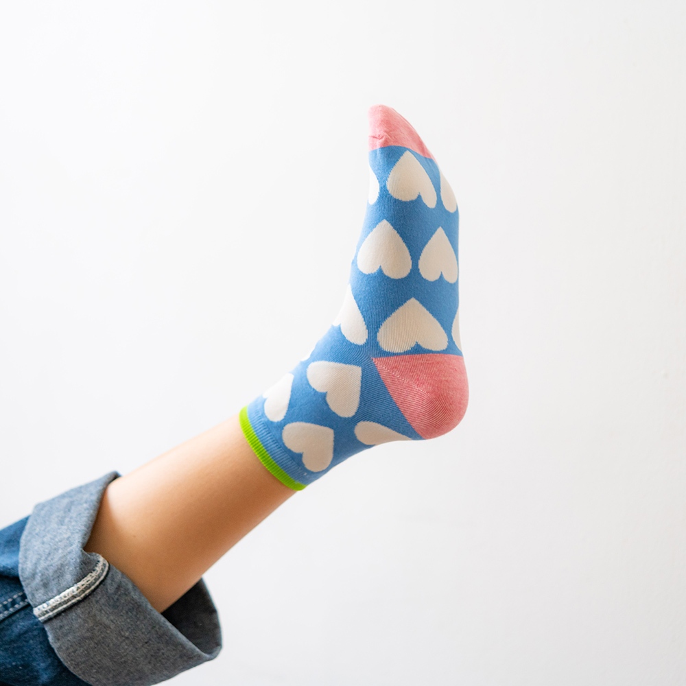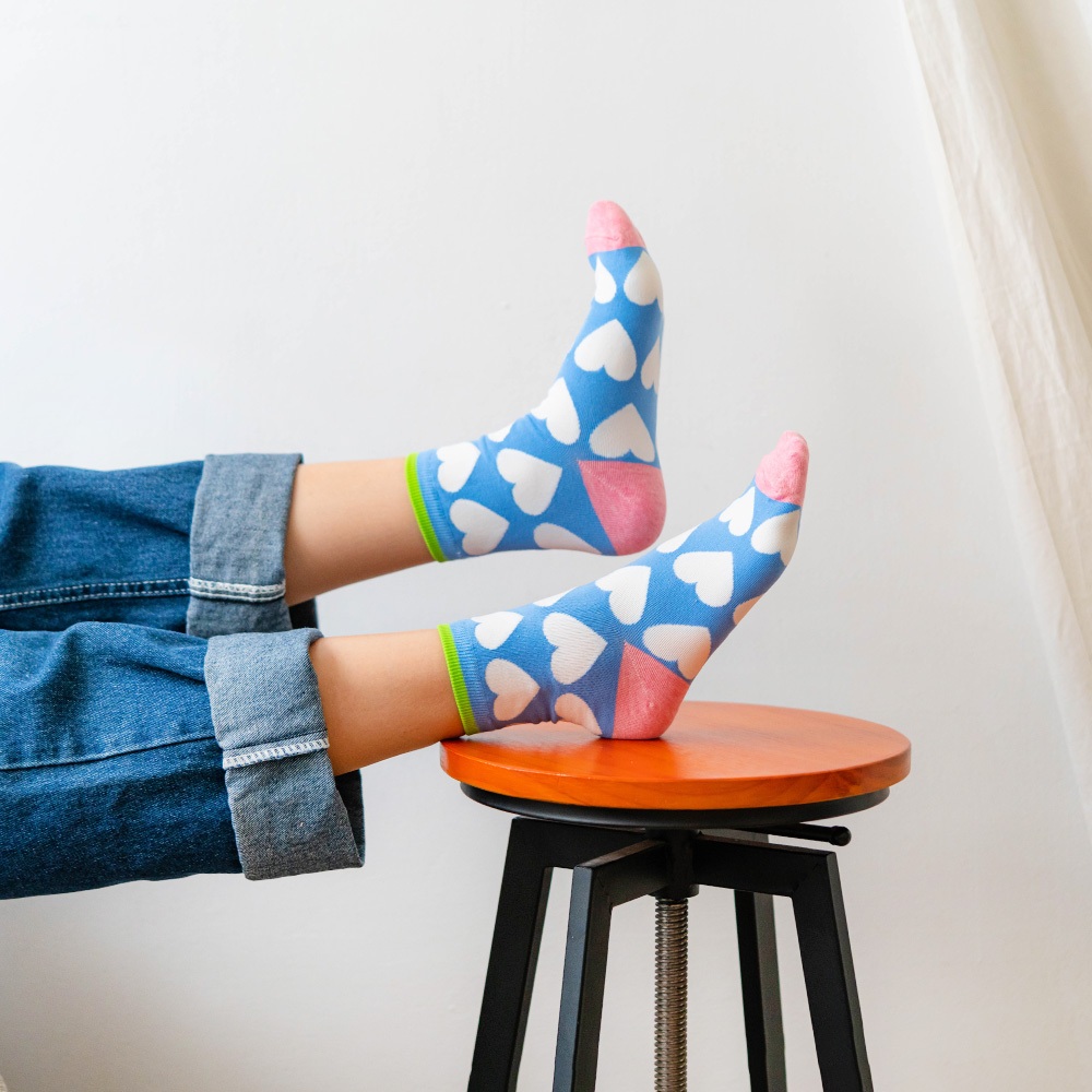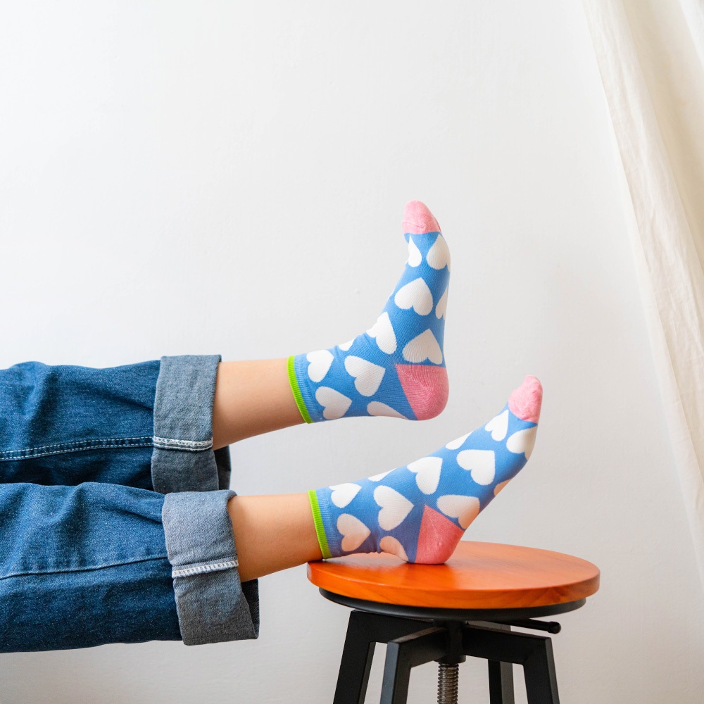 AHUA阿華有事嗎 韓國襪子 滿版多巴胺愛心拼色中筒襪 K1818 韓妞必備 百搭純棉襪 韓系 日系 可愛灰底白愛心|藍底白愛心|橘底米愛心|米白底粉愛心|黑底紅愛心SocksAHUA 韓國襪子品牌旗艦店
