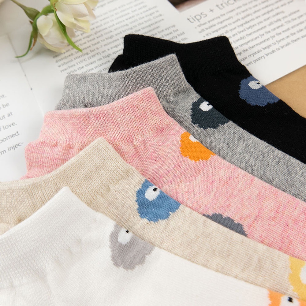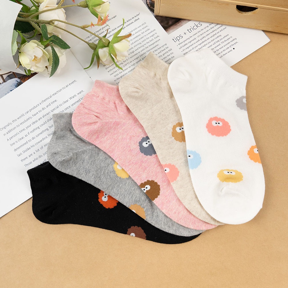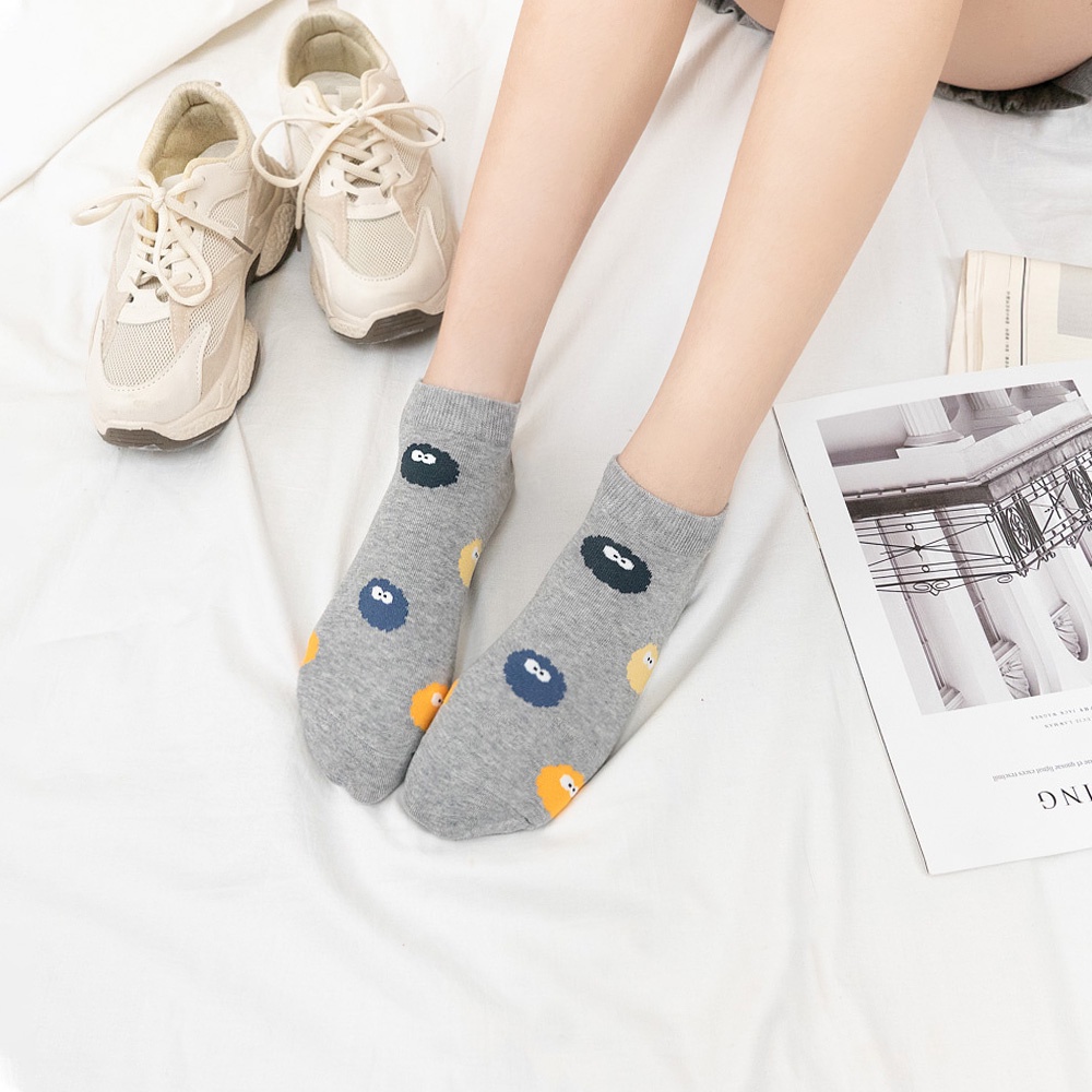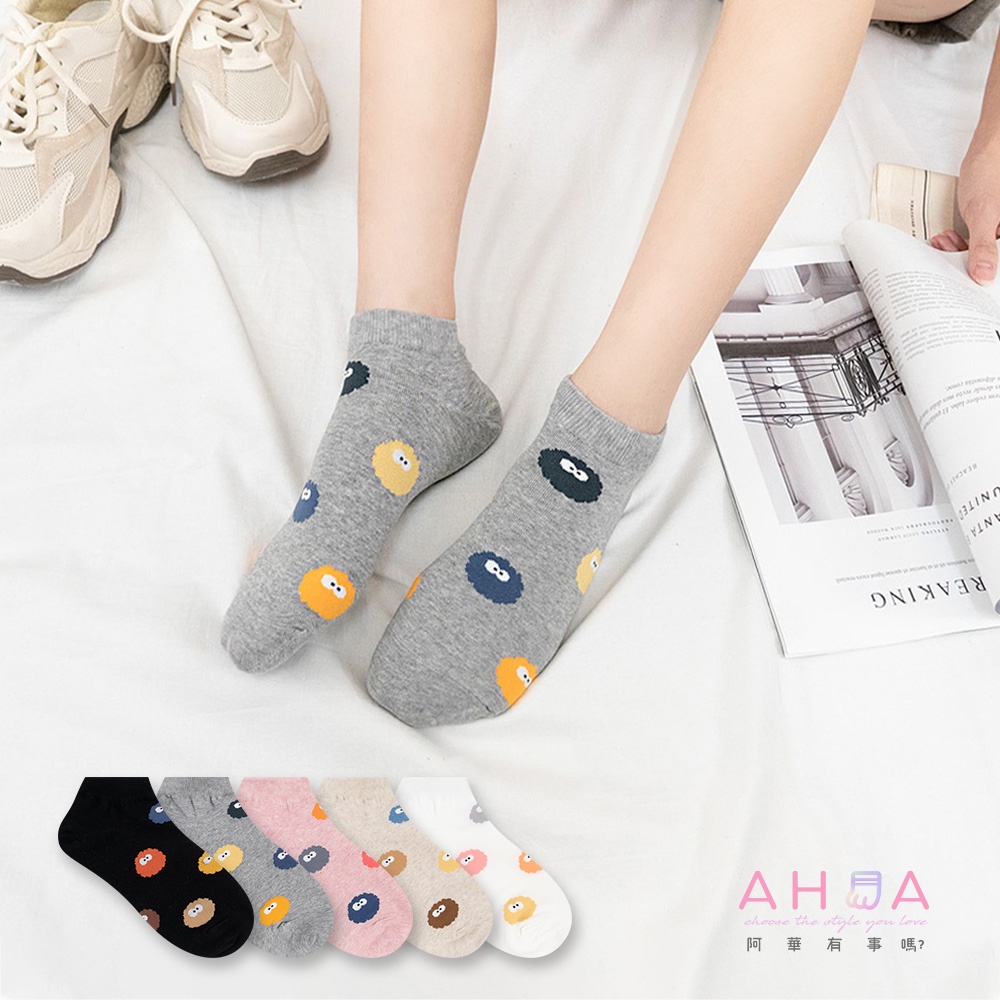 AHUA 韓國襪子 滿版彩色小精靈短襪 K1466 女生襪子 女襪 女生短襪 學生襪 純棉襪子 阿華有事嗎米白底|黑底|白底|粉底|灰底SocksAHUA 韓國襪子品牌旗艦店