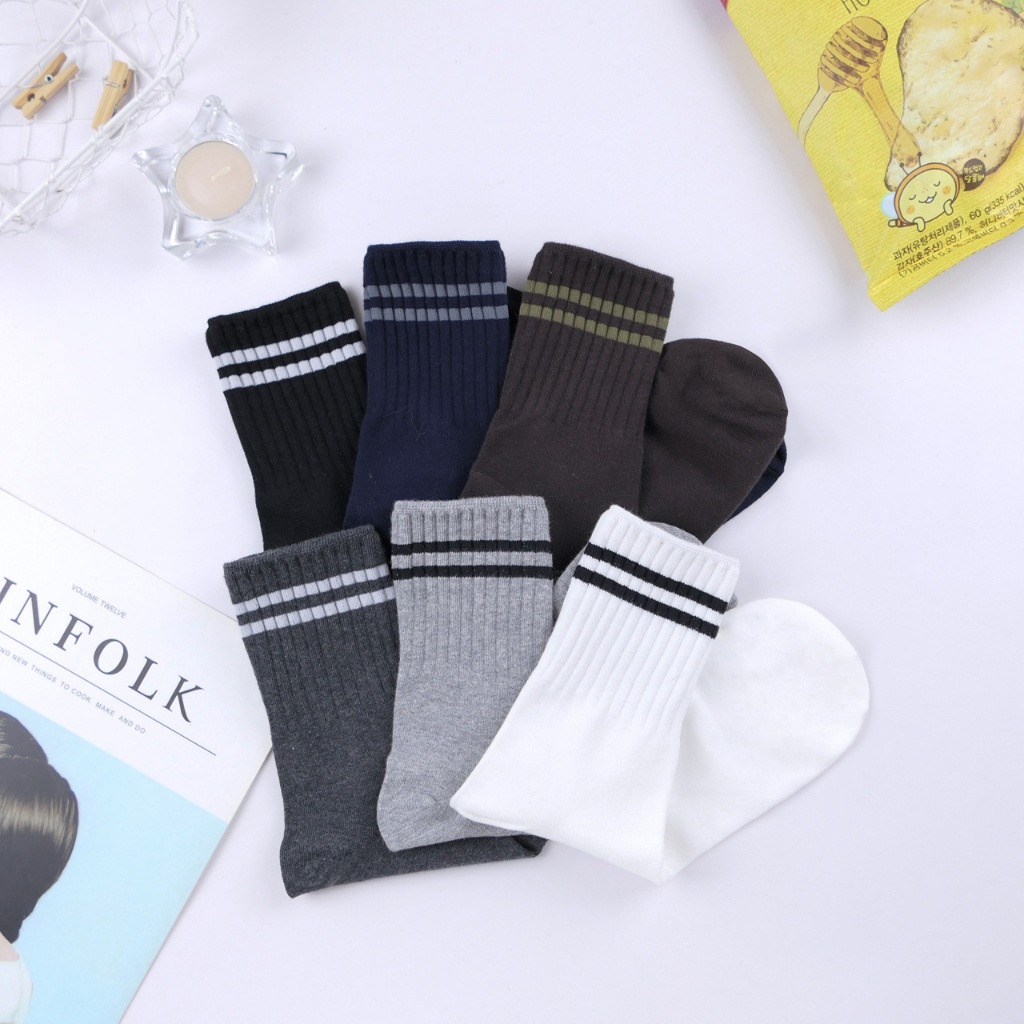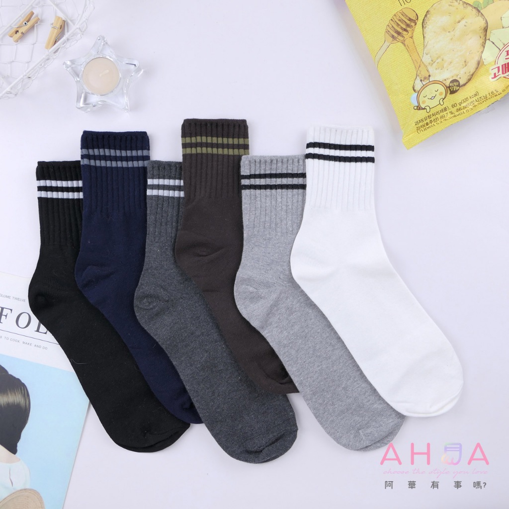 AHUA 阿華有事嗎 襪口兩條線男生中筒襪 男襪 K2328 正韓襪子 百搭純棉襪 印花男襪 純棉襪白底|淺灰底|深灰底|咖底|藍底|黑底SocksAHUA 韓國襪子品牌旗艦店