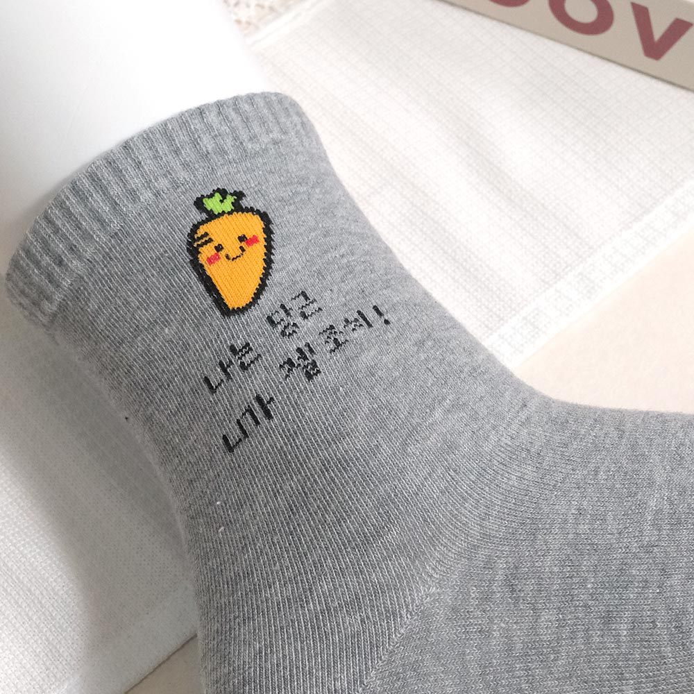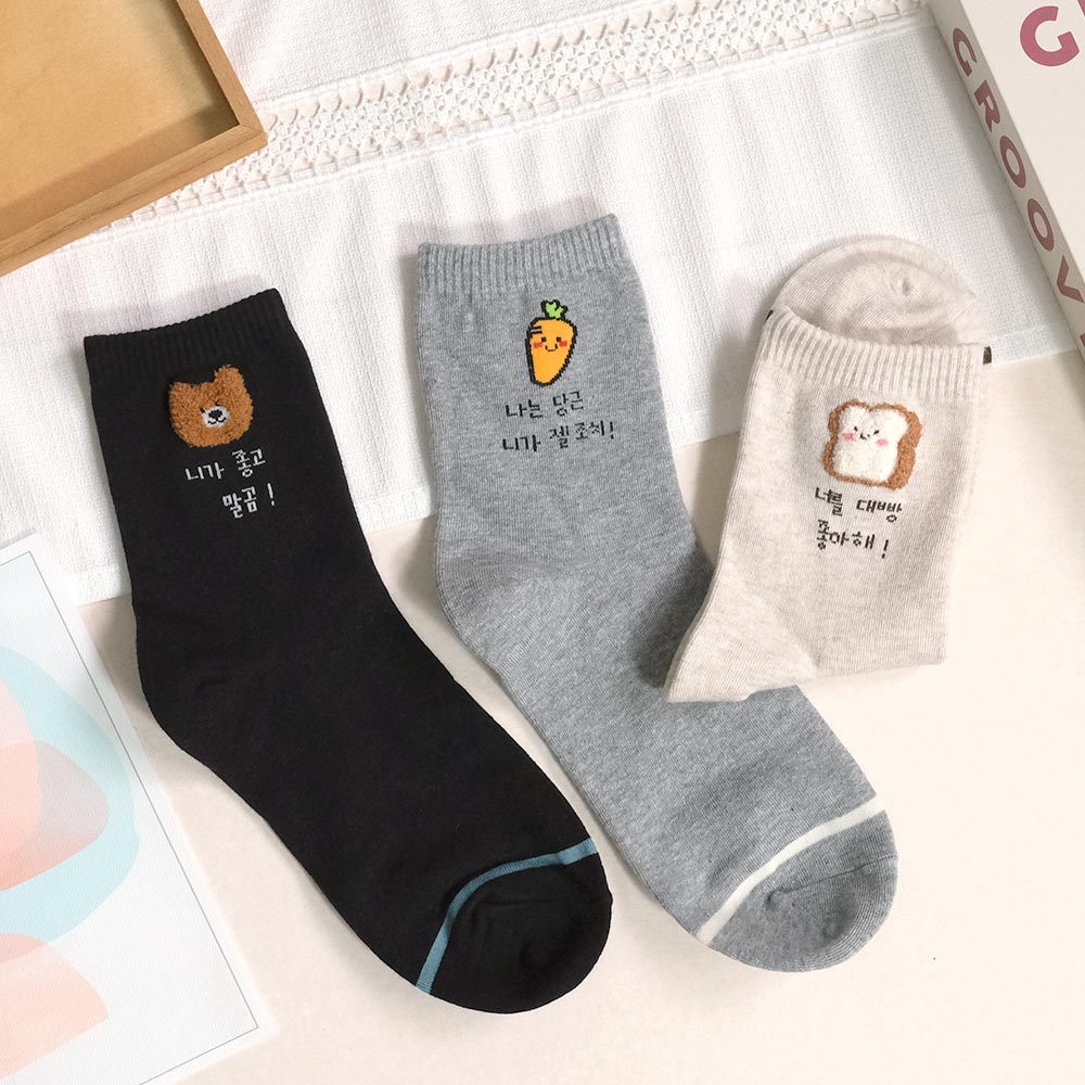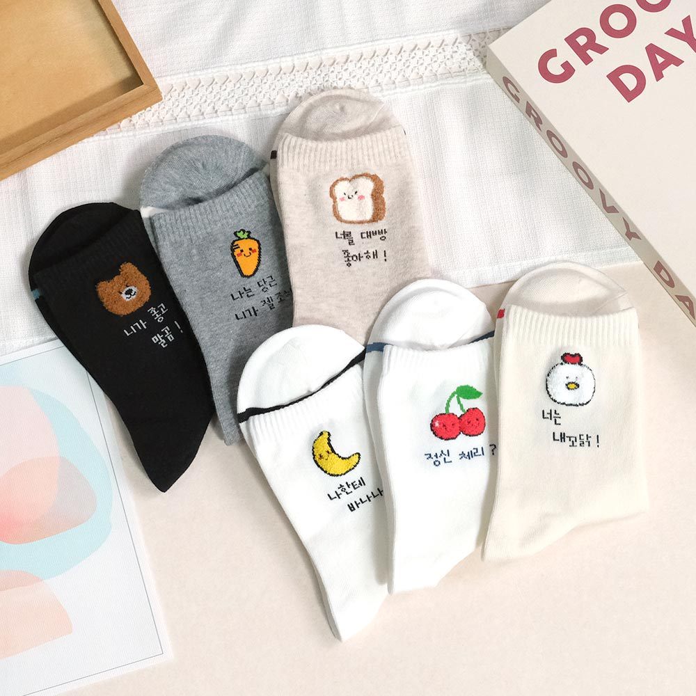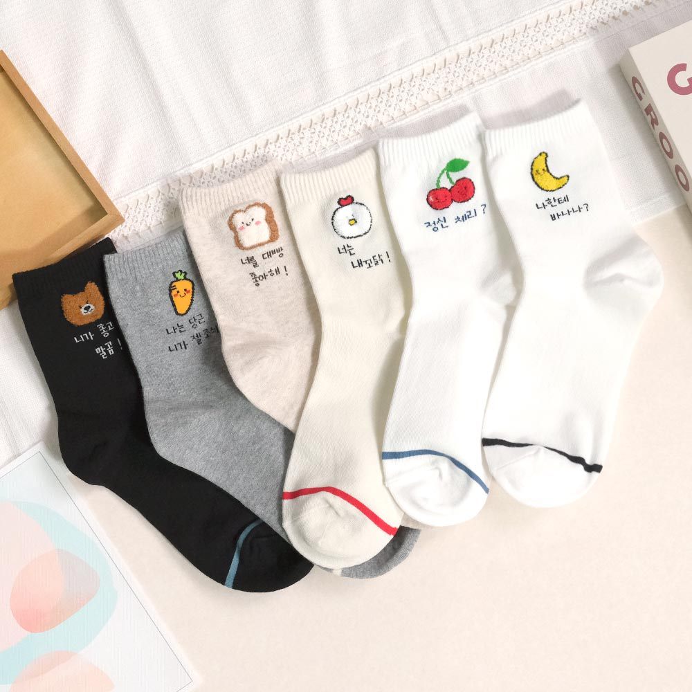 AHUA 阿華有事嗎 立體毛毛小圖韓語留言中筒襪 K2304 正韓襪子 百搭純棉襪 韓妞必備 少女襪白底香蕉|白底櫻桃|米黃底公雞|米白底吐司|灰底胡蘿蔔|黑底熊熊SocksAHUA 韓國襪子品牌旗艦店