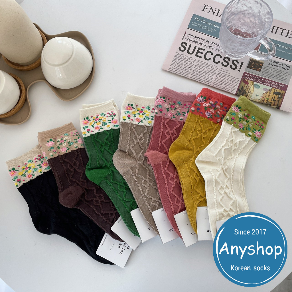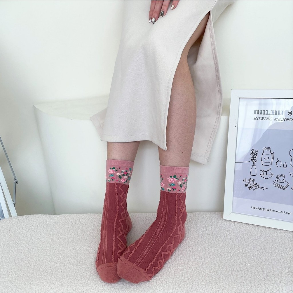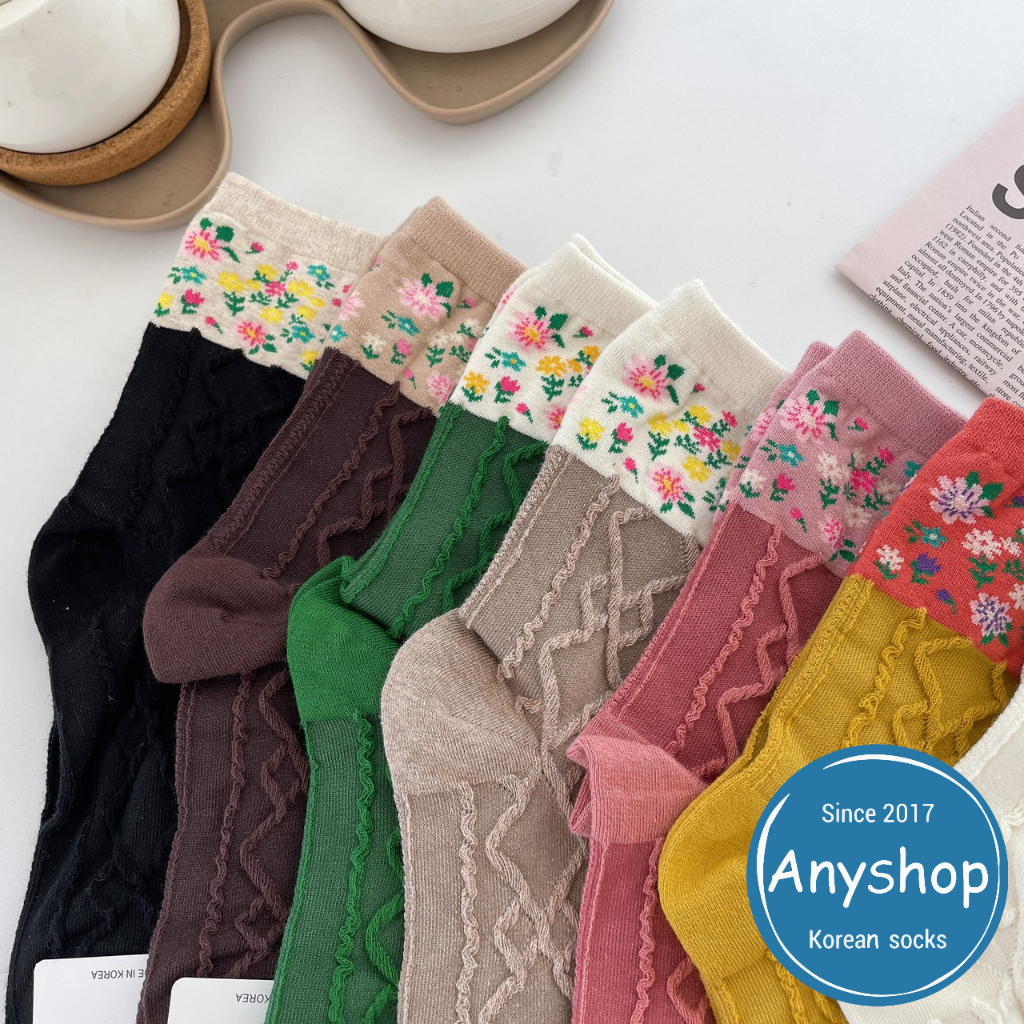 Anyshop韓國襪 文青款 素色壓紋碎花襪 碎花襪 小碎花 女孩襪子 女孩中筒襪 長襪 復古風 韓襪 02603黑色【02603】|綠色【02603】|芥黃色【02603】|米白色【02603】|淺咖啡色【02603】|粉色【02603】|深咖啡色【02603】SocksAnyshop韓國襪專賣 | 零售 | 團購 | 批發