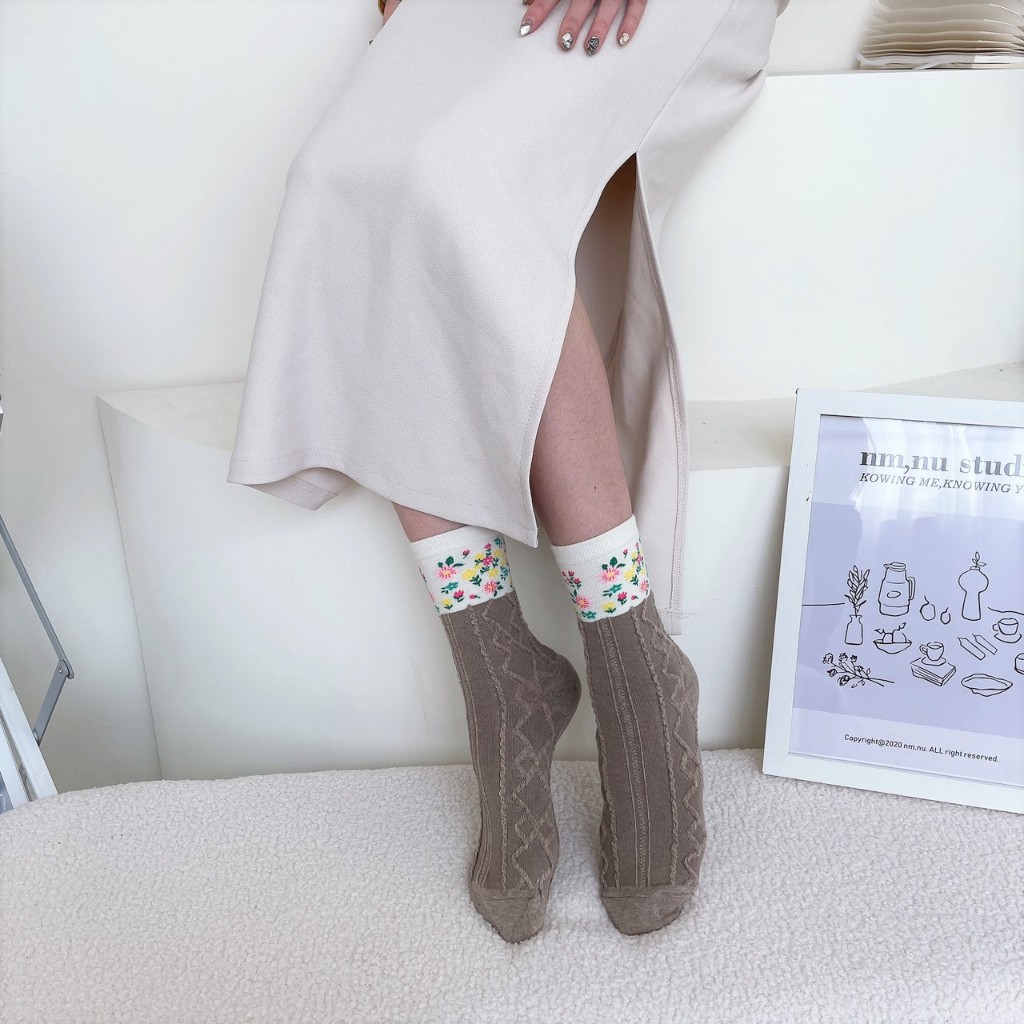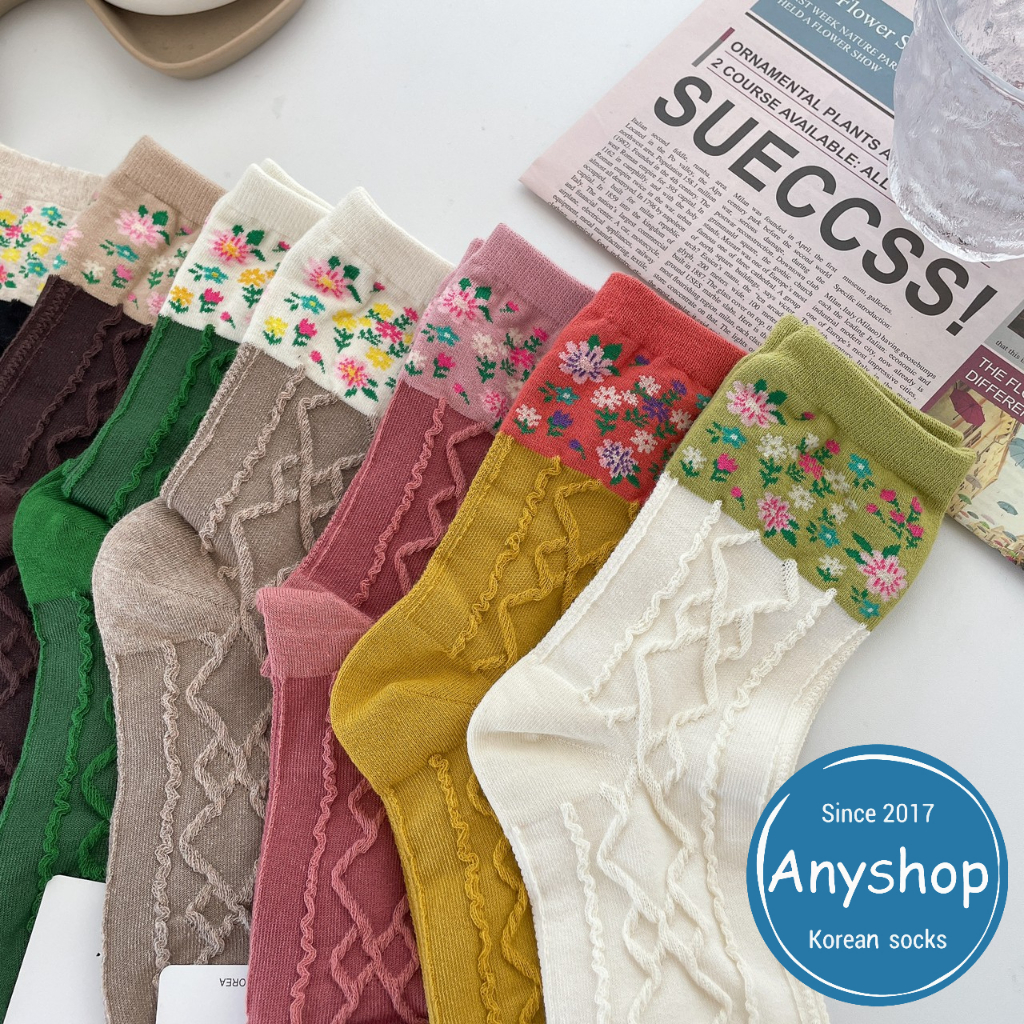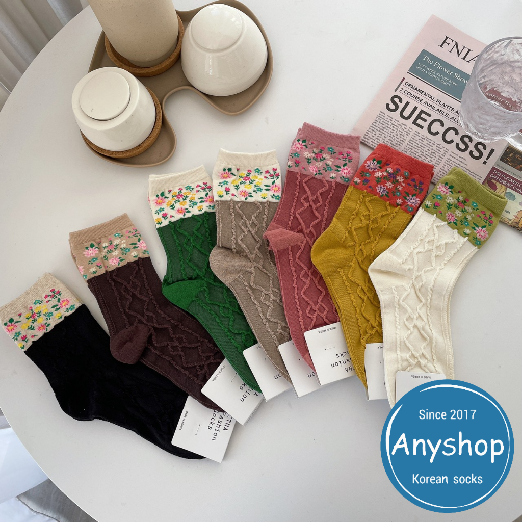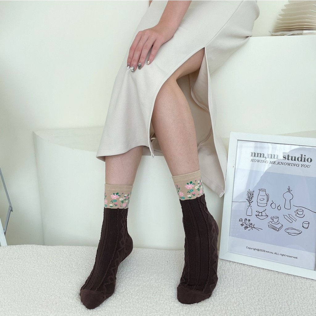 Anyshop韓國襪 文青款 素色壓紋碎花襪 碎花襪 小碎花 女孩襪子 女孩中筒襪 長襪 復古風 韓襪 02603黑色【02603】|綠色【02603】|芥黃色【02603】|米白色【02603】|淺咖啡色【02603】|粉色【02603】|深咖啡色【02603】SocksAnyshop韓國襪專賣 | 零售 | 團購 | 批發