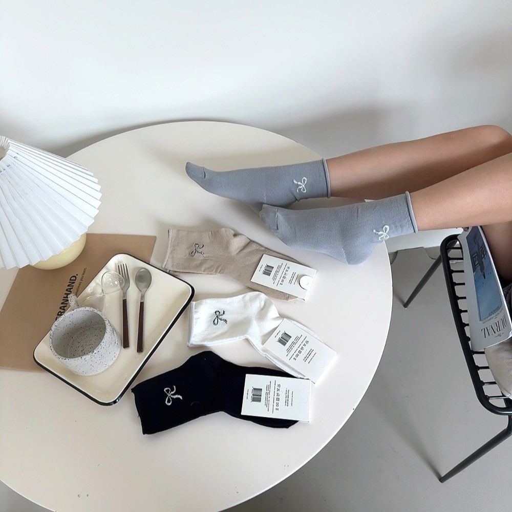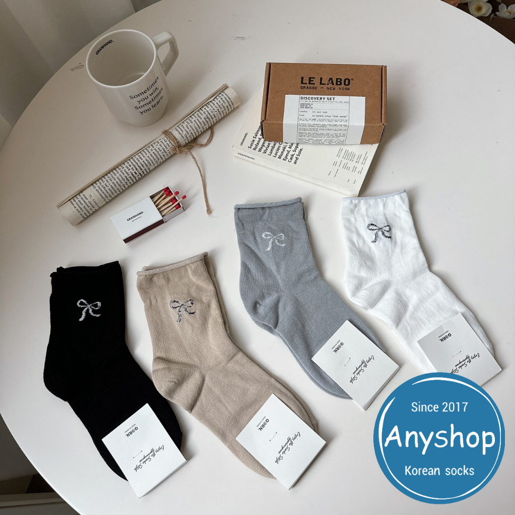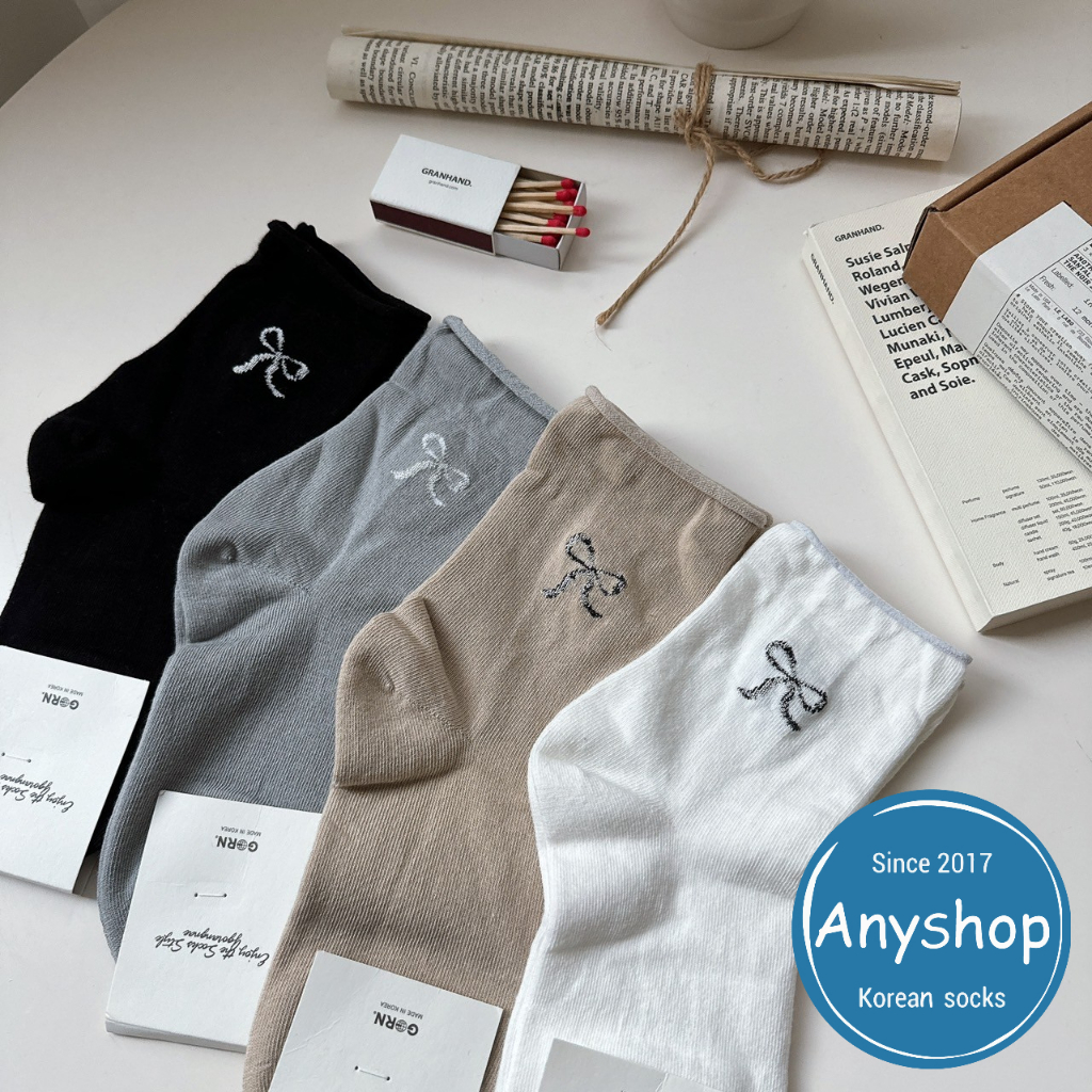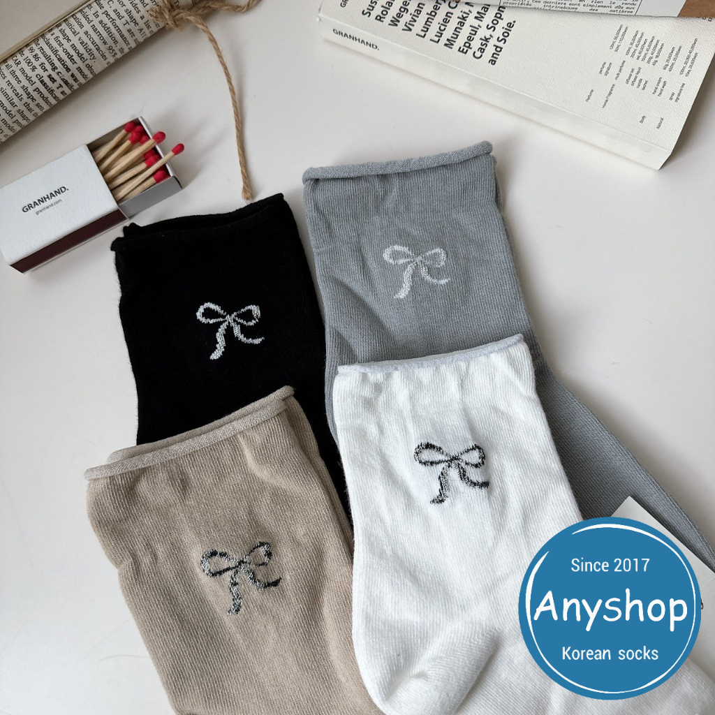 Anyshop韓國襪 蝴蝶結系列 素色長襪 蝴蝶結襪 女孩襪 捲邊襪 韓襪 韓國襪 長襪 蝴蝶結 襪子 04801灰色【04801】|黑色【04801】|白色【04801】|可可色【04801】SocksAnyshop韓國襪專賣 | 零售 | 團購 | 批發