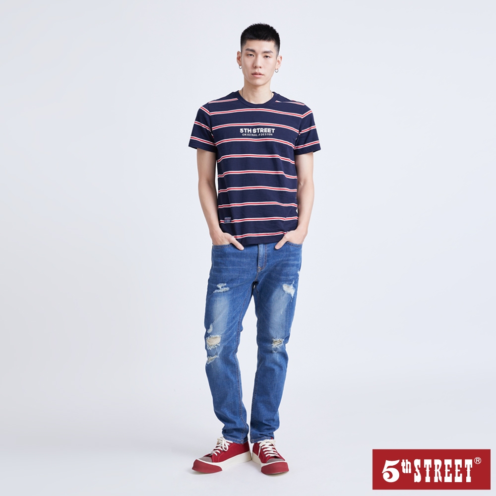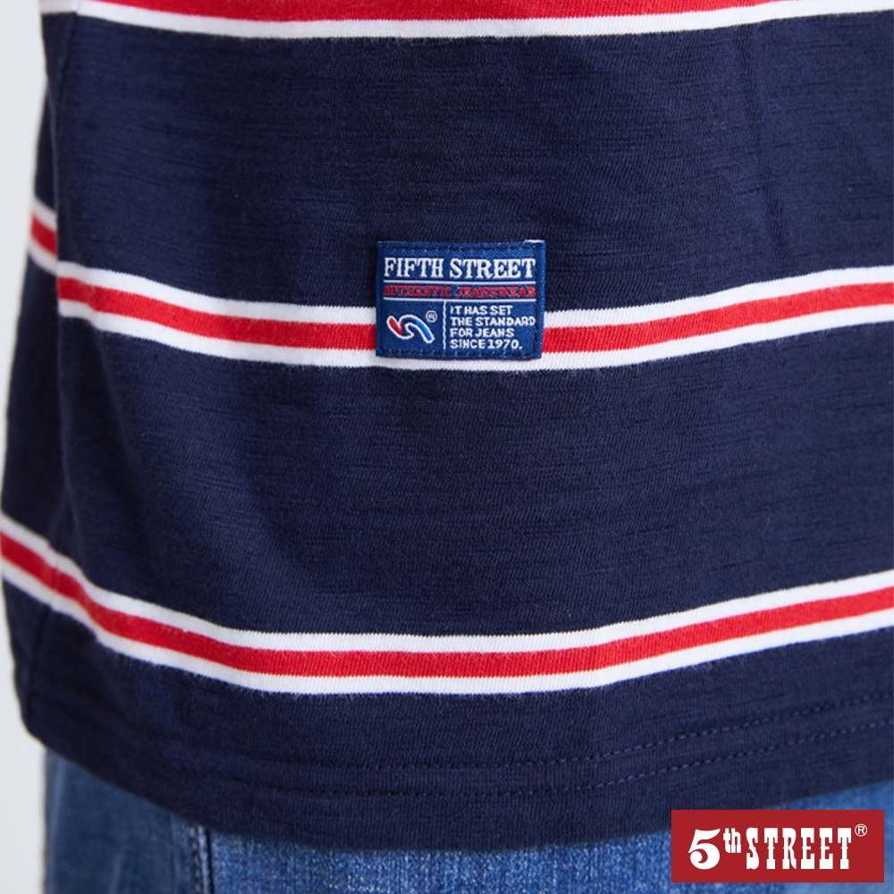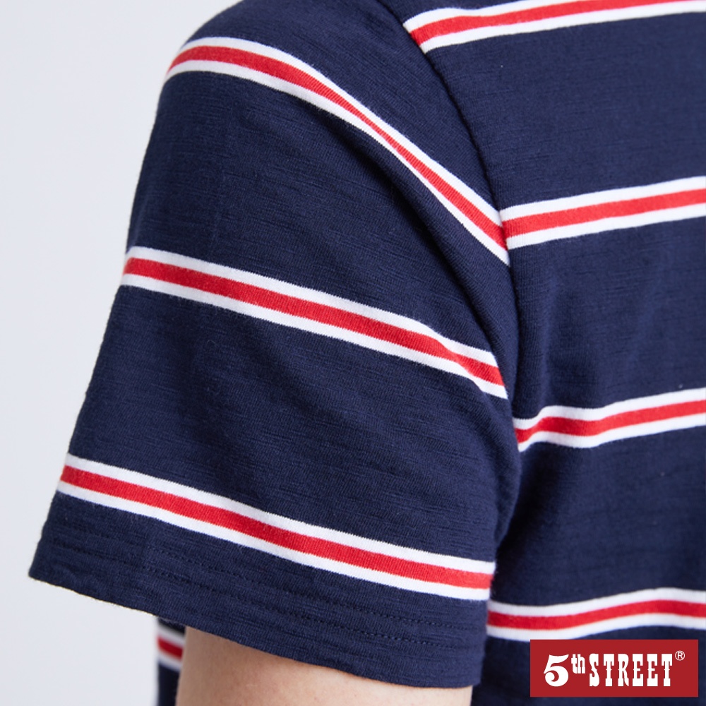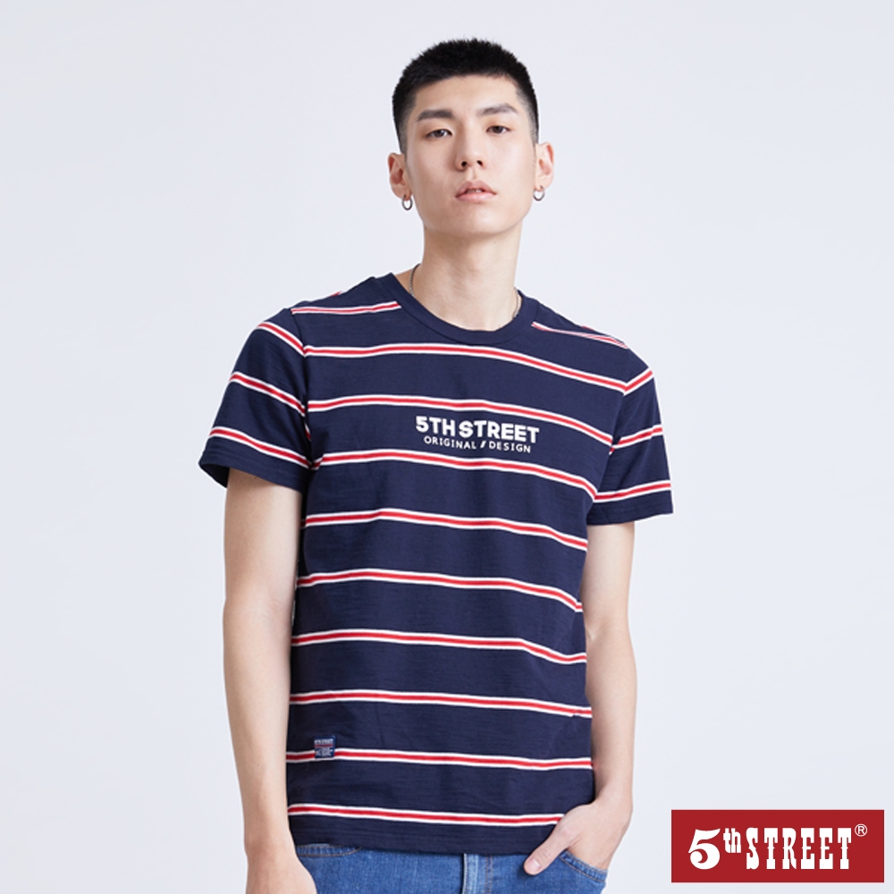 【5th STREET】 中性 條紋LOGO短袖T恤-丈青 (570863)S|M|LT-shirts5thStreet 官方旗艦店