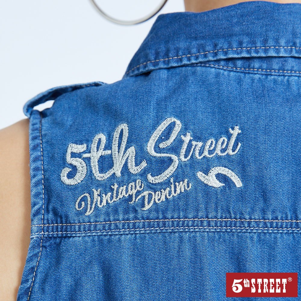 【5th STREET】 女裝 無袖綁帶長牛仔洋裝-中古藍 (990049)