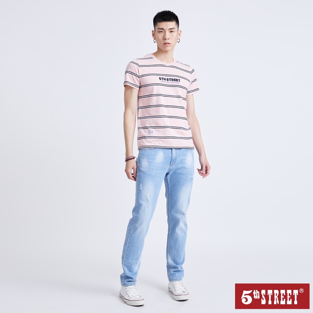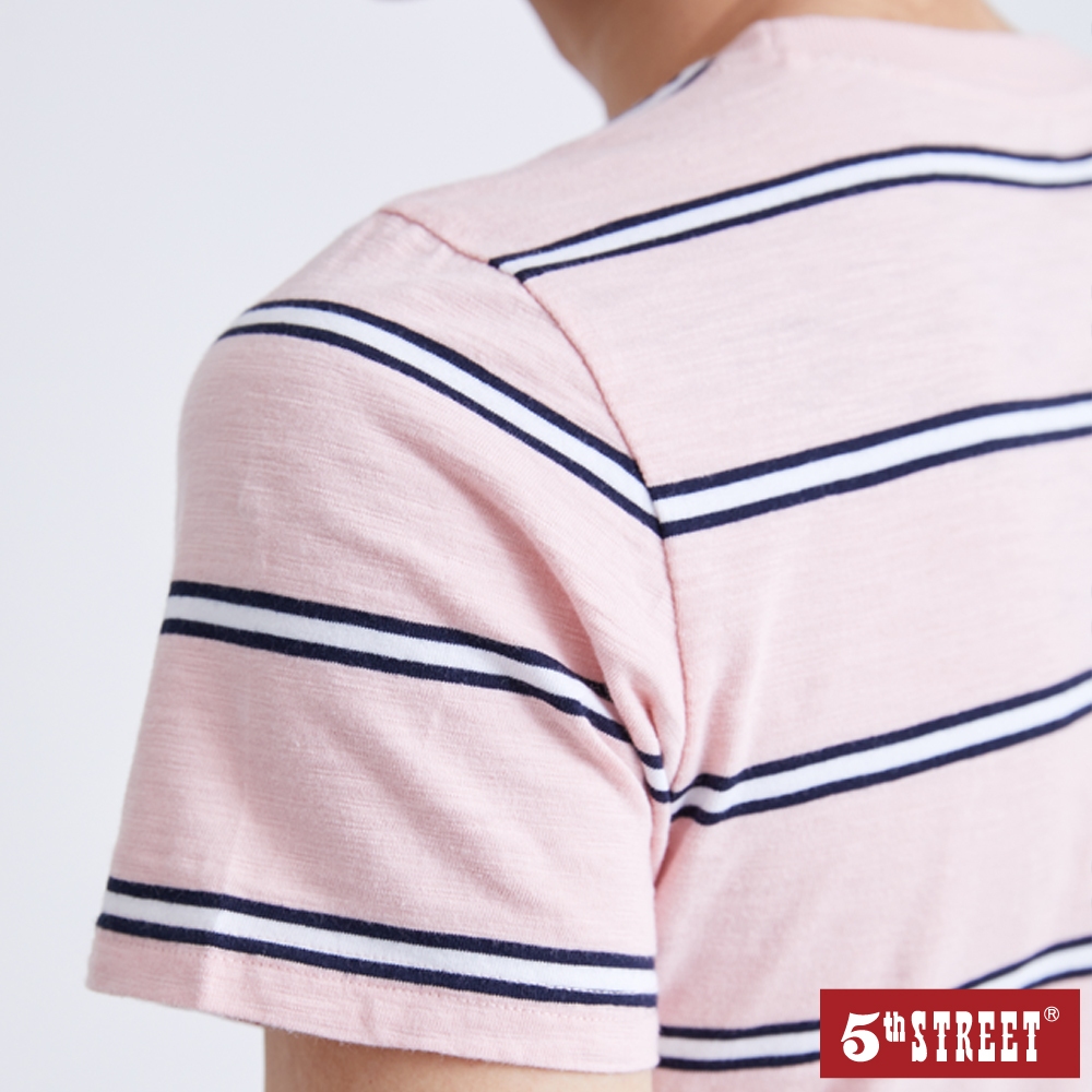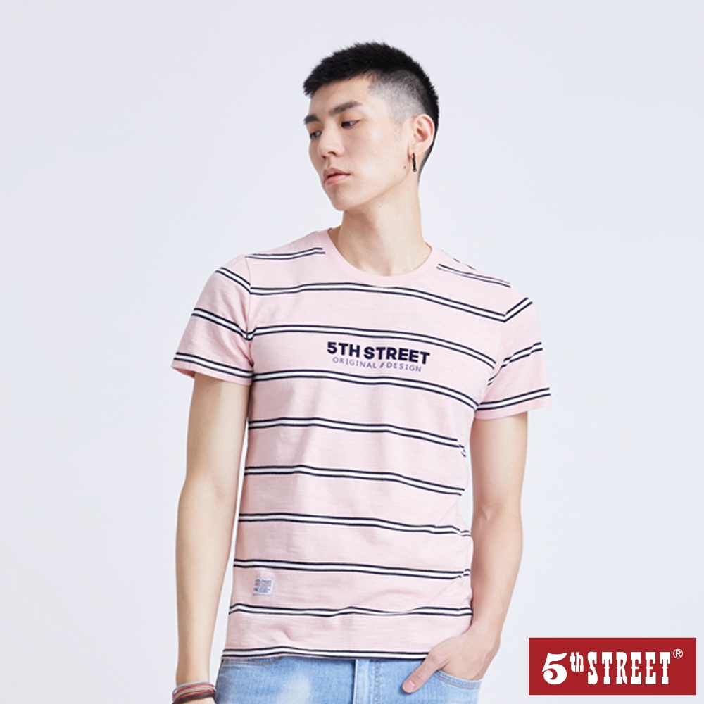 【5th STREET】 中性 條紋LOGO短袖T恤-粉紅 (570863)L|S|MT-shirts5thStreet 官方旗艦店