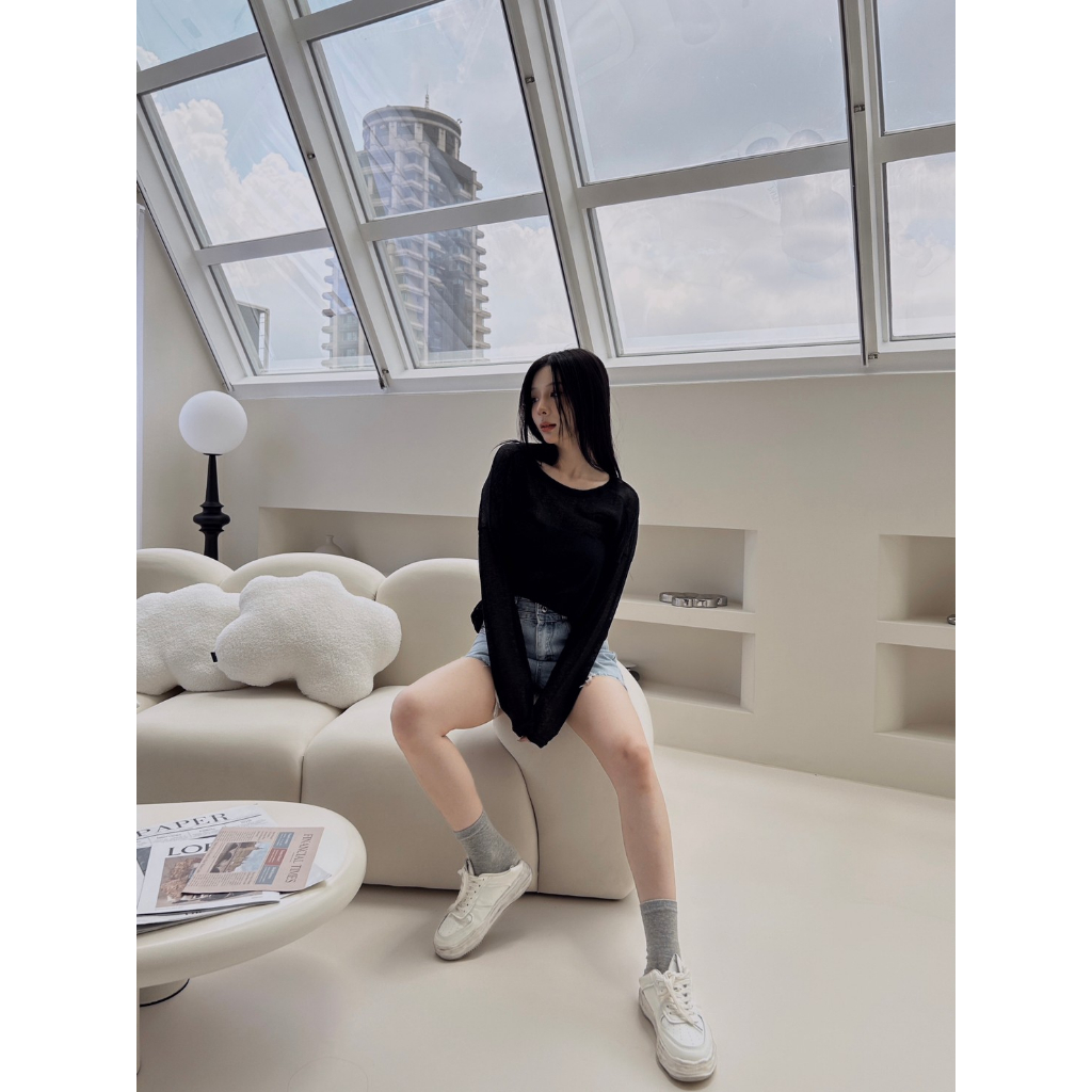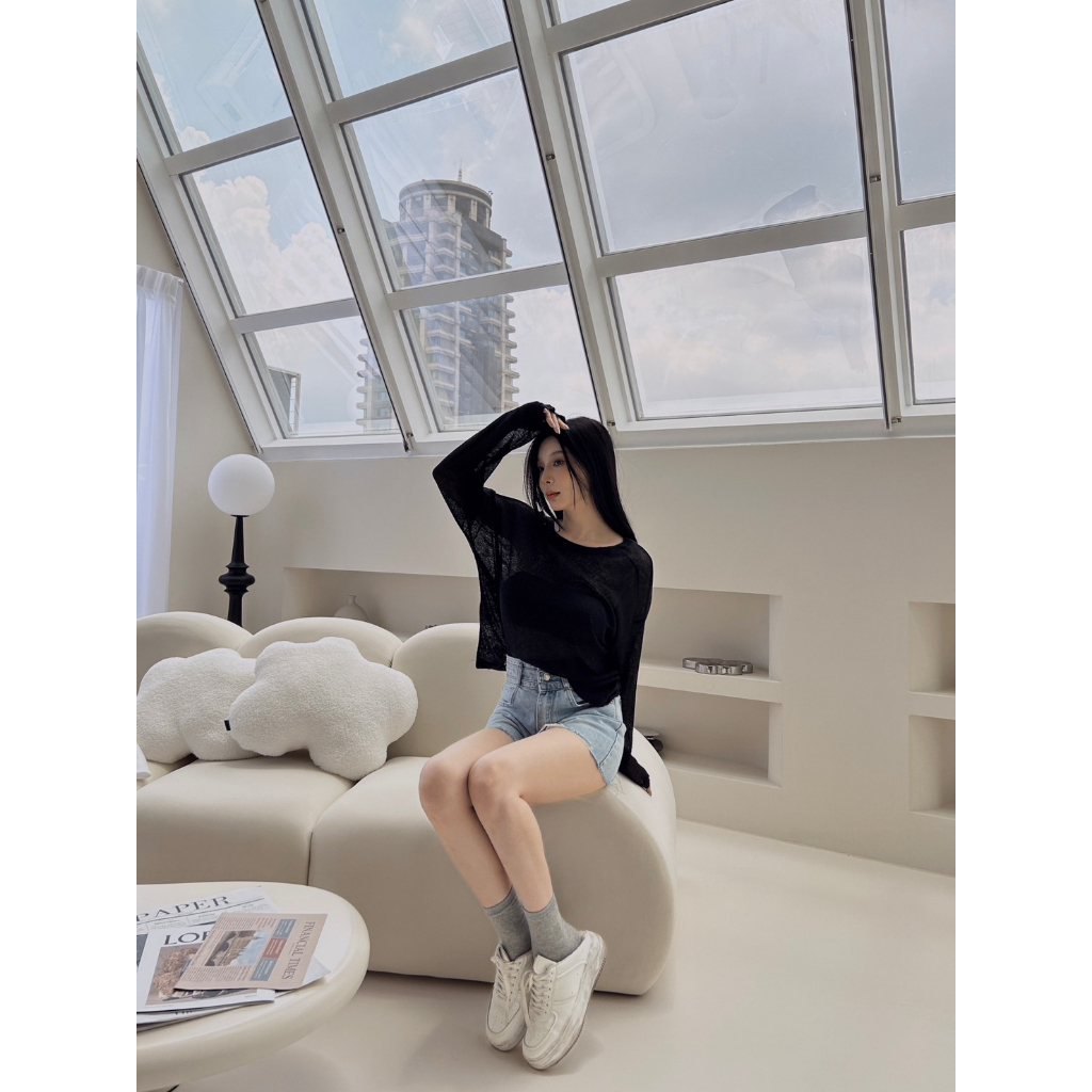 【Aa.chic】微透膚質感長袖上衣(四色).女裝/上衣/微透/防曬/現貨/官網熱賣萬件【C079328】黑(現貨)|白(現貨)|灰(現貨)|杏(現貨)Aa Chic