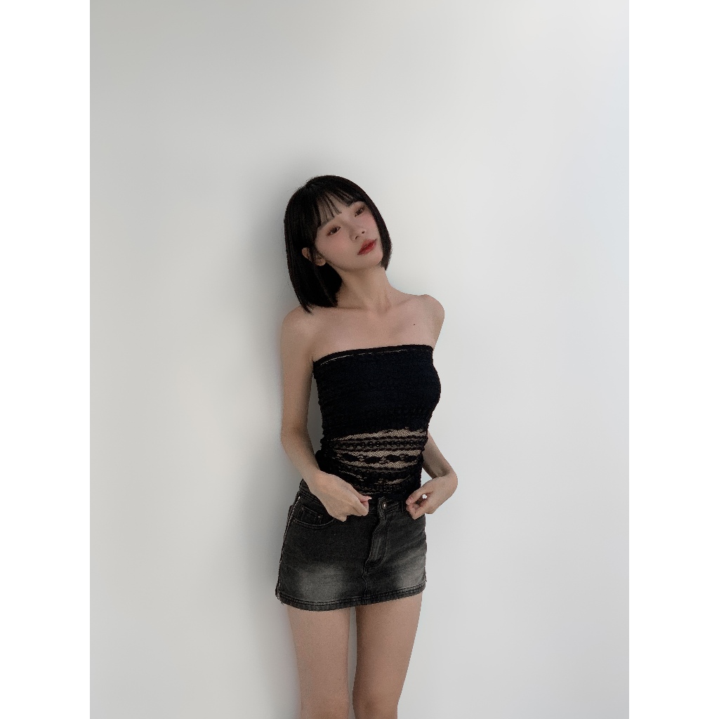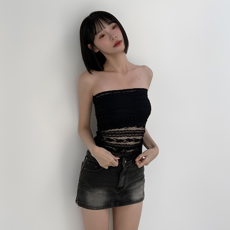 【Aa.chic熱賣商品】蕾絲微透平口抹胸背心(兩色).女裝/蕾絲/透膚/平口/背心/夏日/日常/穿搭【C279291】黑(預購)|杏(現貨)Tube TopsAa Chic