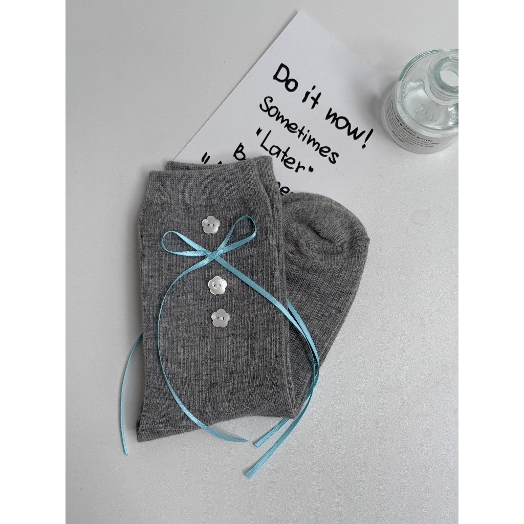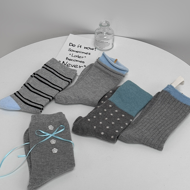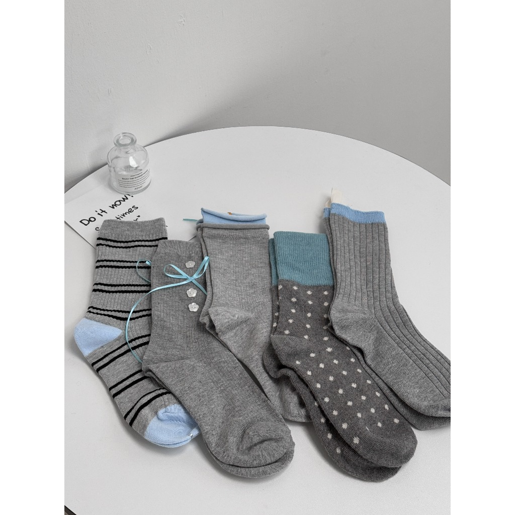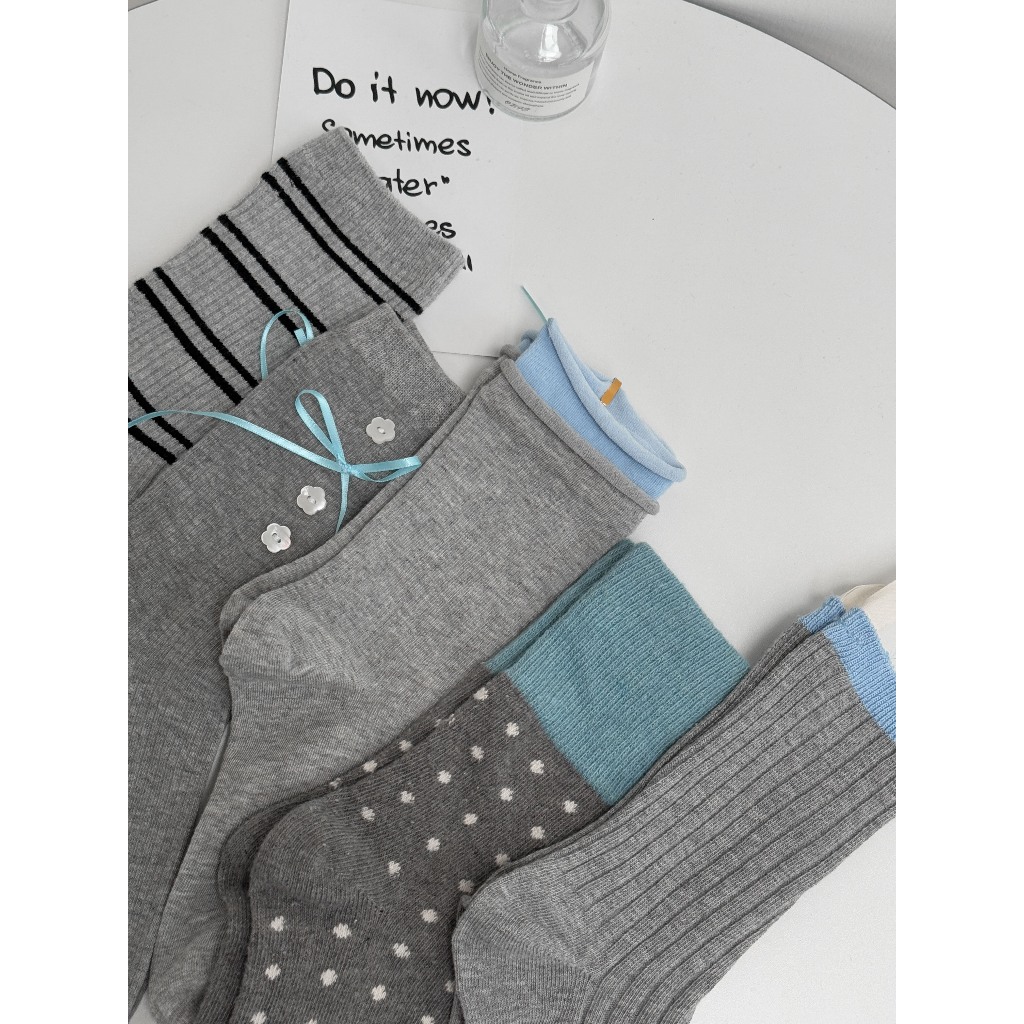 【Aa.chic】好韓!無法拒絕的灰藍襪(五色).配件/女襪/百搭/韓系/藍灰/日常【C224180】捲邊(現貨)|小布標(現貨)|橫條紋(現貨)|點點(現貨)|小花蝴蝶結(現貨)SocksAa Chic
