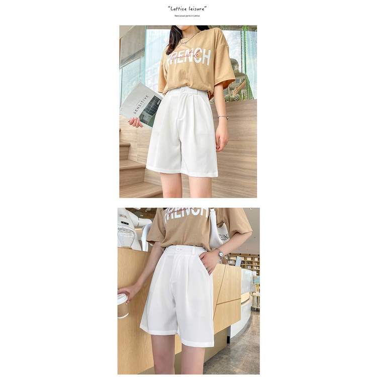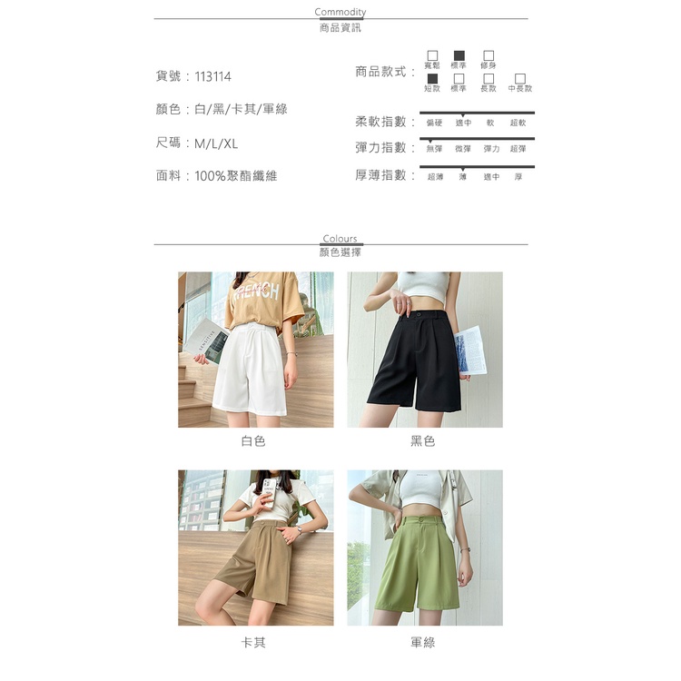 【MsMore】 時尚西裝高腰闊腿鬆緊腰五分褲# 113114白,L|白,XL|黑,L|黑,XL|卡其,M|白,M|黑,M|卡其,L|卡其,XLShortsACheter 官方旗艦店