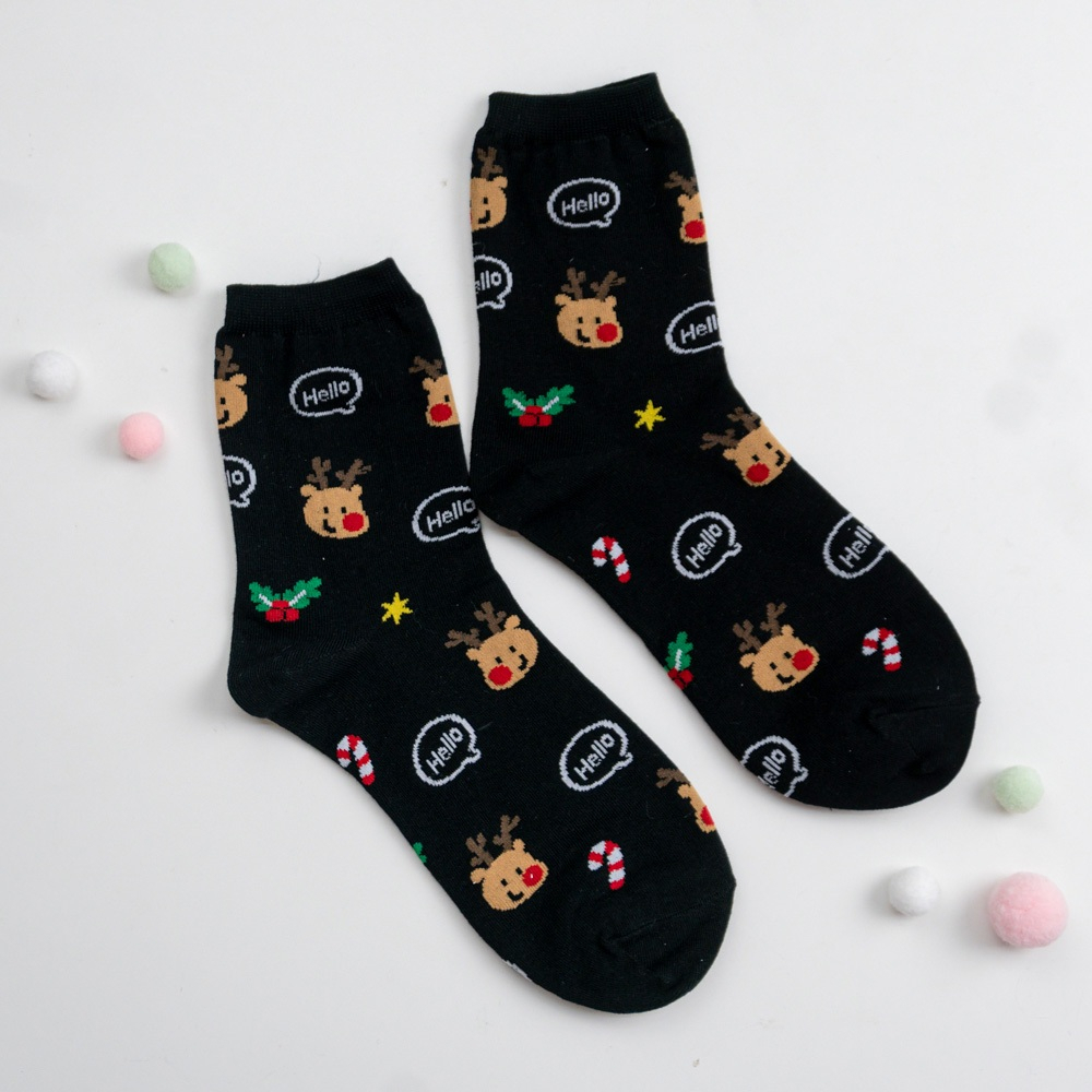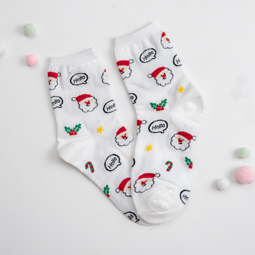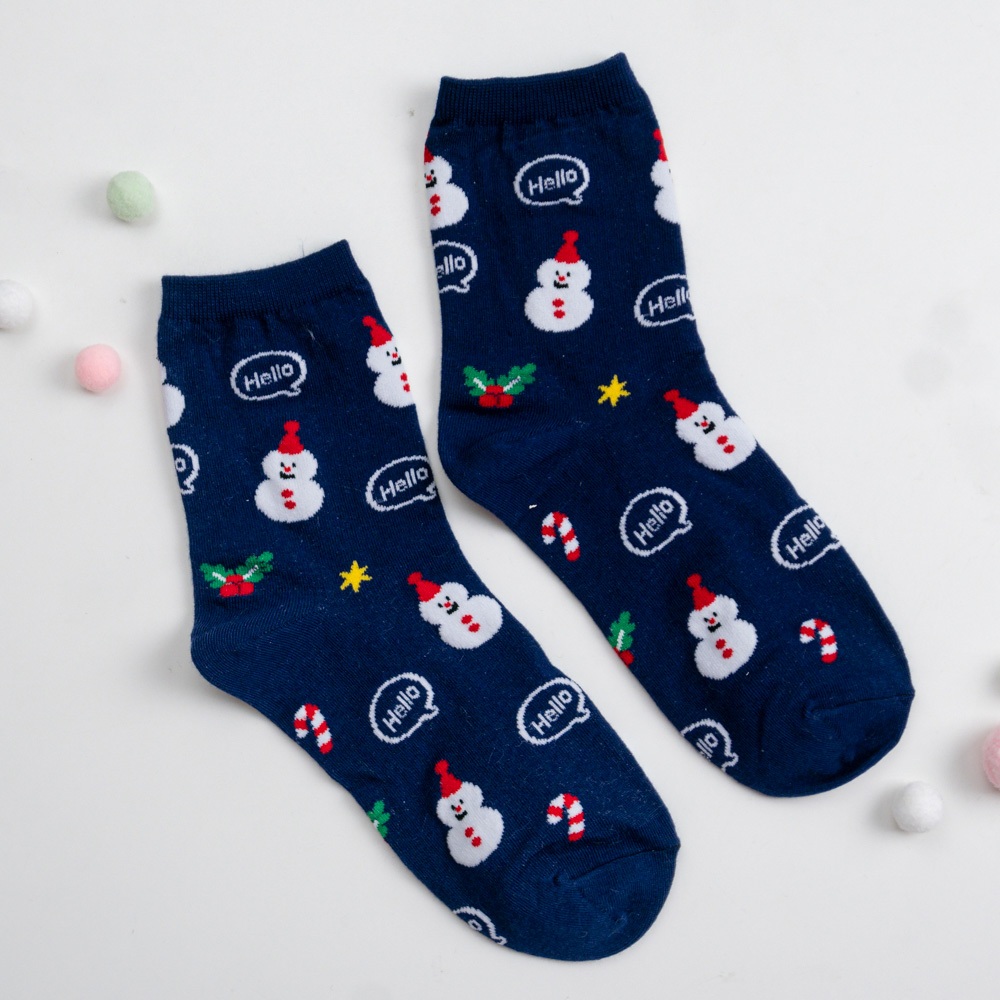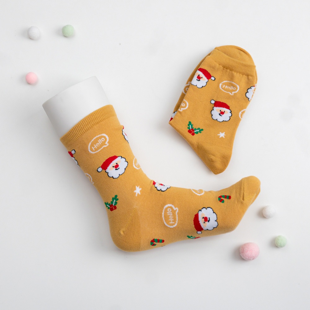AHUA阿華有事嗎 韓國襪子 滿版Hello聖誕人物小圖中筒襪K1916 韓妞必備 百搭純棉襪 聖誕襪 交換禮物咖底薑餅人|黑底麋鹿|白底聖誕老人|薑黃底聖誕老人|深藍底雪人SocksAHUA 韓國襪子品牌旗艦店