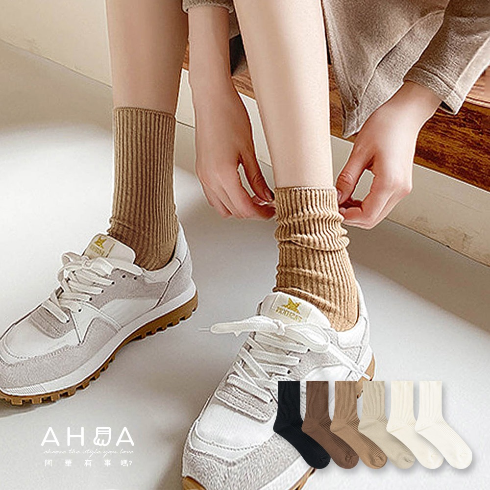 AHUA阿華有事嗎 超百搭!奶茶色調中筒襪 S0472 大地色襪子 羅紋素面 堆堆襪 襪子推薦 純棉襪 女襪白底|米黃底|卡其底|咖啡底|奶茶底|黑底SocksAHUA 韓國襪子品牌旗艦店