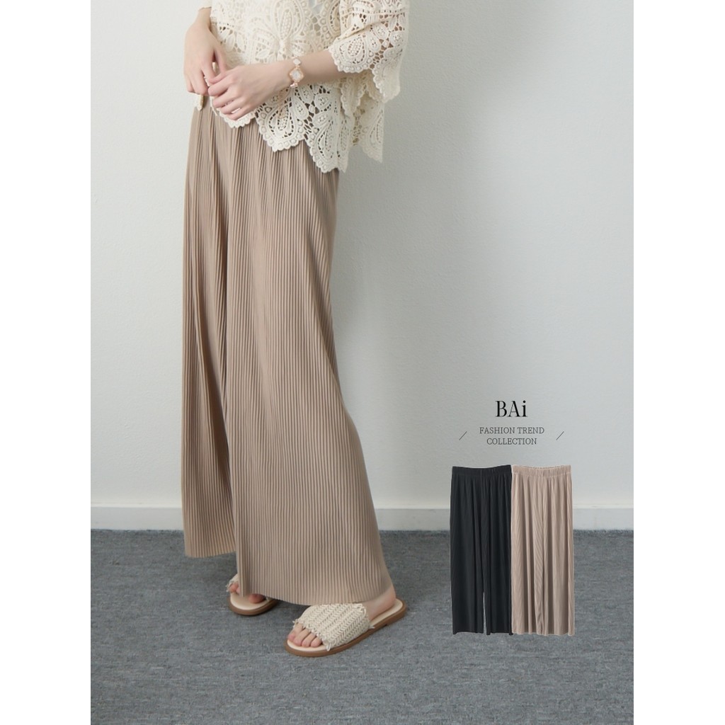 BAi白媽媽 直坑條寬褲/鬆緊腰頭垂感長褲-台灣現貨 隔日到貨【350150】黑(02)|奶茶(11)PantsBAi白媽媽 品牌旗艦店