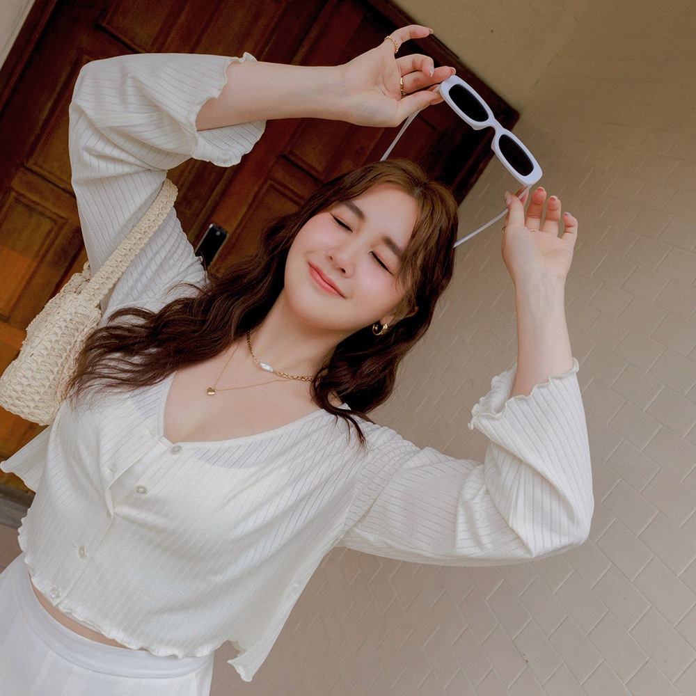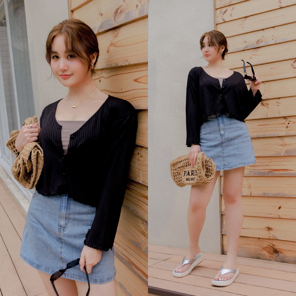 AIR SPACE PLUS 百搭木耳捲排釦上衣(黑/藍/杏) 女裝 現貨 大尺碼 中大尺碼黑,FF|藍,FF|杏,FFT-shirtsAIR SPACE