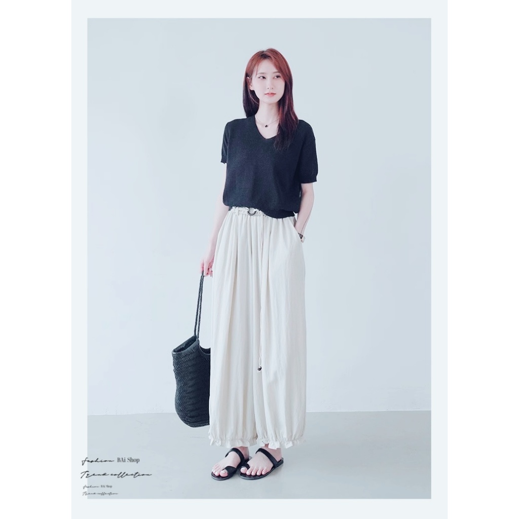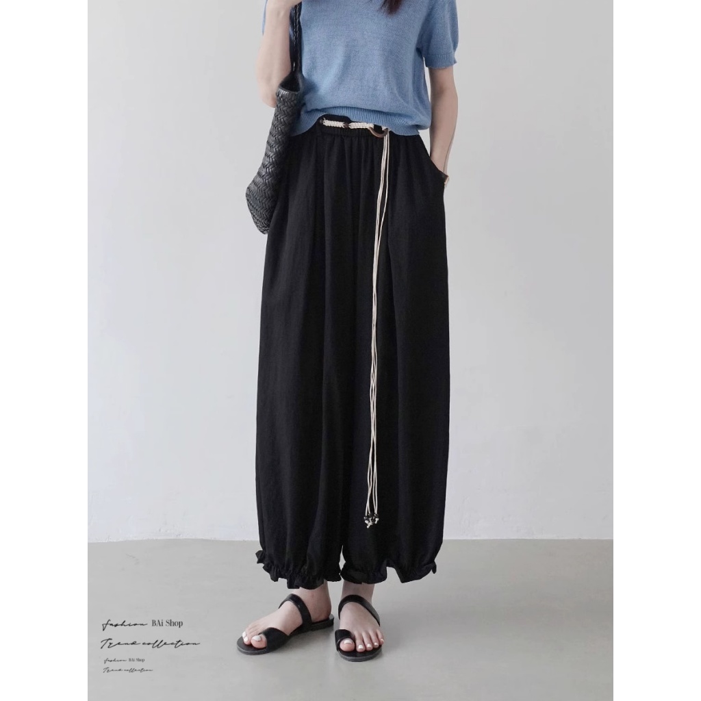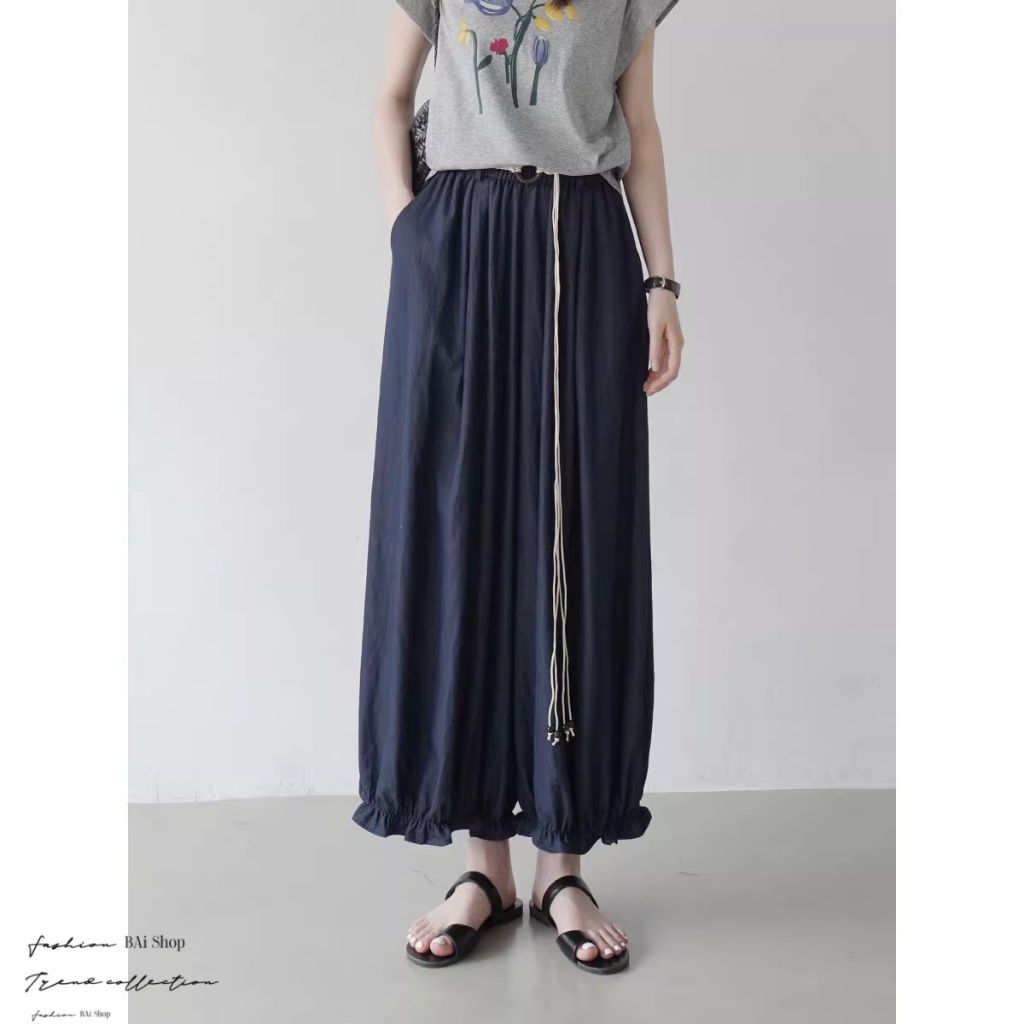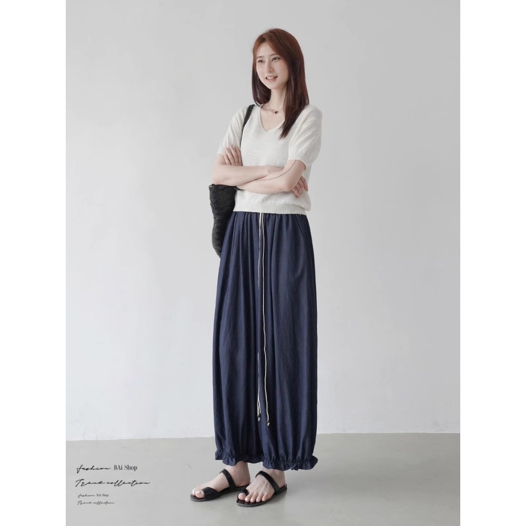 BAi白媽媽 燈籠九分褲/涼感大碼鬆緊闊腿褲裙-台灣現貨 隔日到貨【350384】黑(02)|藍(05)|杏白_微透(22)PantsBAi白媽媽 品牌旗艦店