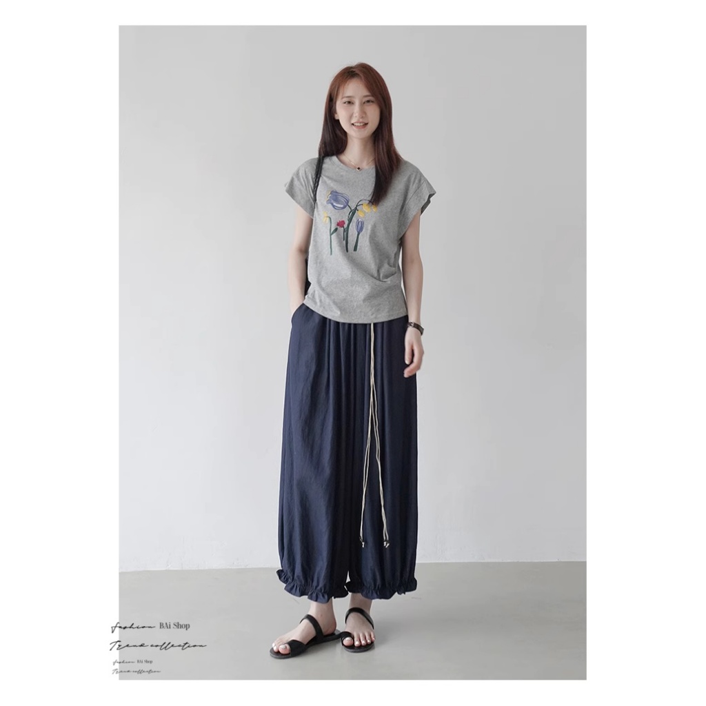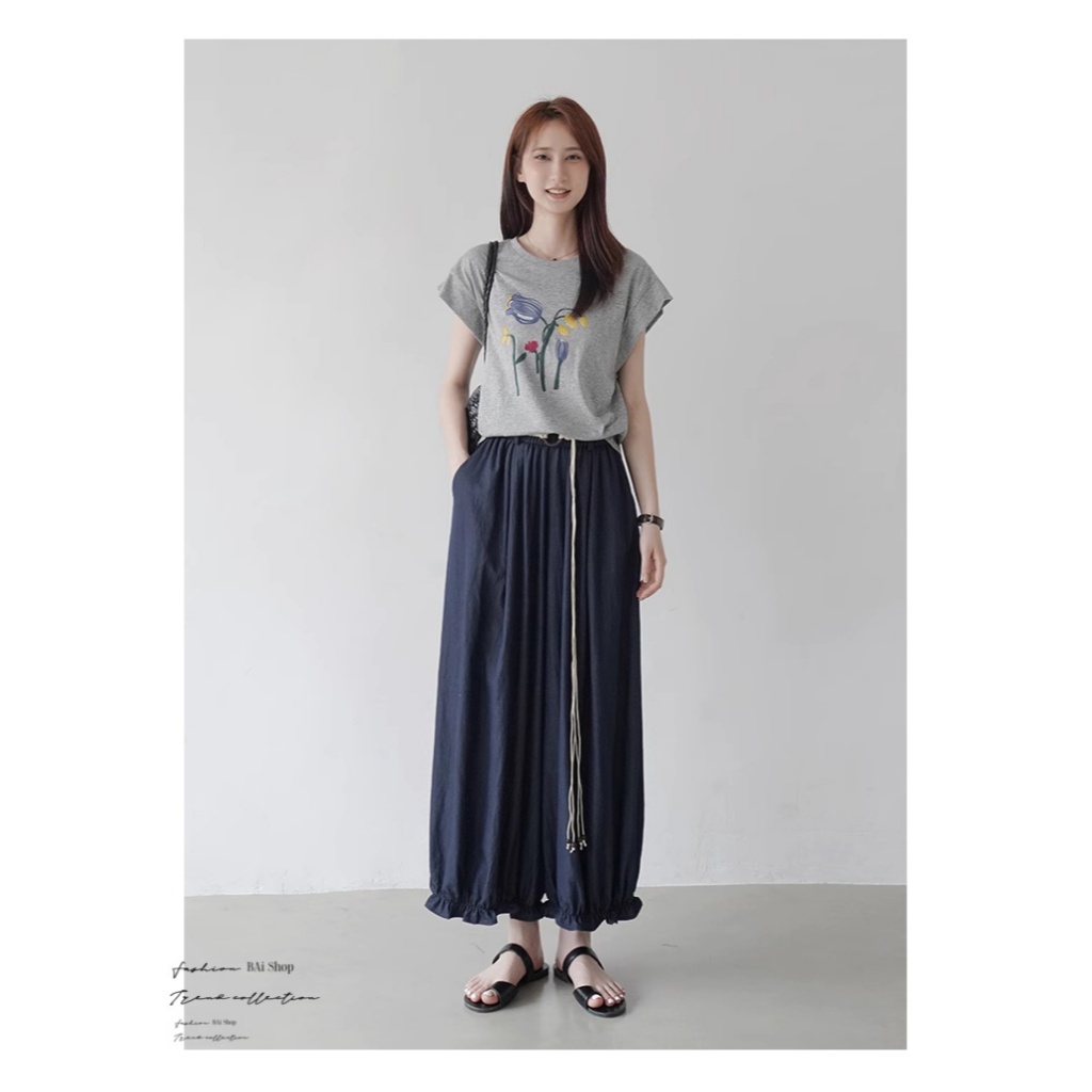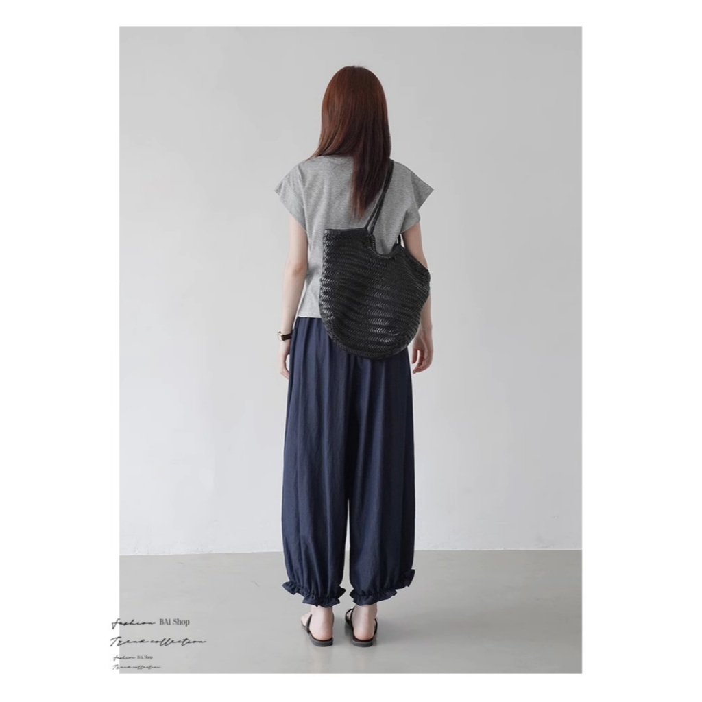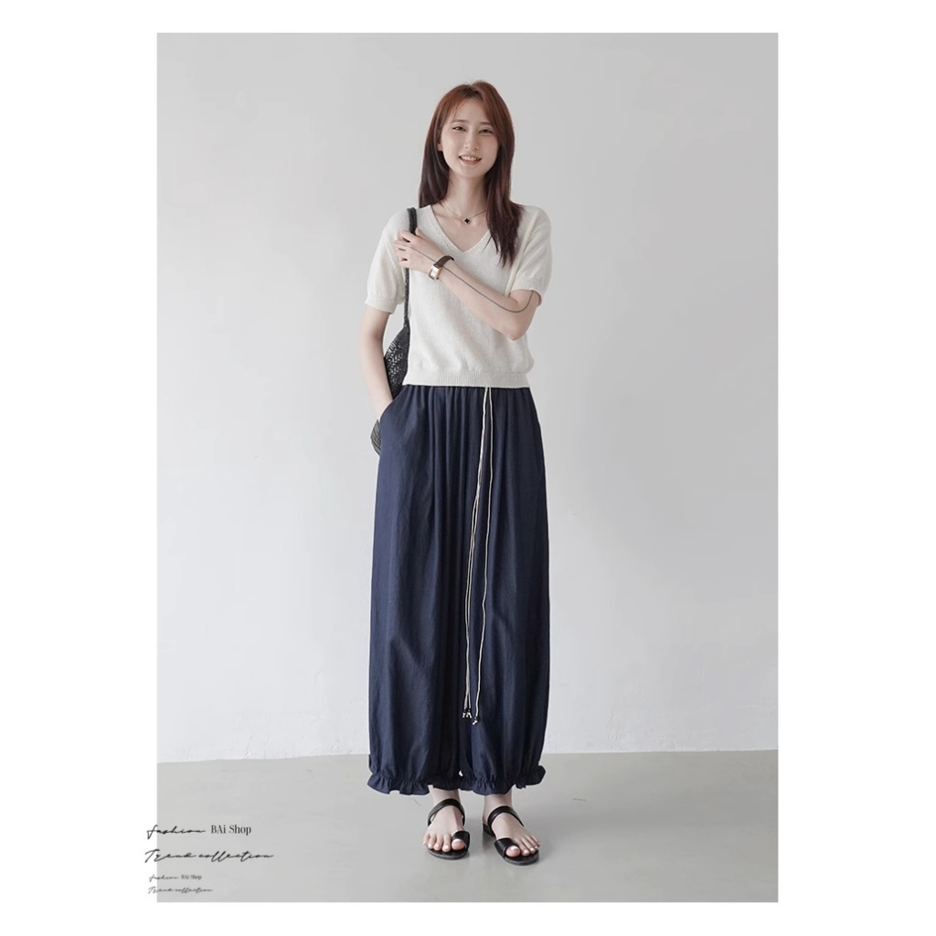 BAi白媽媽 燈籠九分褲/涼感大碼鬆緊闊腿褲裙-台灣現貨 隔日到貨【350384】黑(02)|藍(05)|杏白_微透(22)PantsBAi白媽媽 品牌旗艦店