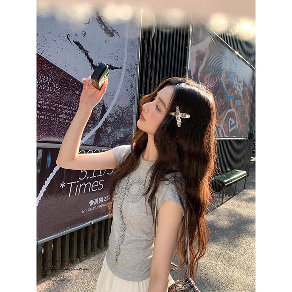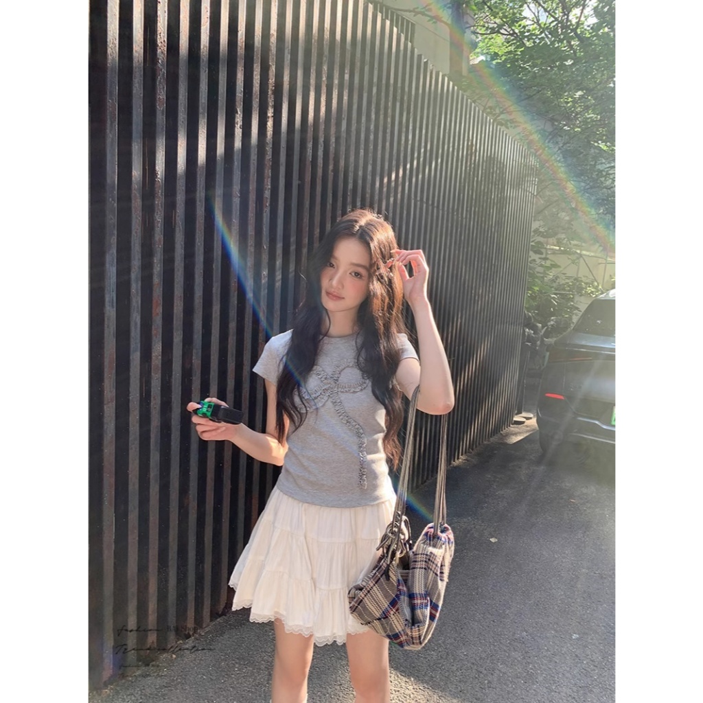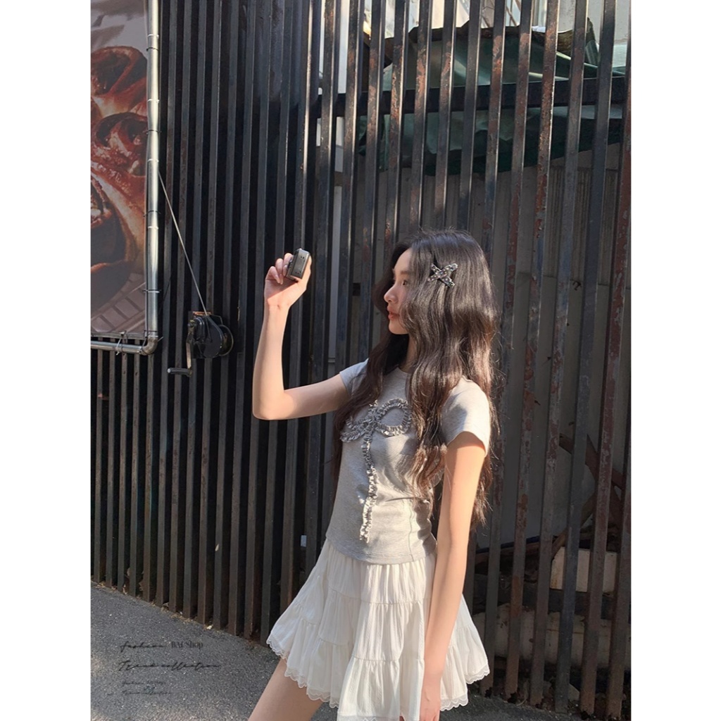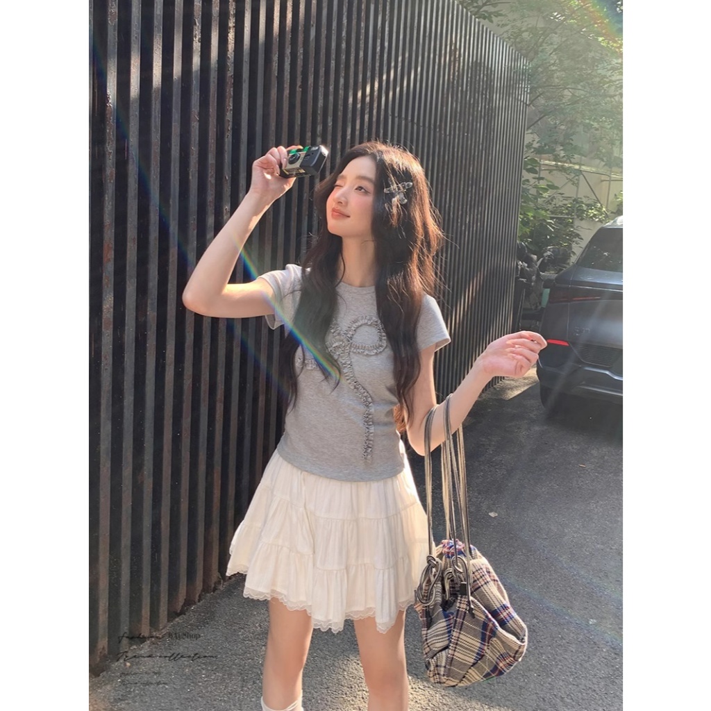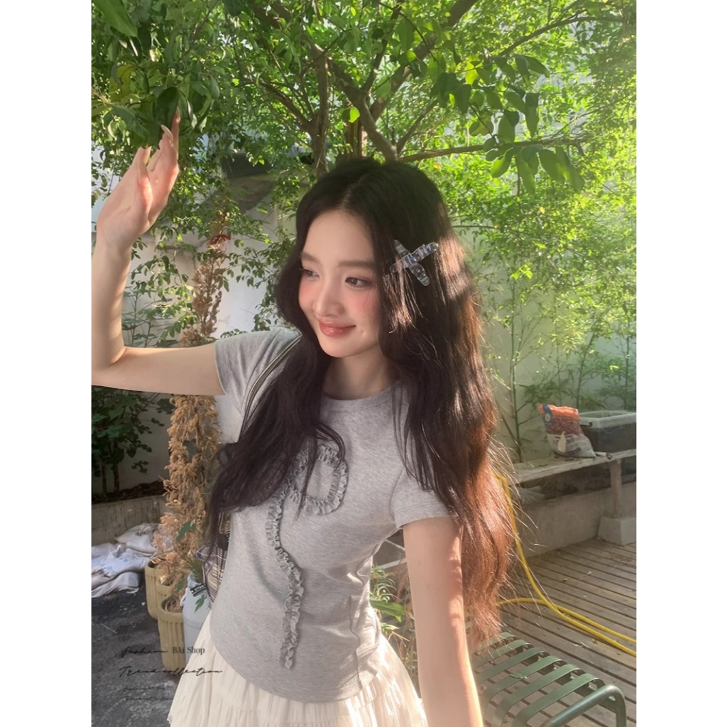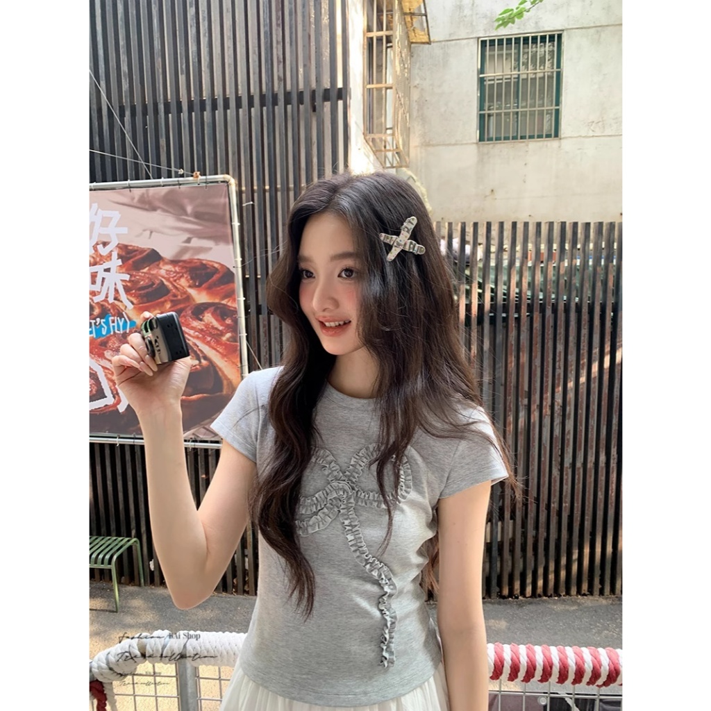 BAi白媽媽 木耳邊修身棉T/圓領蝴蝶結短袖上衣-台灣現貨 隔日到貨【350436】灰(10)T-shirtsBAi白媽媽 品牌旗艦店