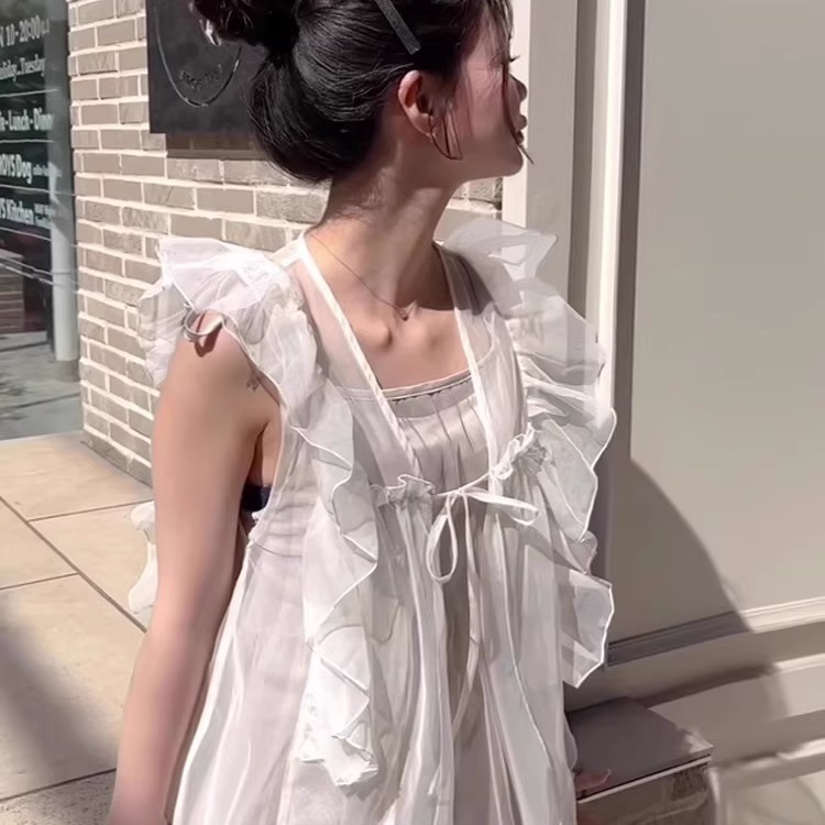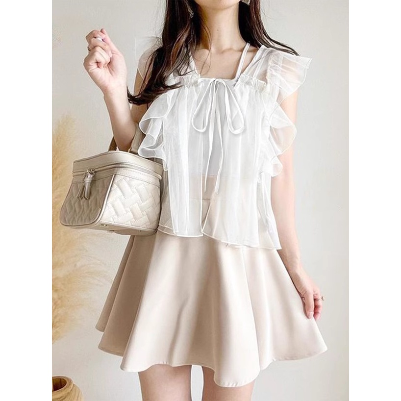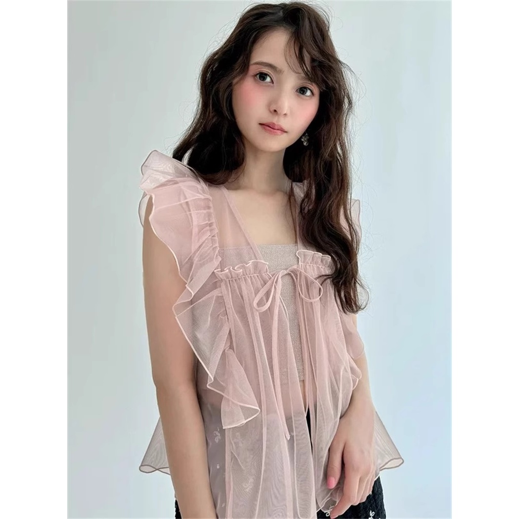 BAi白媽媽 飛袖蕾絲衫/日系疊穿綁帶荷葉邊透視背心-台灣現貨 隔日到貨【350390】白(01)|黑(02)|嫩粉(13)Tanks & CamisolesBAi白媽媽 品牌旗艦店