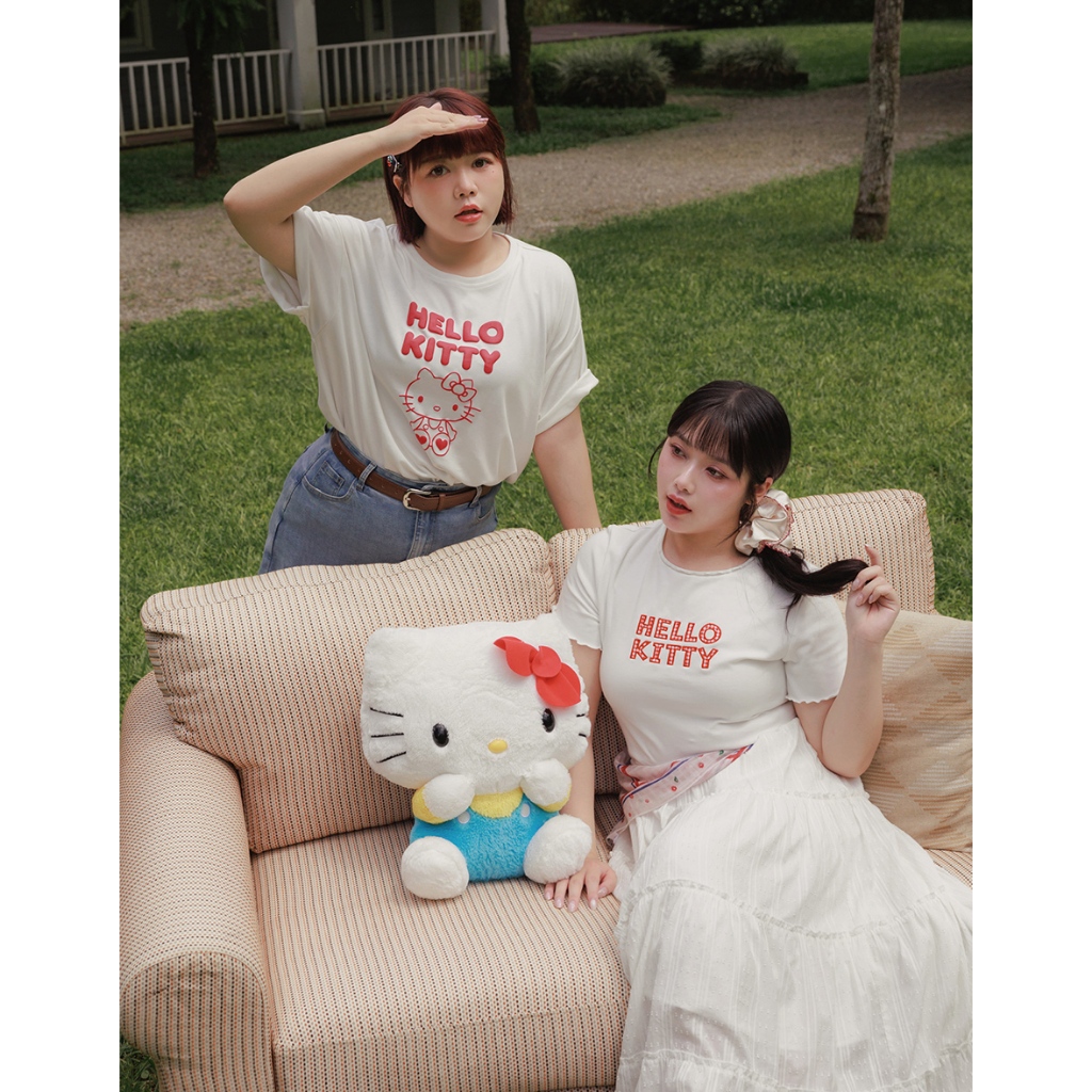 AIR SPACE PLUS 【三麗鷗聯名】立體膠印圖案寬版TEE(黑/白) 女裝 現貨 大尺碼 中大尺碼黑,FF|白,FFT-shirtsAIR SPACE