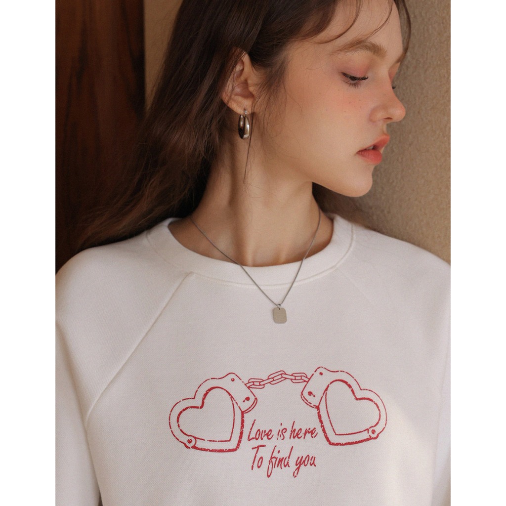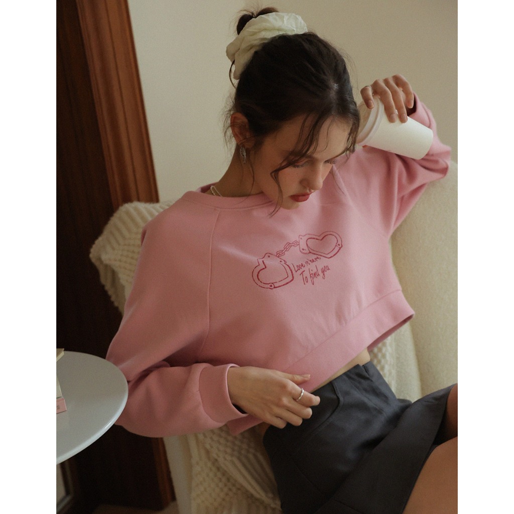AIR SPACE PLUS 愛情手銬短版大學TEE(白/粉紅) 女裝 大尺碼 中大尺碼白,XL|白,2XL|白,3XL|粉紅,XL|粉紅,2XL|粉紅,3XLSweatshirtsAIR SPACE