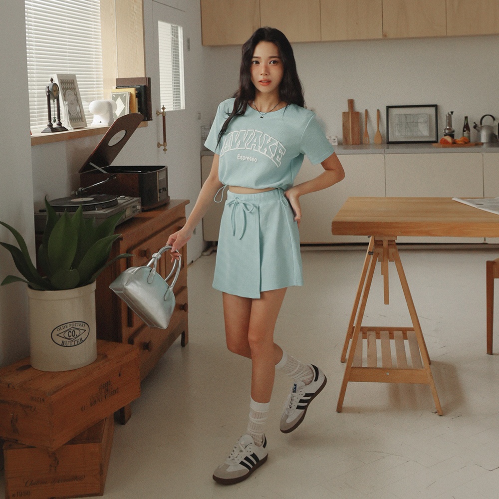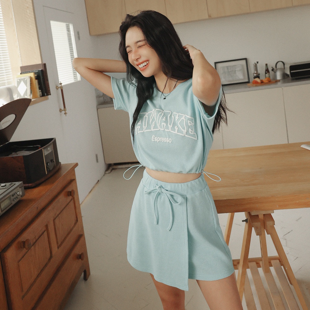 AIR SPACE LADY 鬆餅紋休閒抽繩褲裙(淺灰/淺藍) 女裝 現貨淺灰,S|淺灰,M|淺灰,L|淺藍,S|淺藍,M|淺藍,LSkortsAIR SPACE