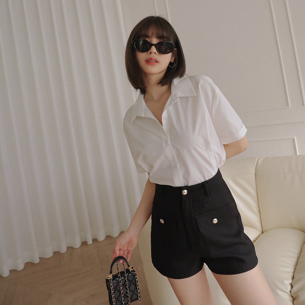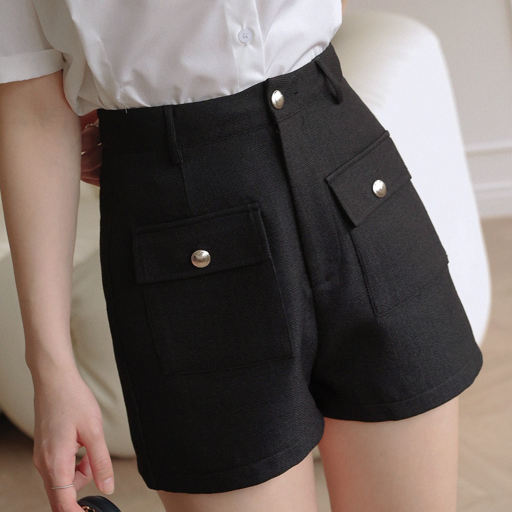 AIR SPACE LADY 雙口袋毛呢寬擺短褲(黑/白) 女裝 現貨黑,S|黑,M|黑,L|白,S|白,M|白,LShortsAIR SPACE