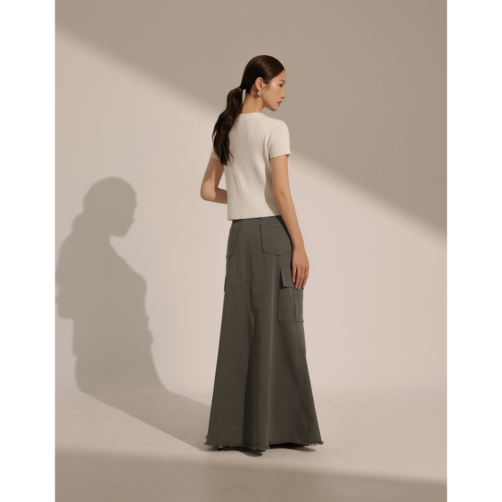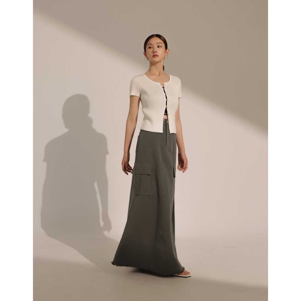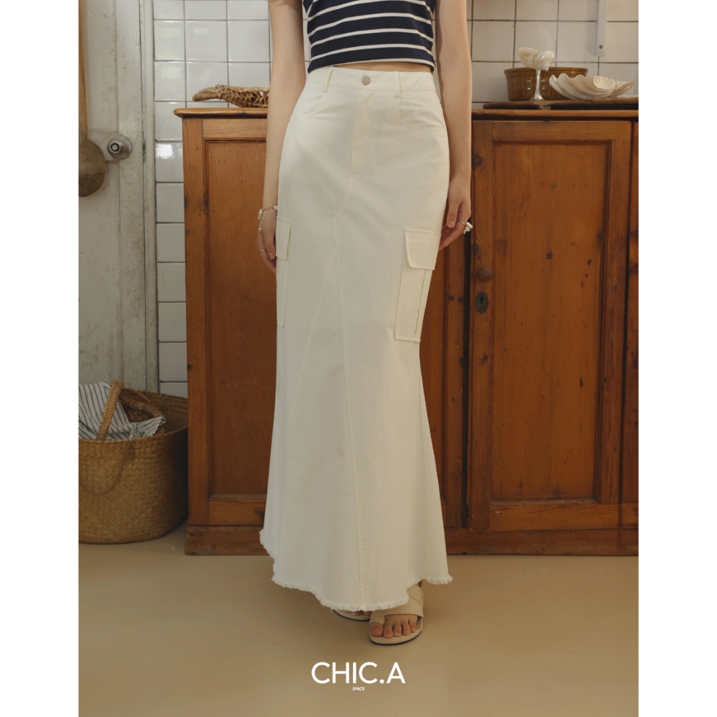 CHIC A SPACE 不收邊工裝風魚尾長裙(白/深灰) 女裝 現貨白,S|白,M|白,L|深灰,S|深灰,M|深灰,LAIR SPACE