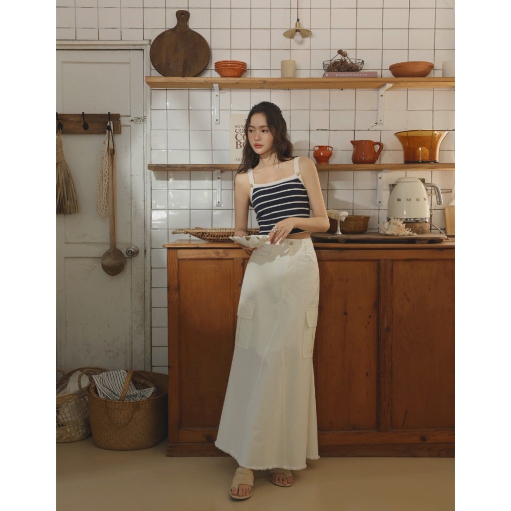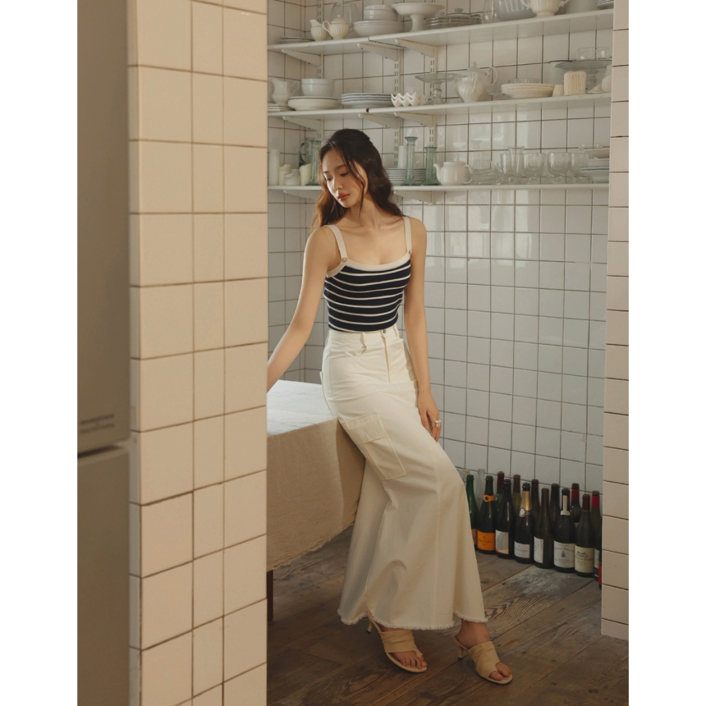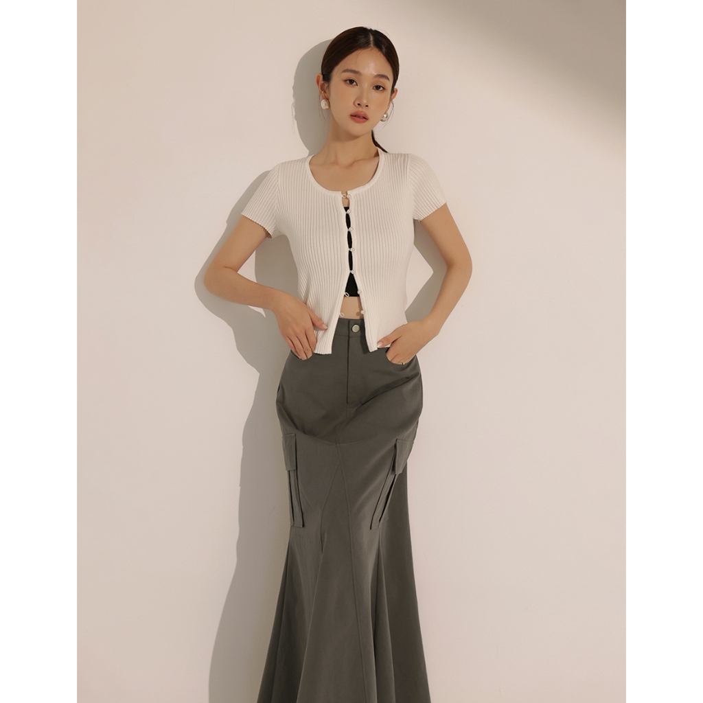 CHIC A SPACE 不收邊工裝風魚尾長裙(白/深灰) 女裝 現貨白,S|白,M|白,L|深灰,S|深灰,M|深灰,LAIR SPACE