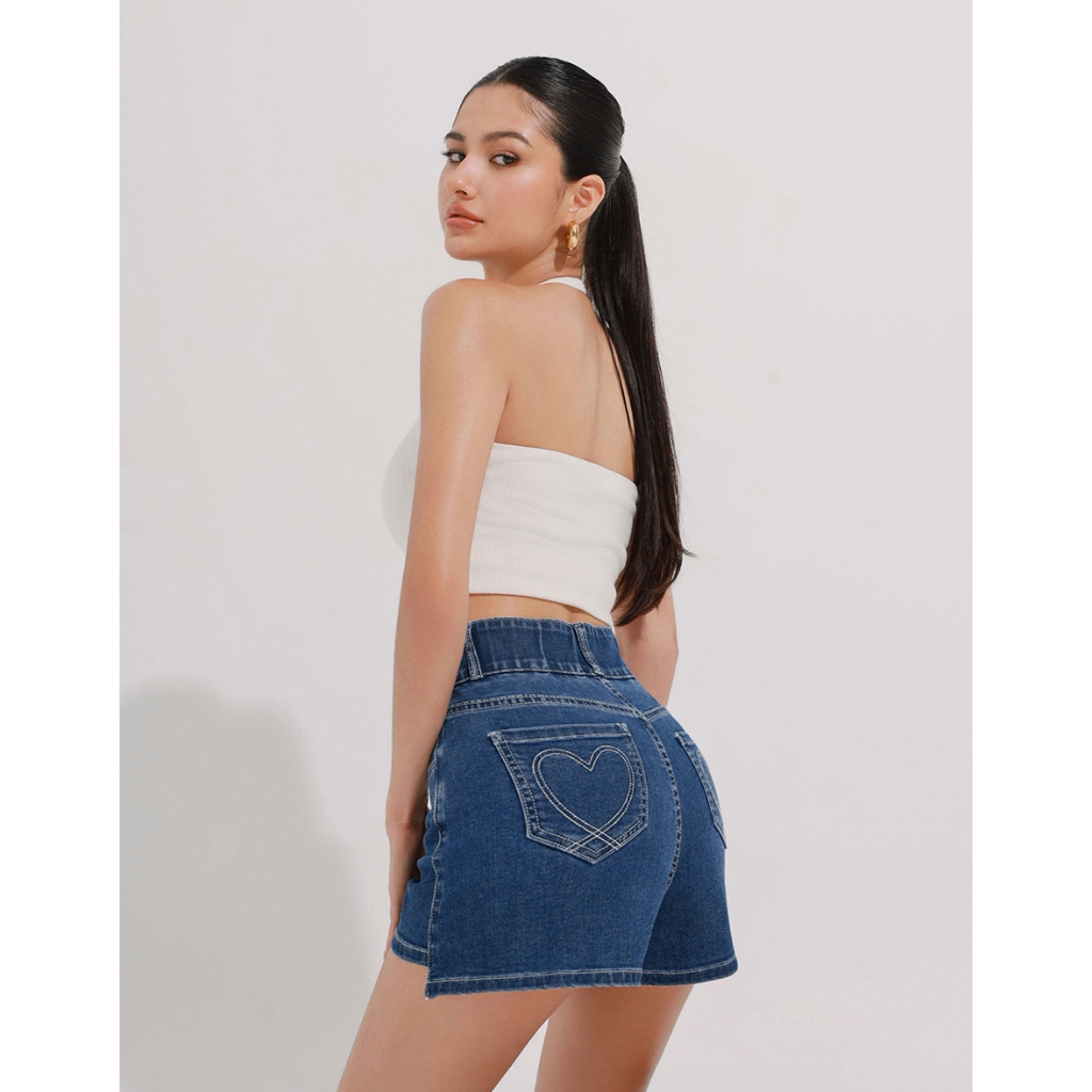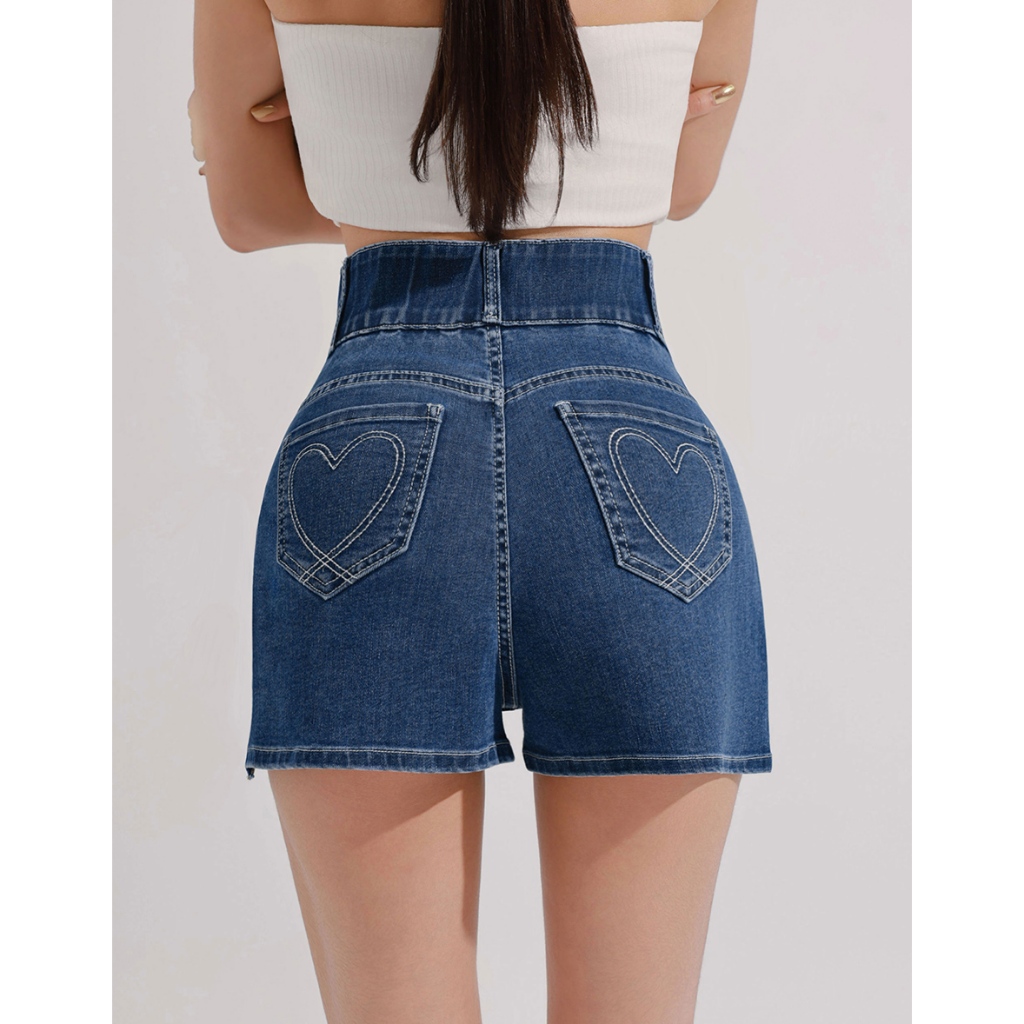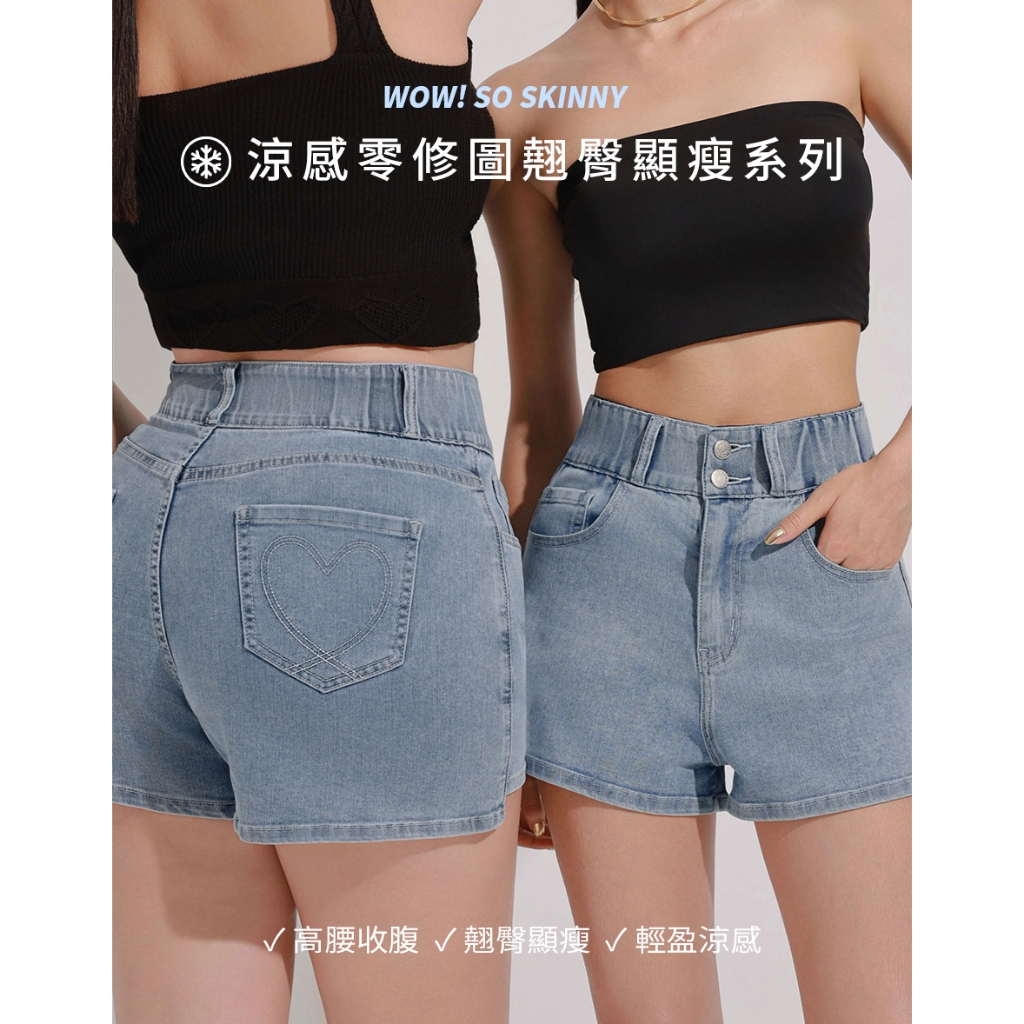 AIR SPACE 涼感零修圖愛心顯瘦牛仔短褲(深藍/淺藍) 女裝 現貨深藍,S|深藍,M|深藍,L|淺藍,S|淺藍,M|淺藍,LAIR SPACE