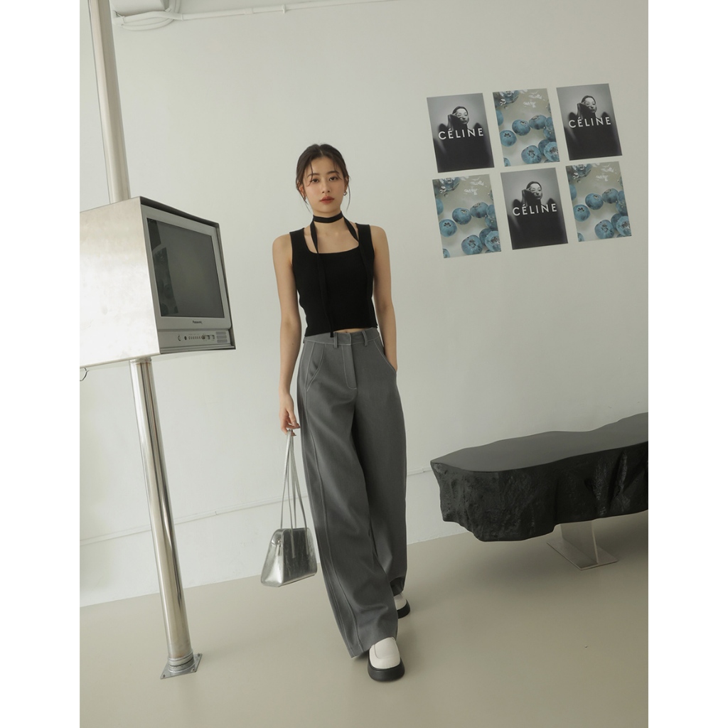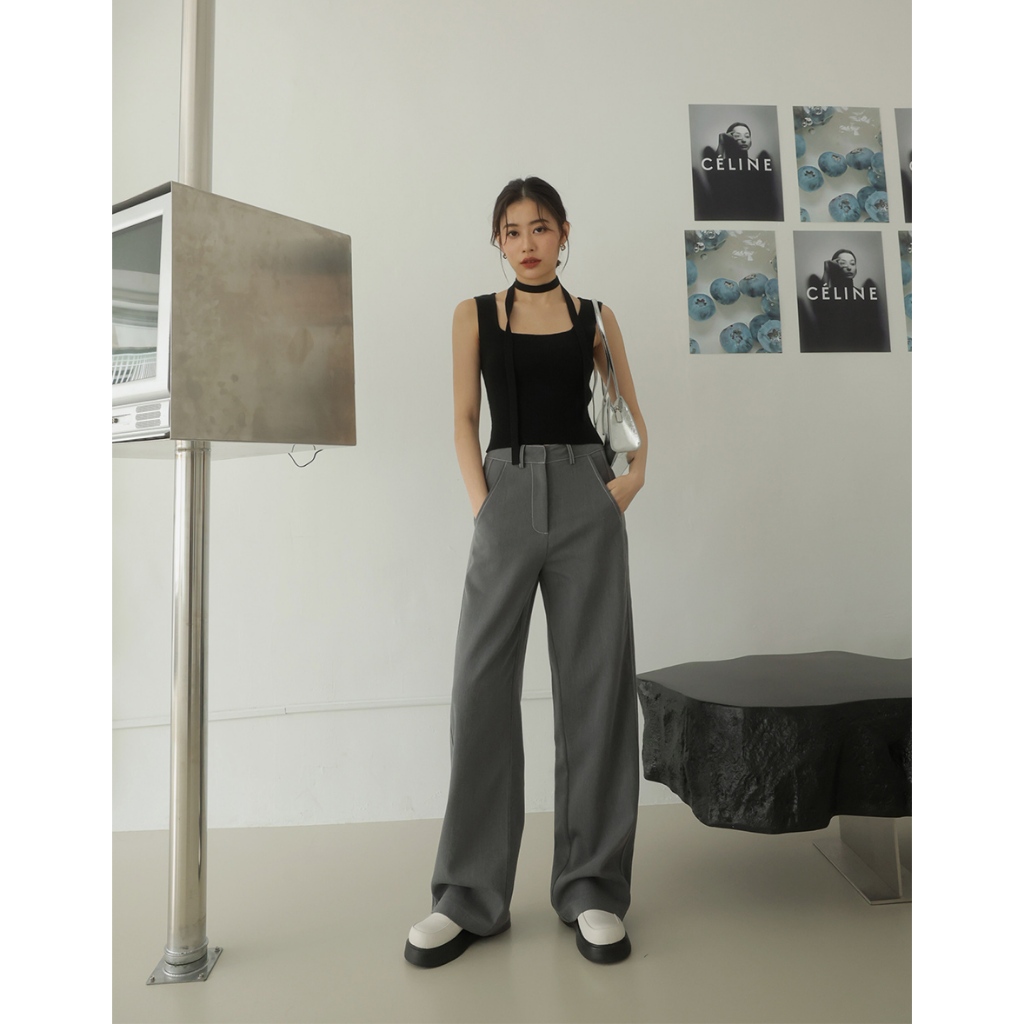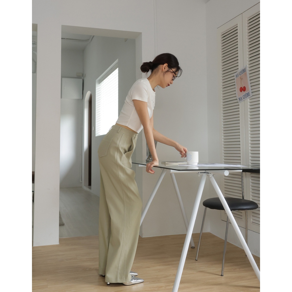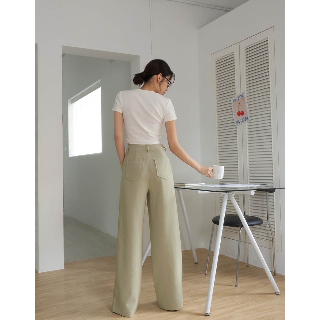 AIR SPACE LADY 率性暗門襟車線寬褲(綠/灰) 女裝 現貨綠,S|綠,M|綠,L|灰,S|灰,M|灰,LPantsAIR SPACE