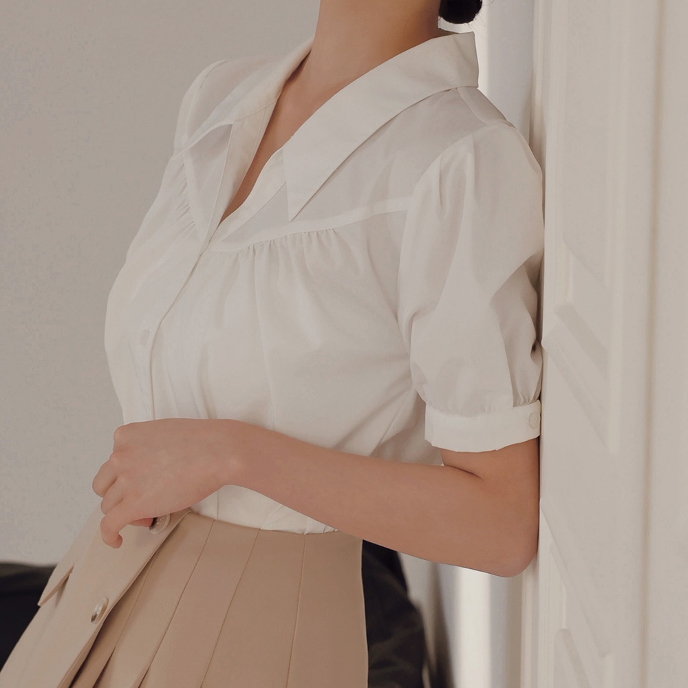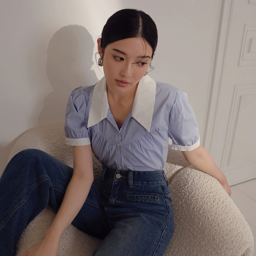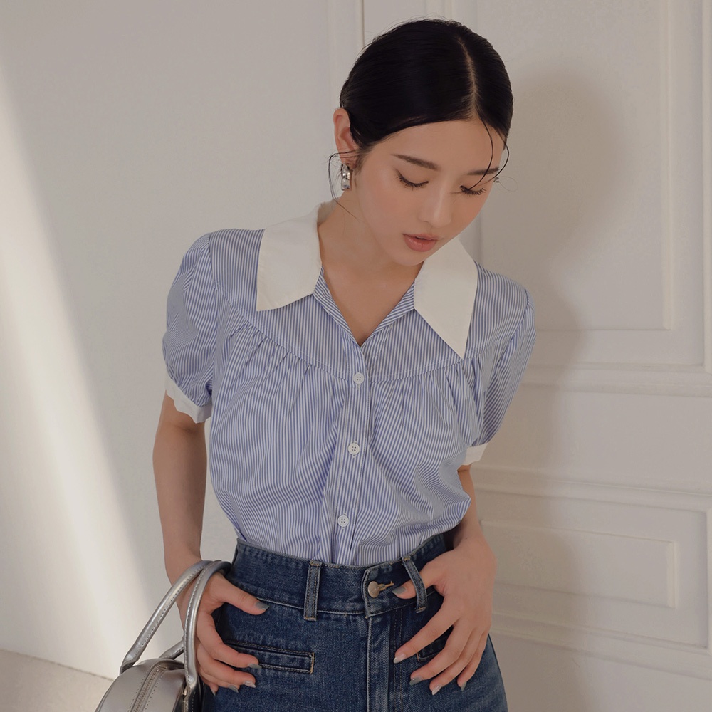CHIC A SPACE 知性翻領短袖襯衫(白/條紋) 女裝 現貨白,S|白,M|白,L|條紋,S|條紋,M|條紋,LShirts & BlousesAIR SPACE