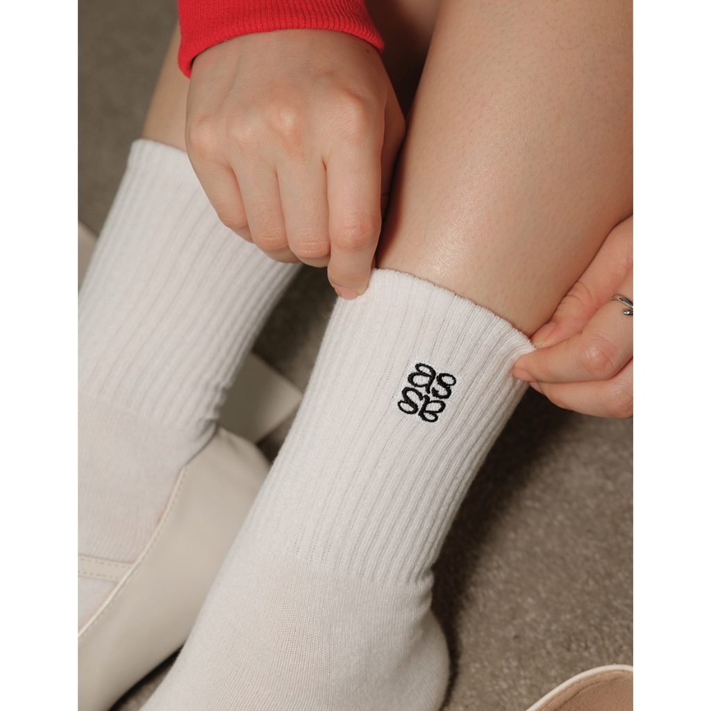 AIR SPACE LADY 品牌LOGO刺繡中筒襪 (黑/白/灰)女裝 現貨黑,F|白,F|灰,FSocksAIR SPACE