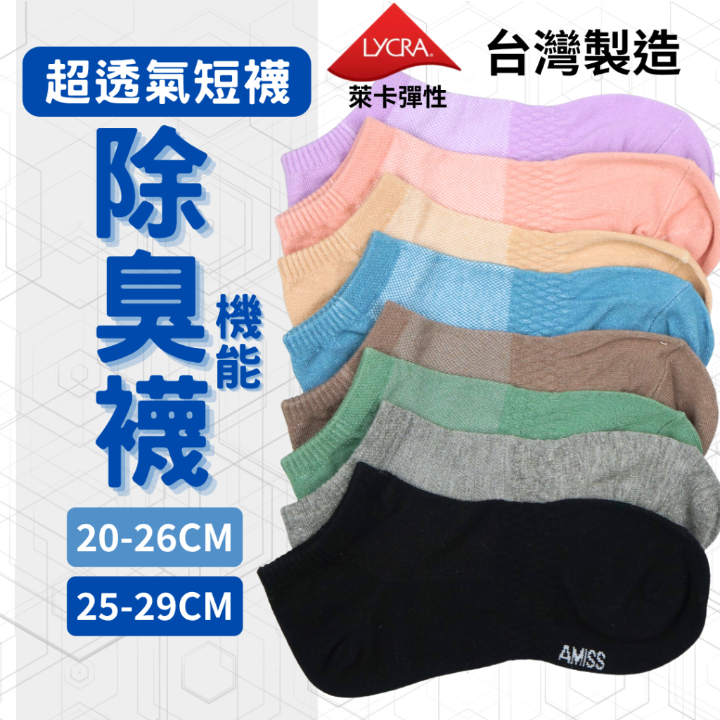 AMISS 除臭襪 超透氣短襪 台灣製 萊卡機能襪 加大短襪 女襪百搭黑/20-26cm(M)|麻花灰/20-26cm(M)|奶油綠/20-26cm(M)|莫蘭迪藍/20-26cm(M)|奶茶棕/20-26cm(M)|薰衣草紫/20-26cm(M)|卡其灰棕/20-26cm(M)|玫粉色/20-26cm(M)|百搭黑/25-29cm(XL)|麻花灰/25-29cm(XL)|奶油綠/25-29cm(XL)|莫蘭迪藍/25-29cm(XL)|卡其灰棕/25-29cm(XL)SocksAmiss全家人的襪子