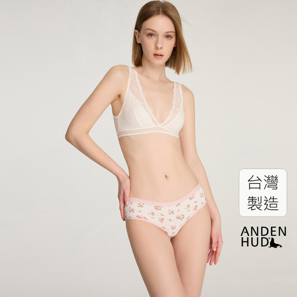 【Anden Hud】Balletcore .緊帶中腰三角內褲(米白-玫瑰碎花) 純棉台灣製M|L|XLPantiesAnden Hud 台灣製內著 官方旗艦店