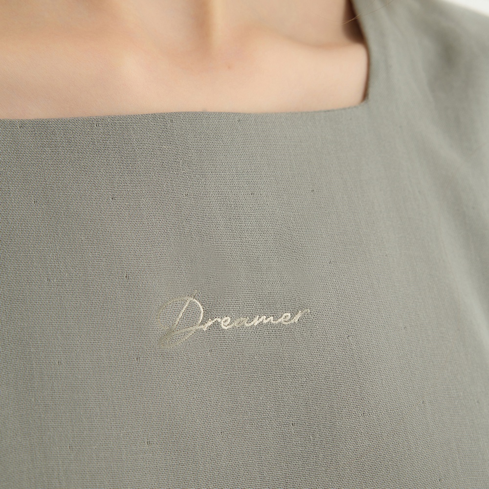 【Anden Hud】連身_夏日暖陽.純棉雙層紗方領公主短袖睡衣(月霧灰-刺繡 Dreamer) 純棉台灣製S|M|L|XLNight DressesAnden Hud 台灣製內著 官方旗艦店