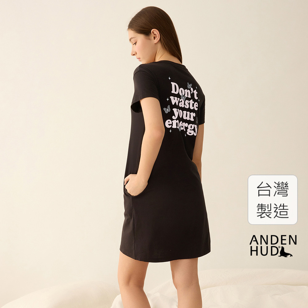 【Anden Hud】連身_夏日暖陽.莫代爾棉圓領口袋短袖睡衣(黑色-刺繡幸福秘訣) 純棉台灣製S|M|L|XLPajamasAnden Hud 台灣製內著 官方旗艦店