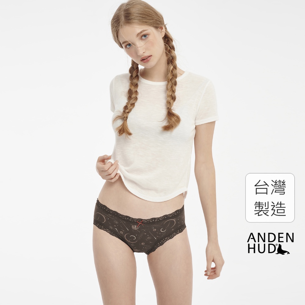【Anden Hud】純棉抗菌系列.蕾絲織帶中腰三角內褲(黃昏棕-日月星辰) 台灣製M|L|XLPantiesAnden Hud 台灣製內著 官方旗艦店