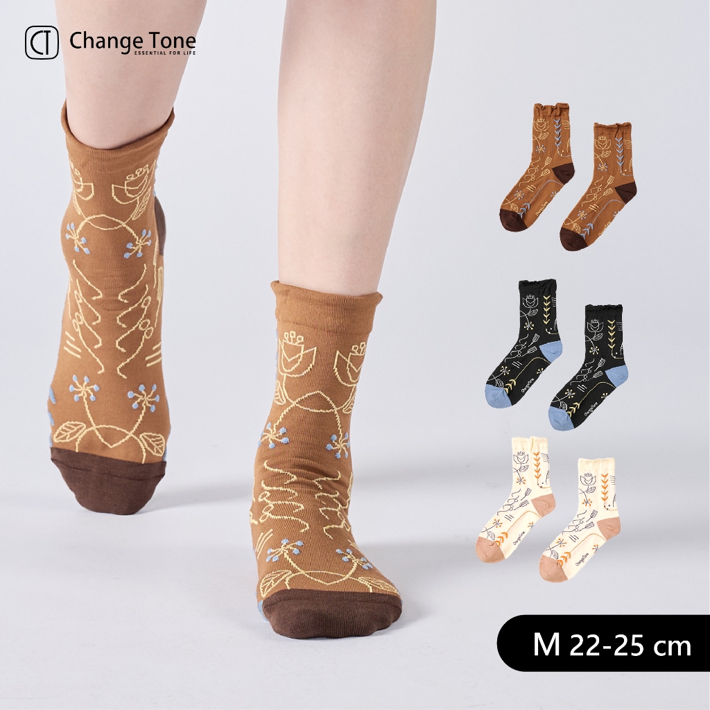 【CT®】花的孩子|設計中筒襪 女襪子 男襪子 男女襪子 台灣製造米白,M (22-25)|咖,M (22-25)|黑,M (22-25)Socks【ChangeTone 襪子專賣店】台灣製 除臭襪、運動襪、男女襪、童襪、隱形襪